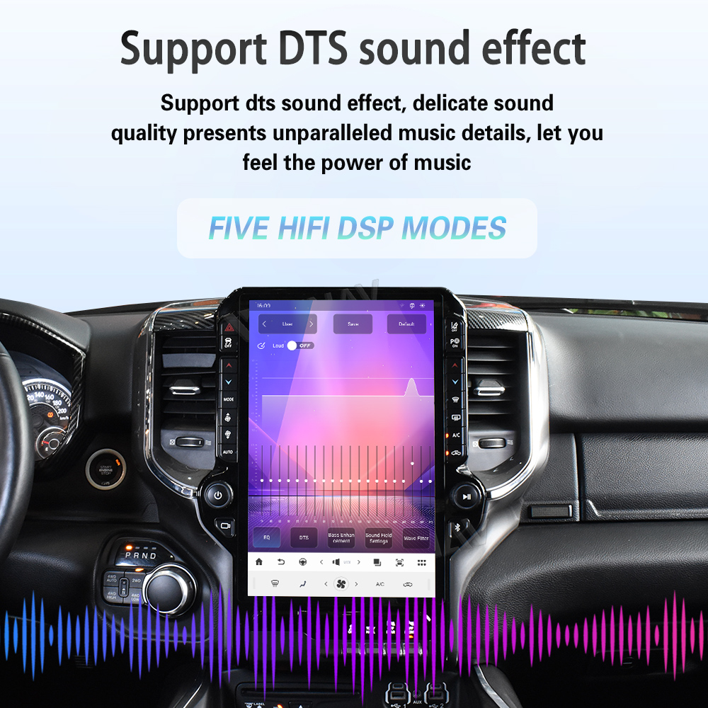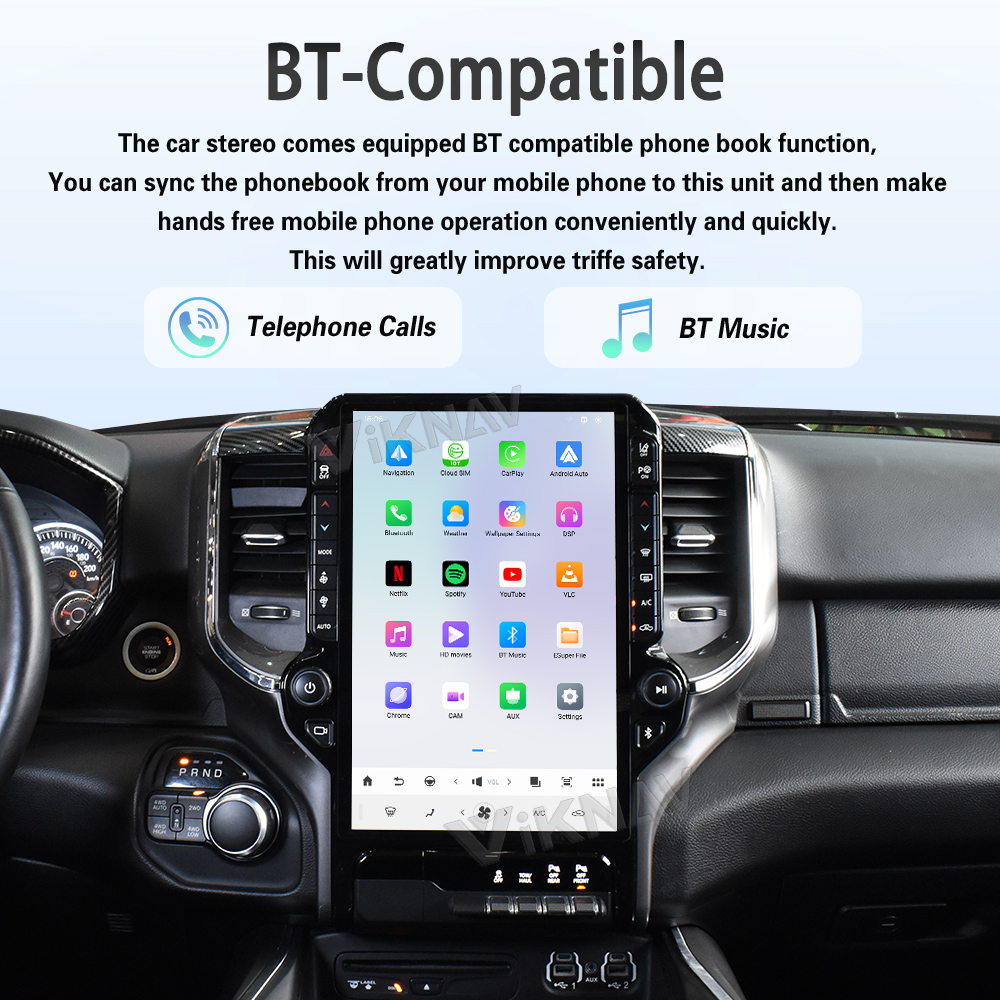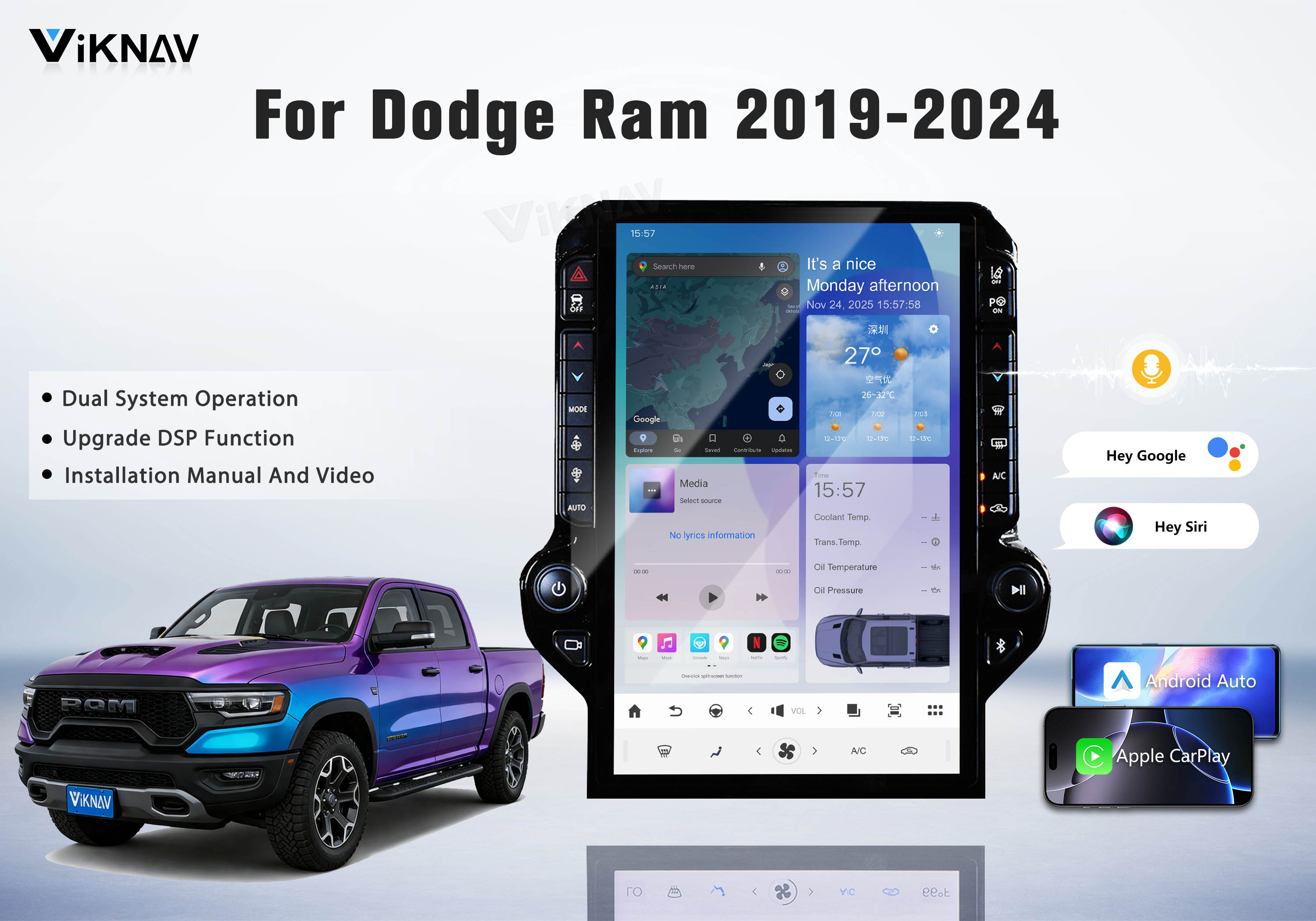 OEM-style vertical screen design, seamlessly integrates with Ram dashboard.