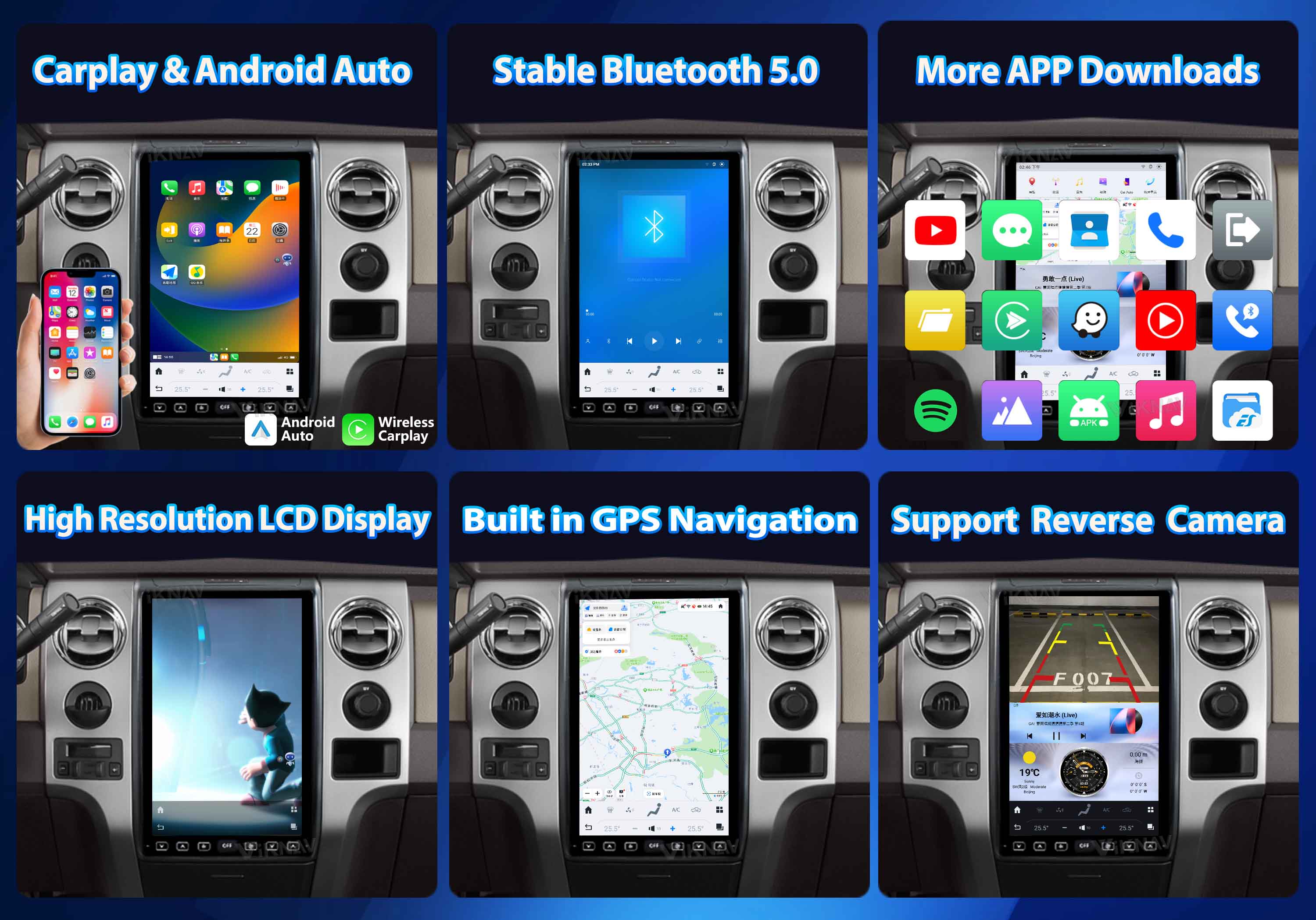 can switch to AHD signal output to achieve 1080P display.when you shift into reverse, displaying a live view on the in-dash screen.