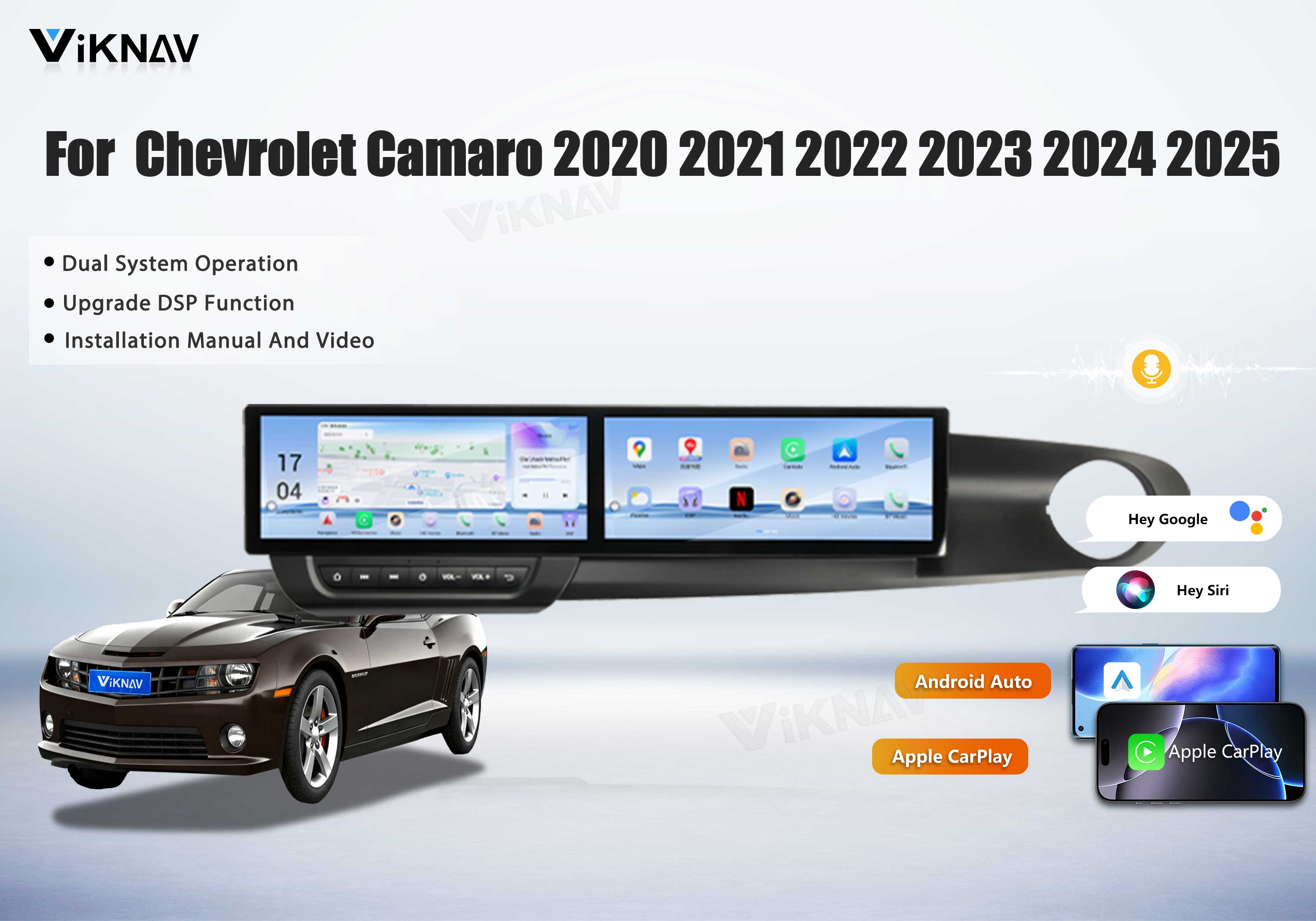 Viknav 26" Dual Touch Screen Car Radio For Chevrolet Camaro 2020 2021 2022 2023 2024 2025 Multimedia Player Android Auto GPS Navigation Wireless Carplay (OEM 7&8 Inch)