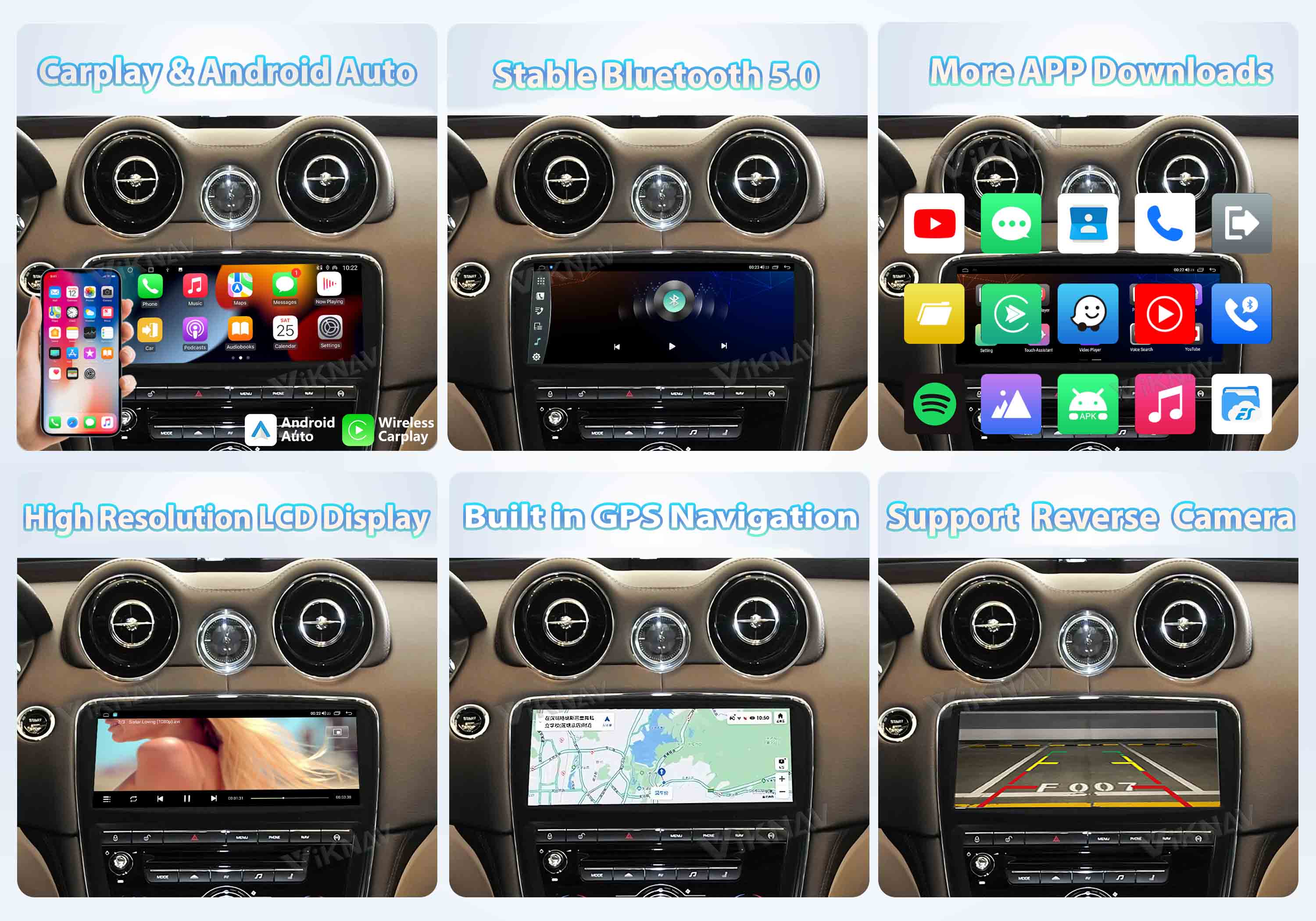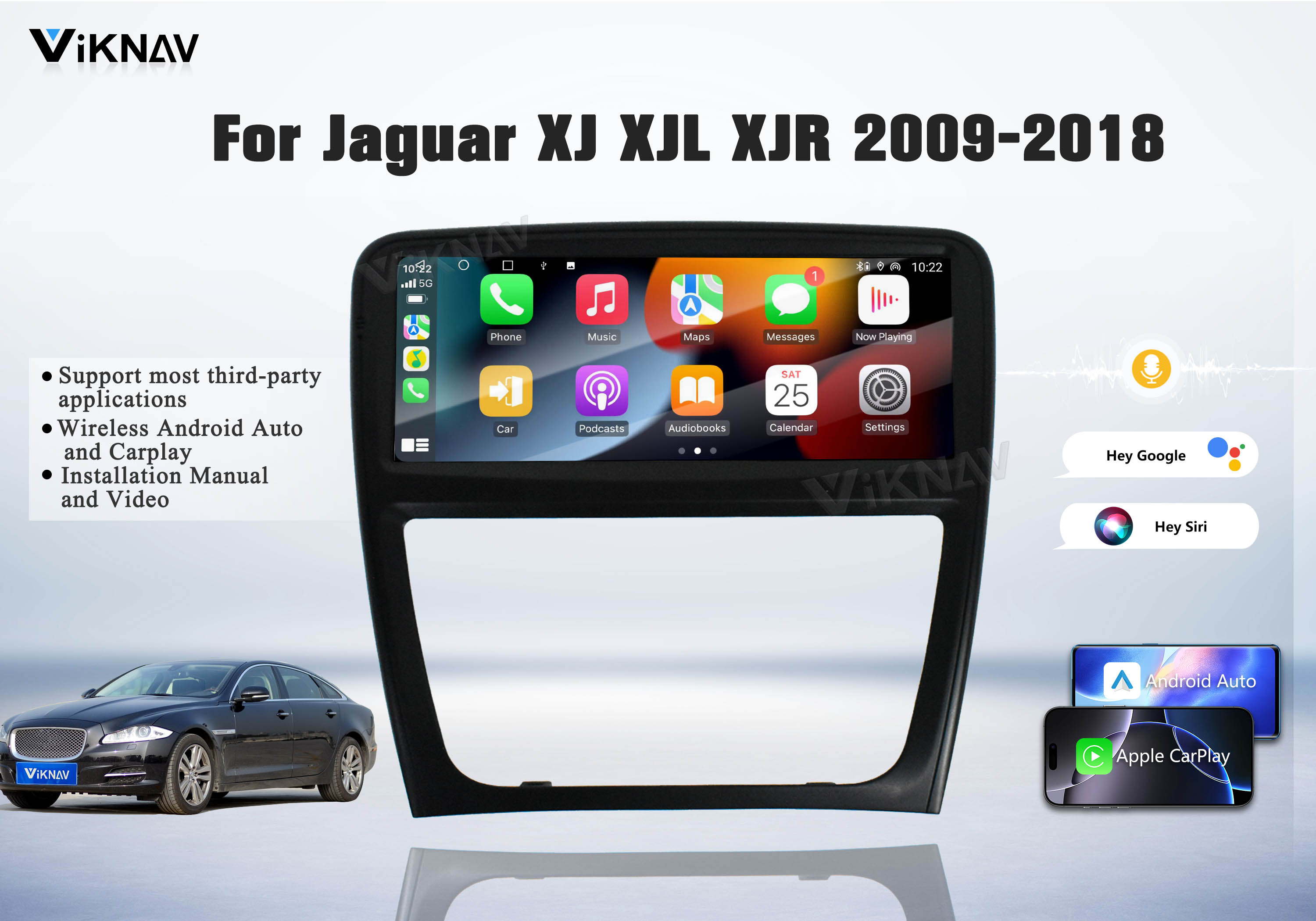Viknav Android Head Unit & Digital AC Panel Combo for Jaguar XJ XJL XJR 2009-2018 Wireless CarPlay & Retains All Original Functions