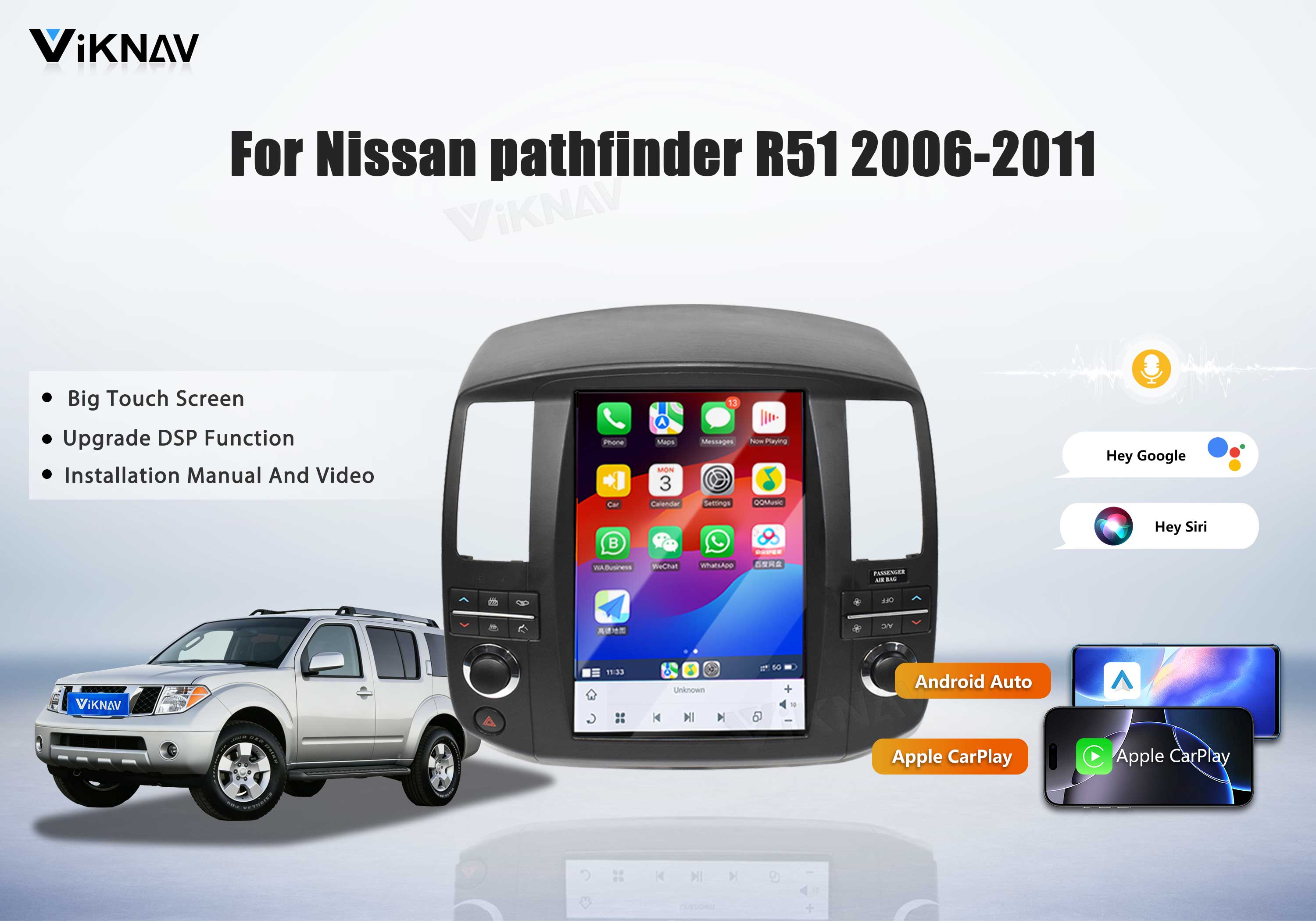 Viknav Screen Car Radio FOR Nissan pathfinder R51 2006-2011 Android Head Unit Wirless Carplay GPS Navigation Player Autoradio ( 128GB)