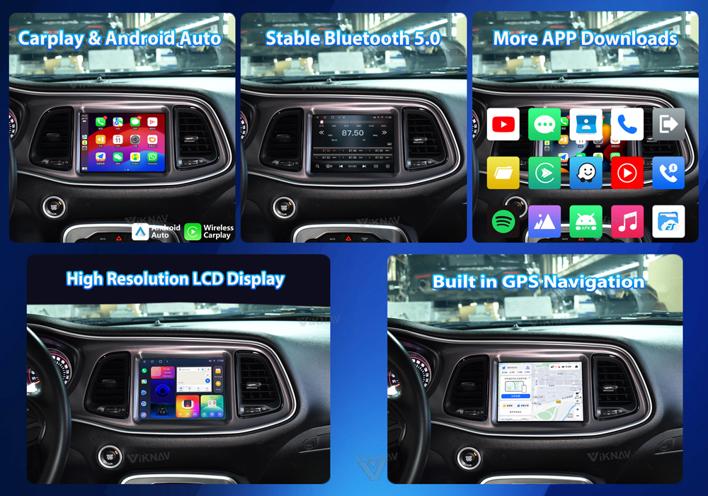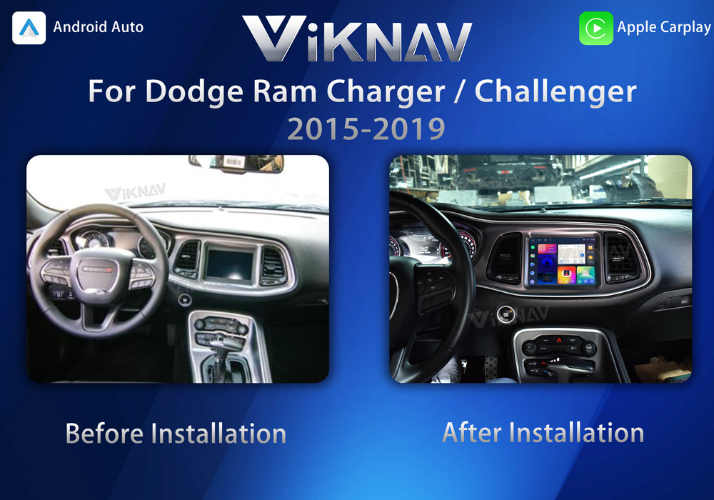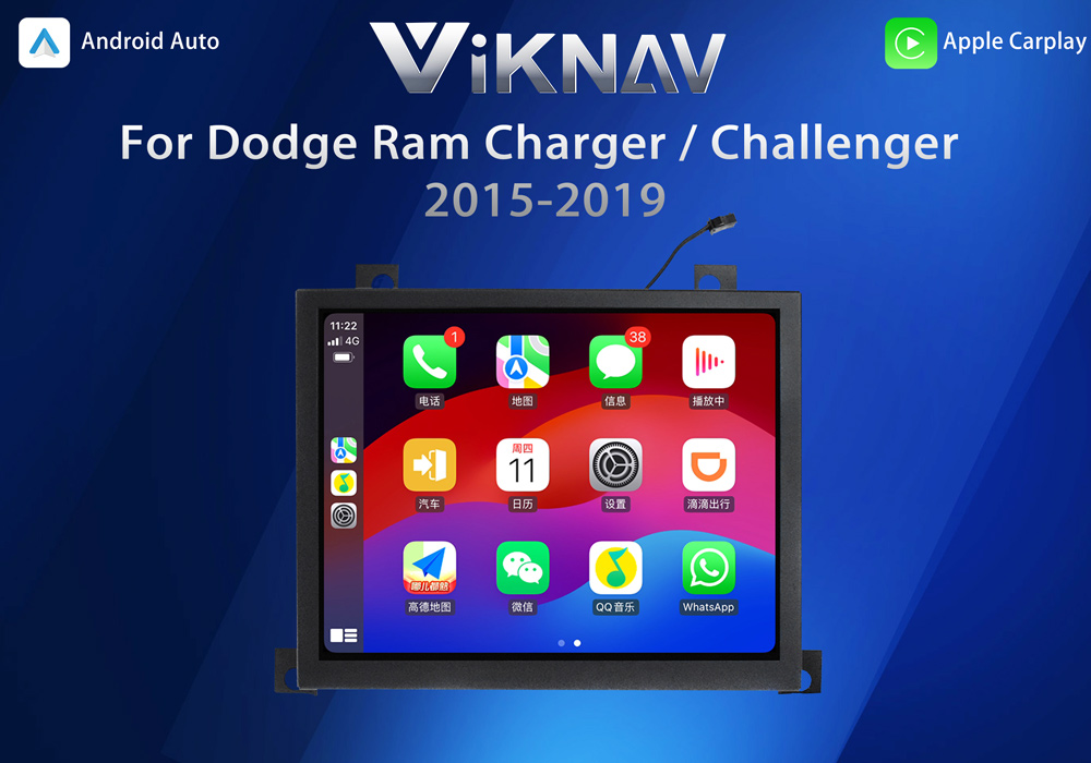 Viknav Car Radio Stereo For Dodge Ram Charger/Challenger 2015-2019 Multimedia Video Player GPS Navigation BT Carplay Head Unit(128GB)
