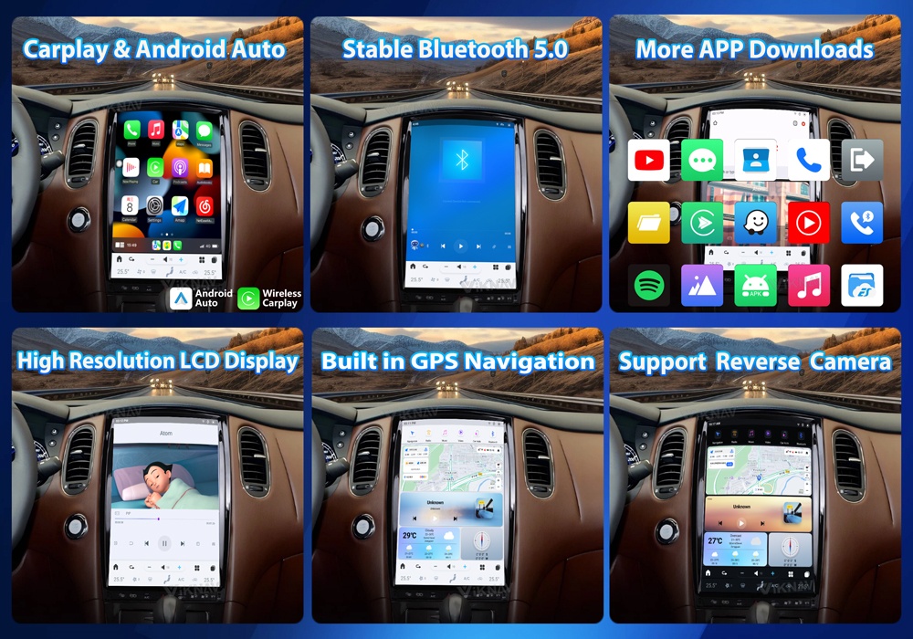Viknav Android Car GPS Navigation For Infiniti QX50 EX25 2010-2017 Car Radio Latest System Stereo Recorder Wireless Carplay Head