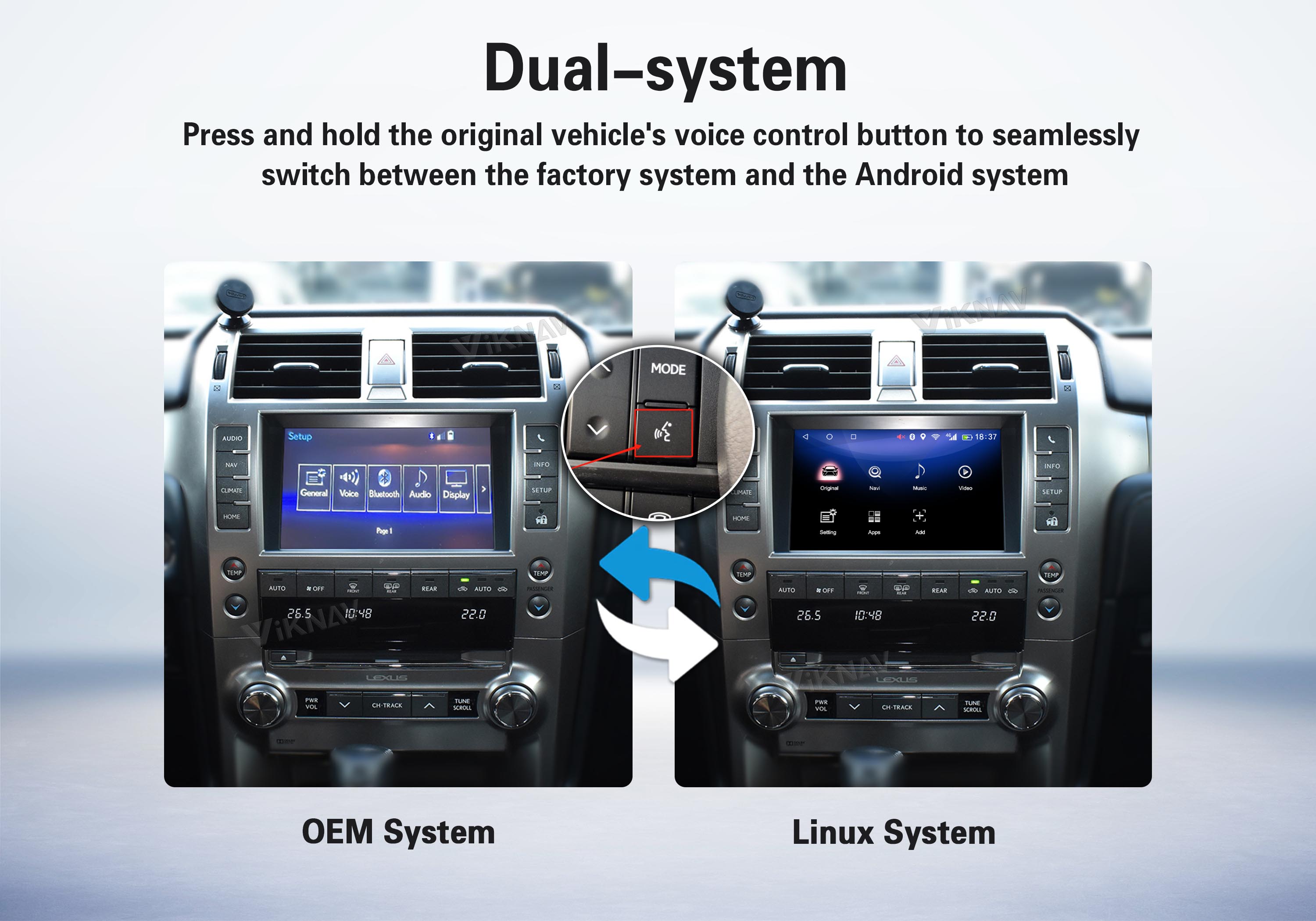 The VIKNAV Interface brings CarPlay and Android Auto to your car’s display