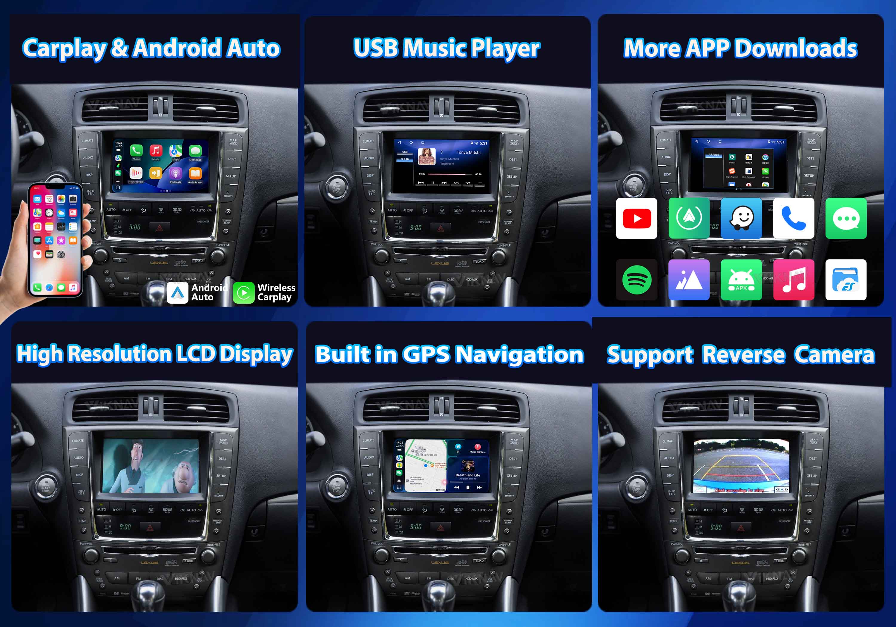 Viknav Android Interface Box for Lexus IS 2005-2023 Wireless CarPlay Android Auto GPS Navigatipn Original Car Radio Screen