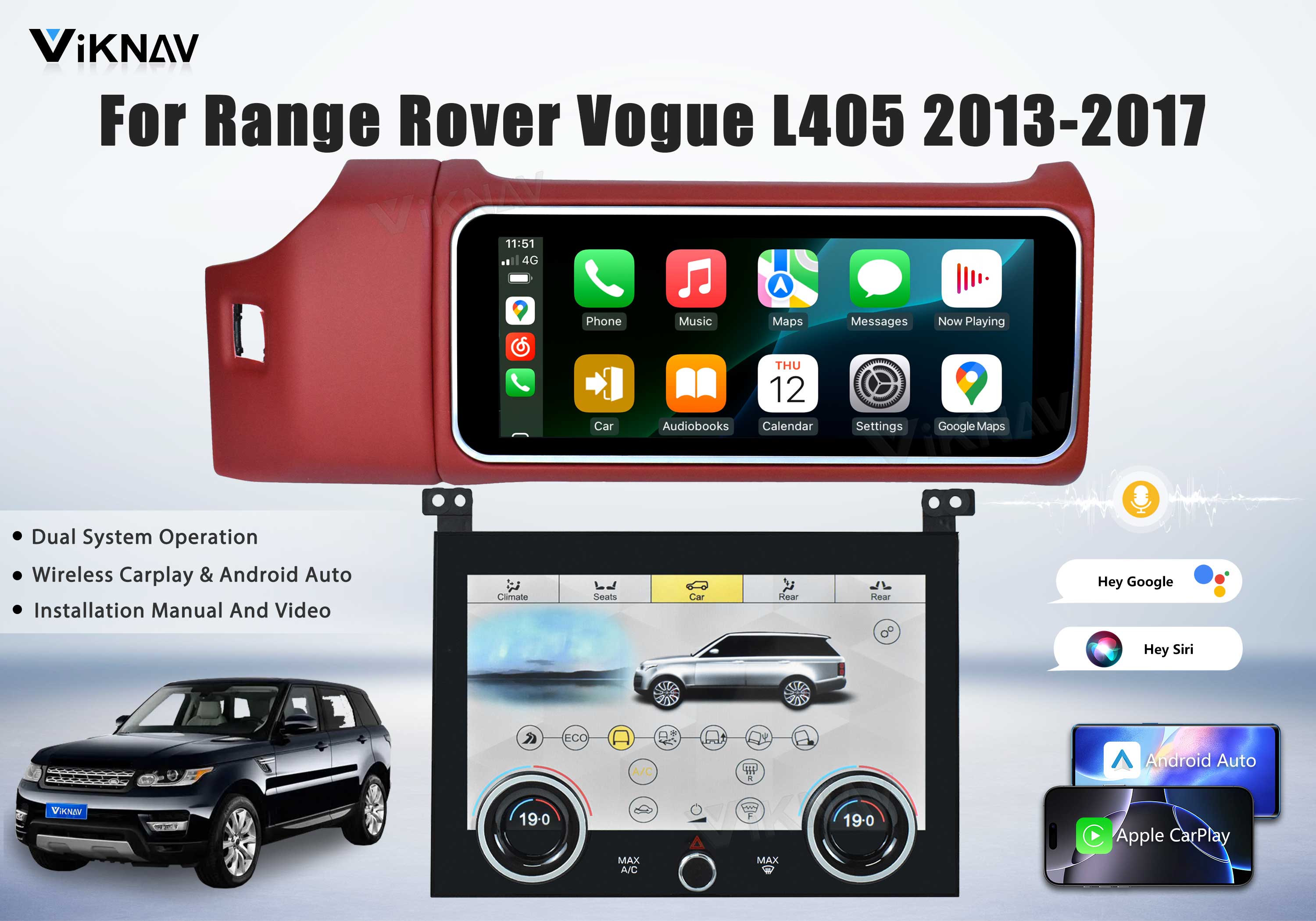 12 module: Red-Both Viknav 12.3 inch Android Radio AC Panel For Land Rover Range Rover Vogue L405 2013-2017 Wireless Carplay Android Auto Multimedia player GPS Navigation Auto Stereo Air Conditioning Touch Screen(Red)