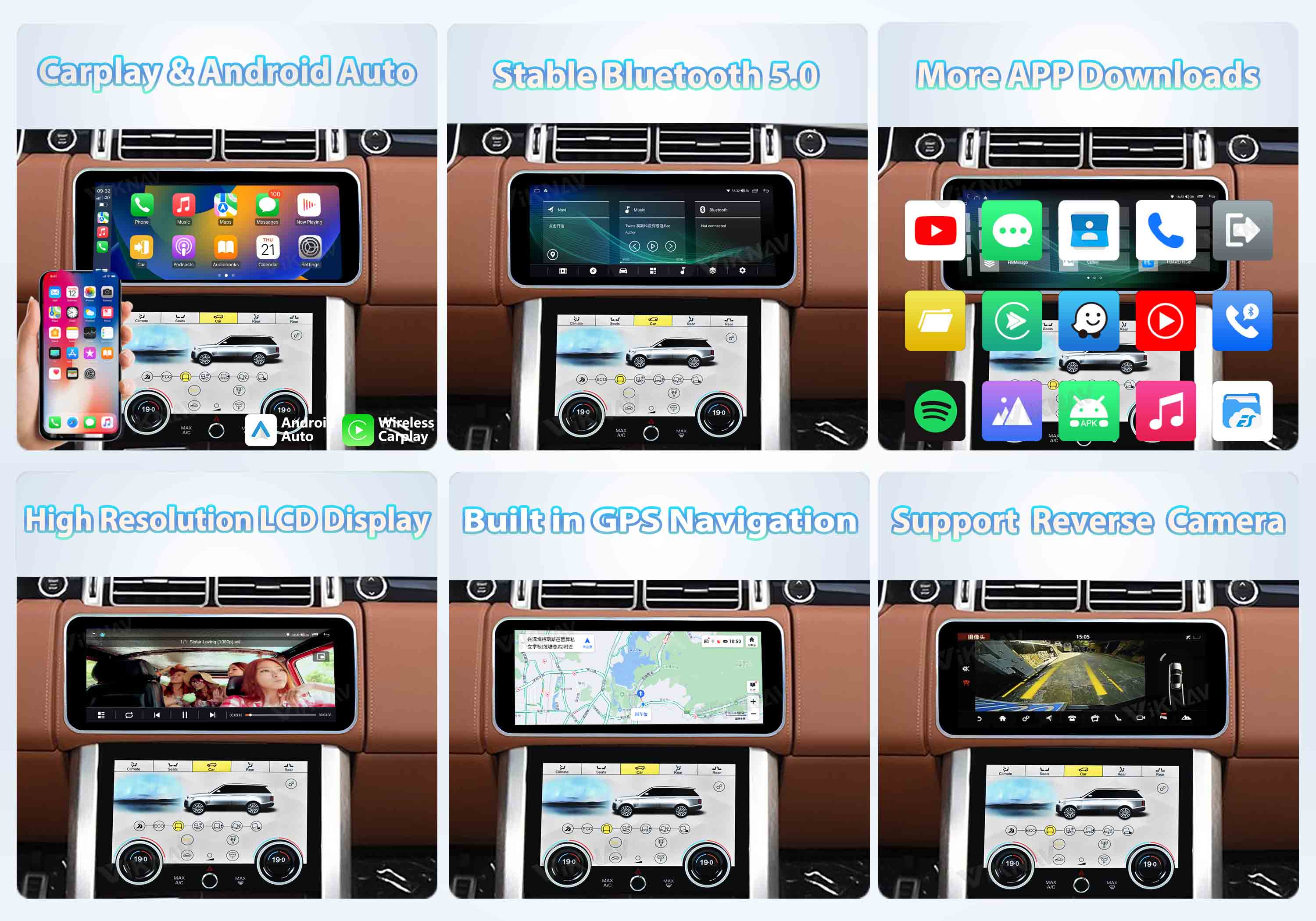 12 module: Brown-Both Viknav 12.3 inch Android Radio AC Panel For Land Rover Range Rover Vogue L405 2013-2017 Wireless Carplay Android Auto Multimedia player GPS Navigation Auto Stereo Air Conditioning Touch Screen(Brown)