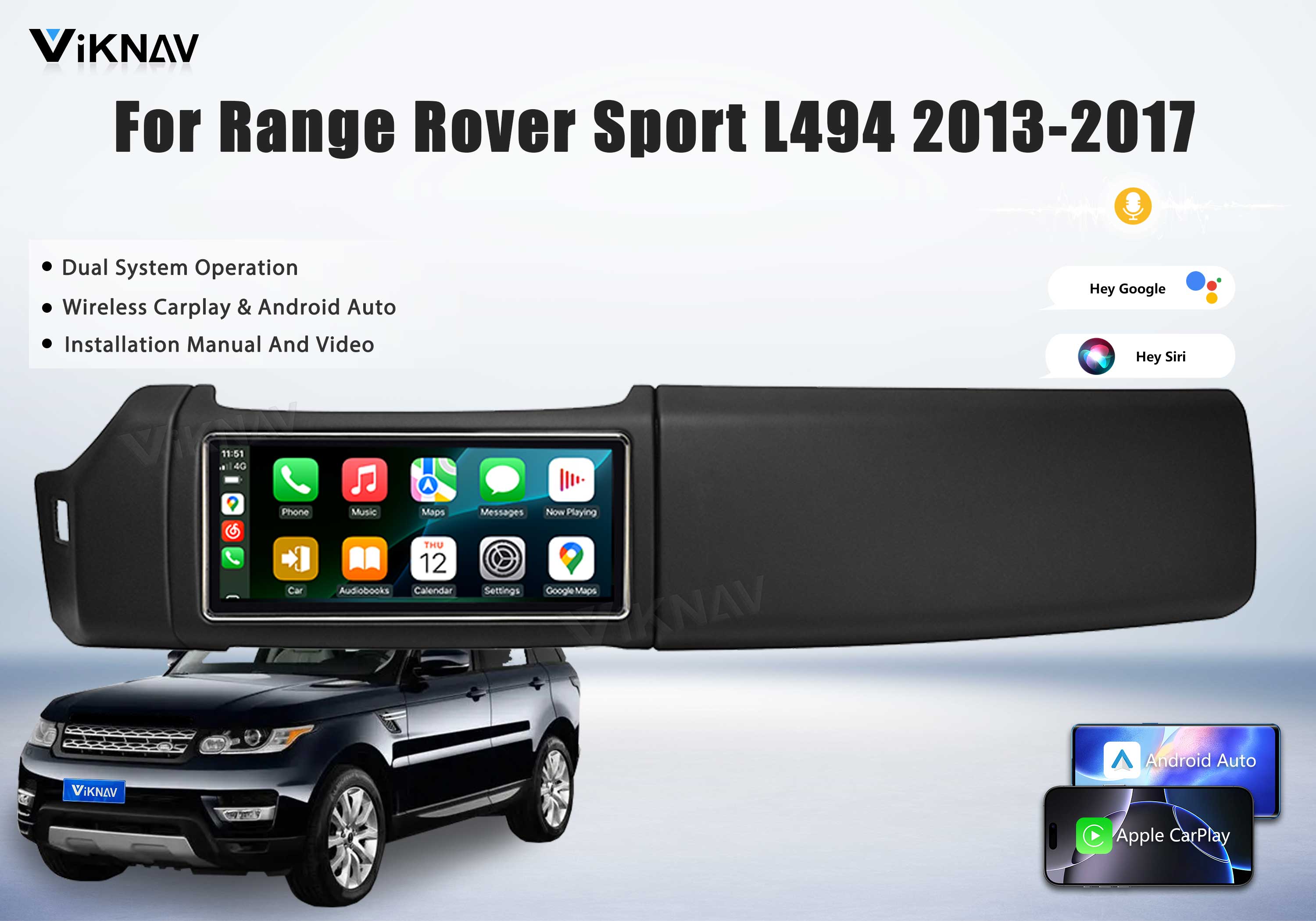 Viknav 12.3 inch Android Radio For Land Rover Range Rover Sport L494 2013-2017 Wireless Carplay Android Auto Multimedia player GPS Navigation Auto StereoTouch Screen(LHD-Black)