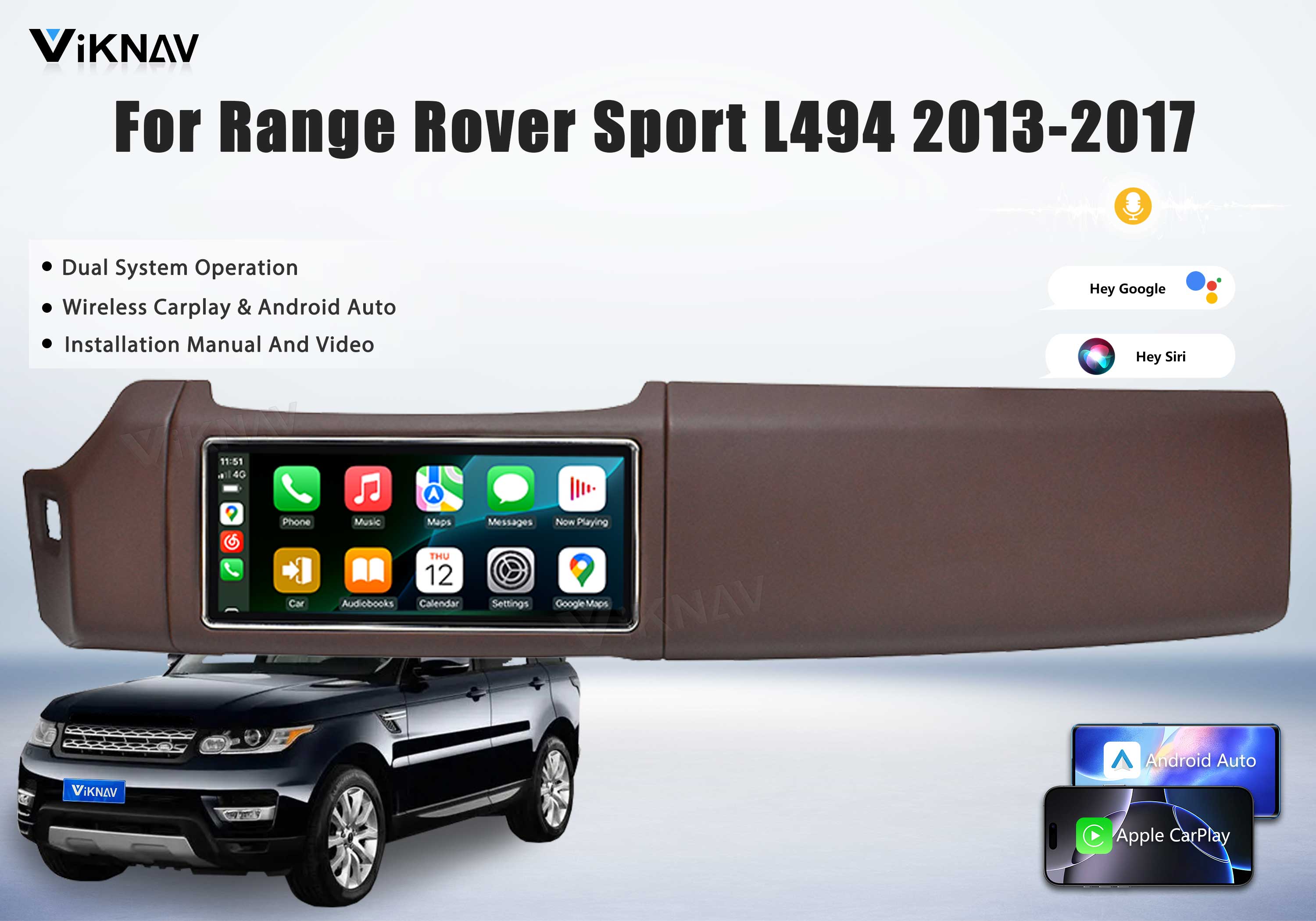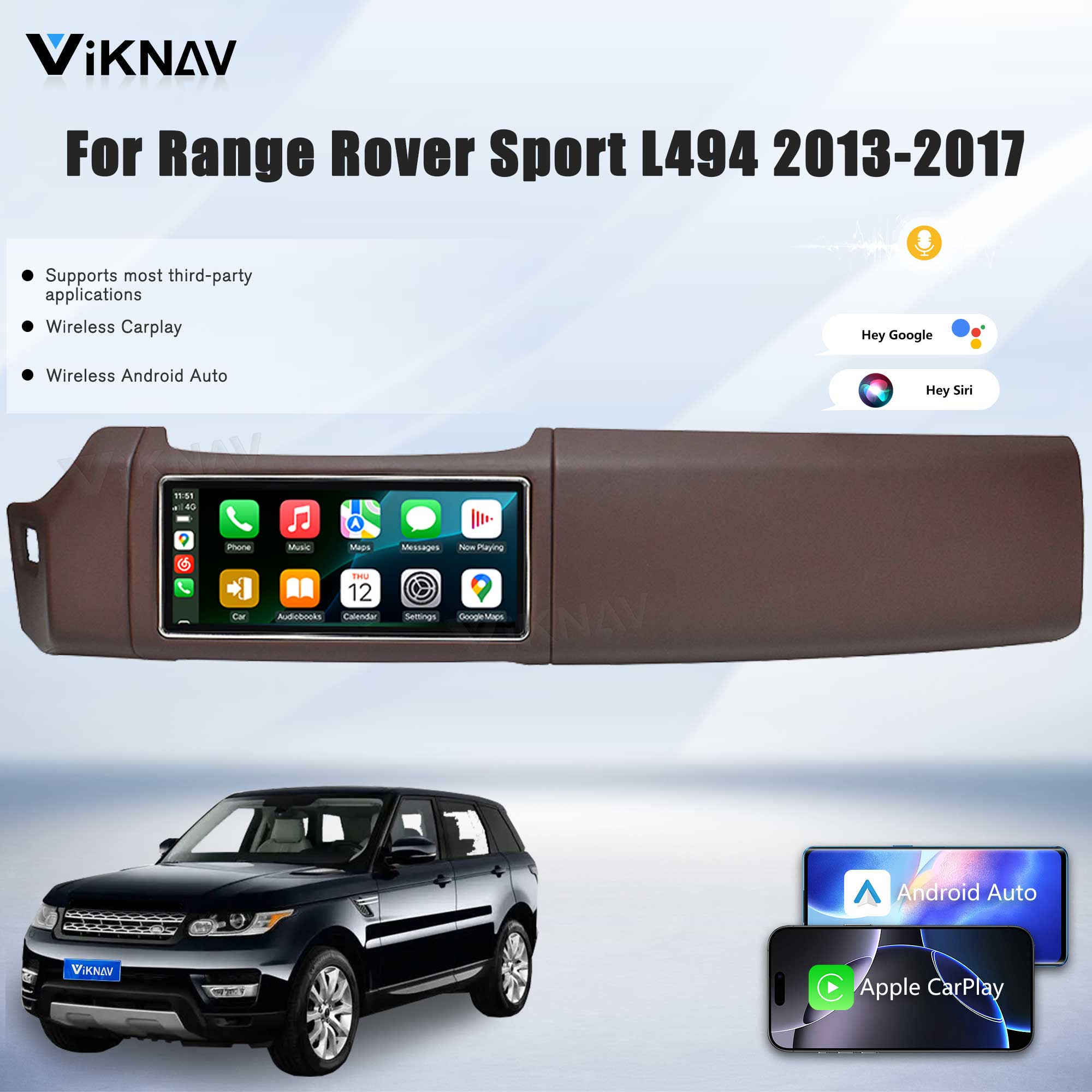 Viknav 12.3 inch Android Radio For Land Rover Range Rover Sport L494 2013-2017 Wireless Carplay Android Auto Multimedia player GPS Navigation Auto StereoTouch Screen(LHD-Coffee brown)