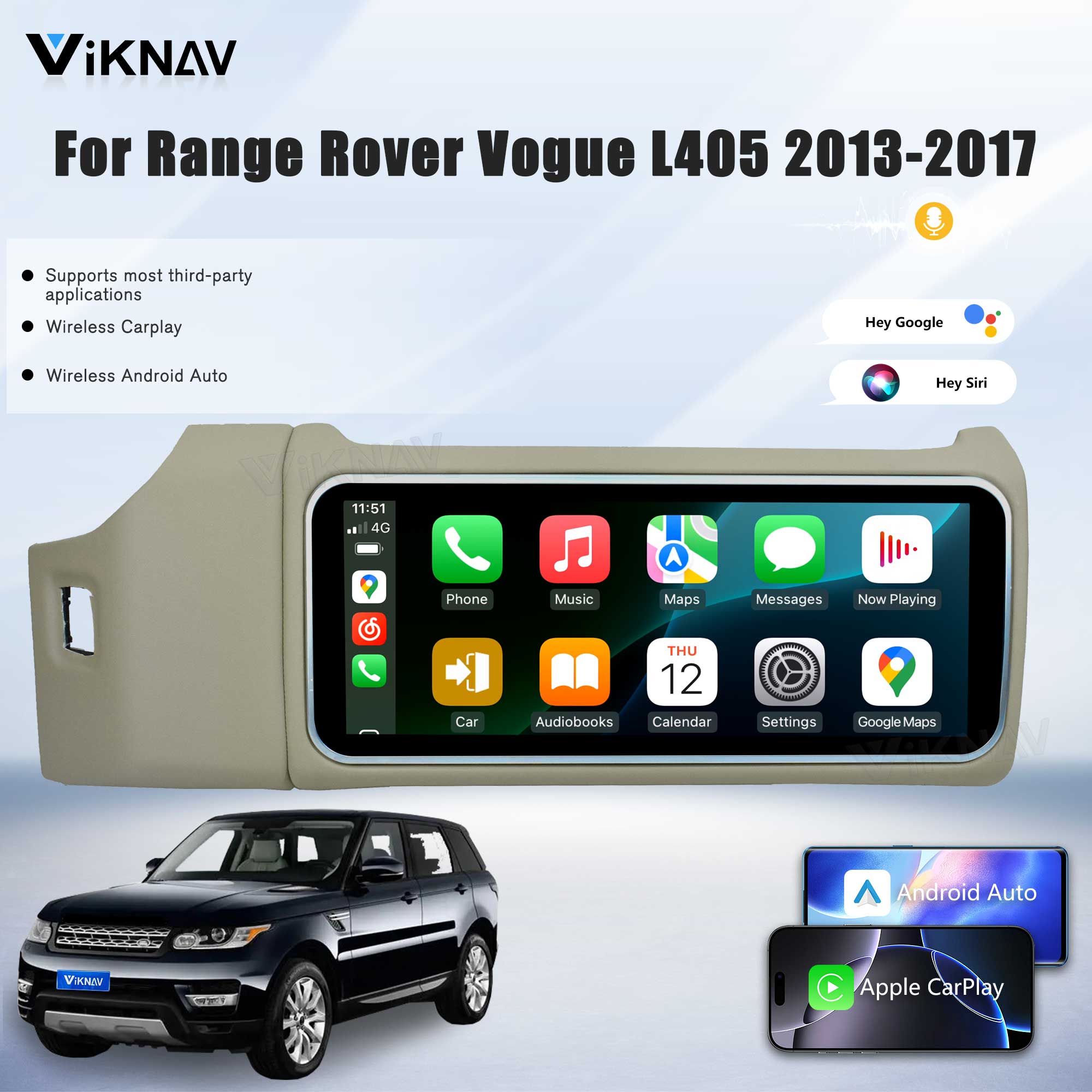Viknav 12.3 inch Android Radio For Land Rover Range Rover Vogue L405 2013-2017 Wireless Carplay Android Auto Multimedia player GPS Navigation Auto Stereo Touch Screen(Beige)