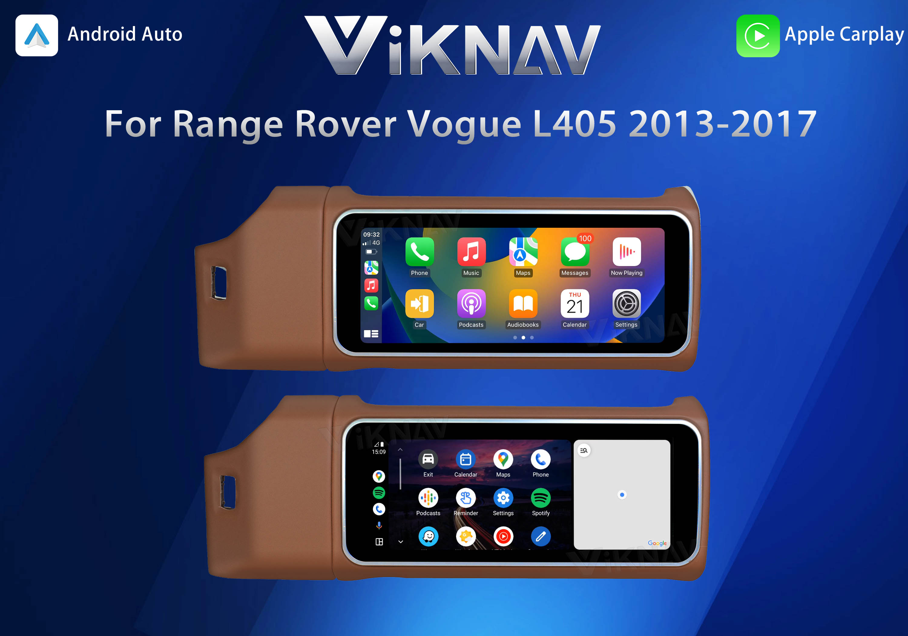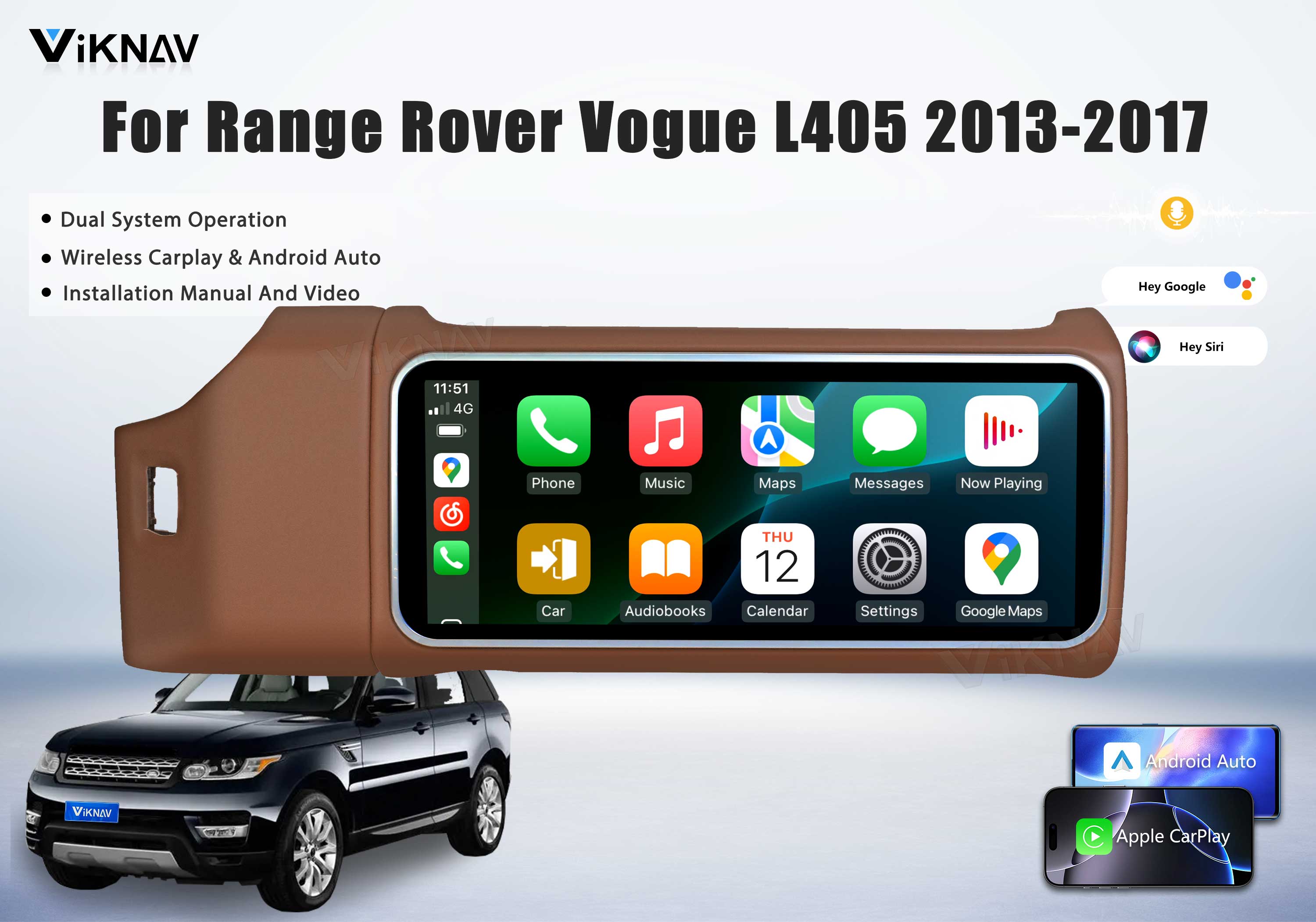 Viknav 12.3 inch Android Radio For Land Rover Range Rover Vogue L405 2013-2017 Wireless Carplay Android Auto Multimedia player GPS Navigation Auto Stereo Touch Screen(Brown)