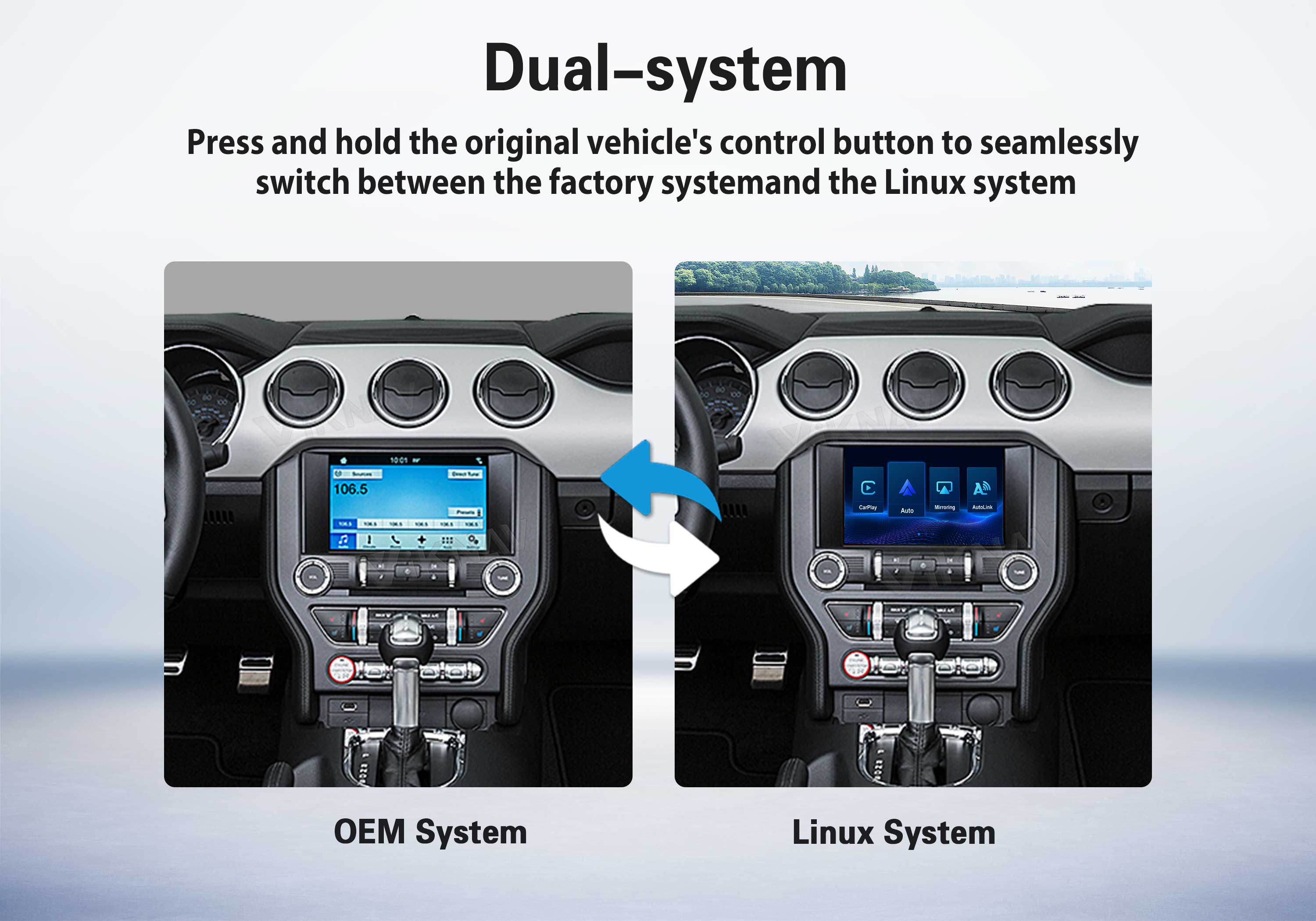 🚗It supports Steering Wheel Control, Rear-View Camera, and all original car functions. Long press the button on the steering wheel to switch system.