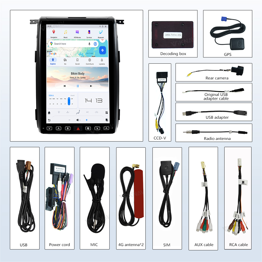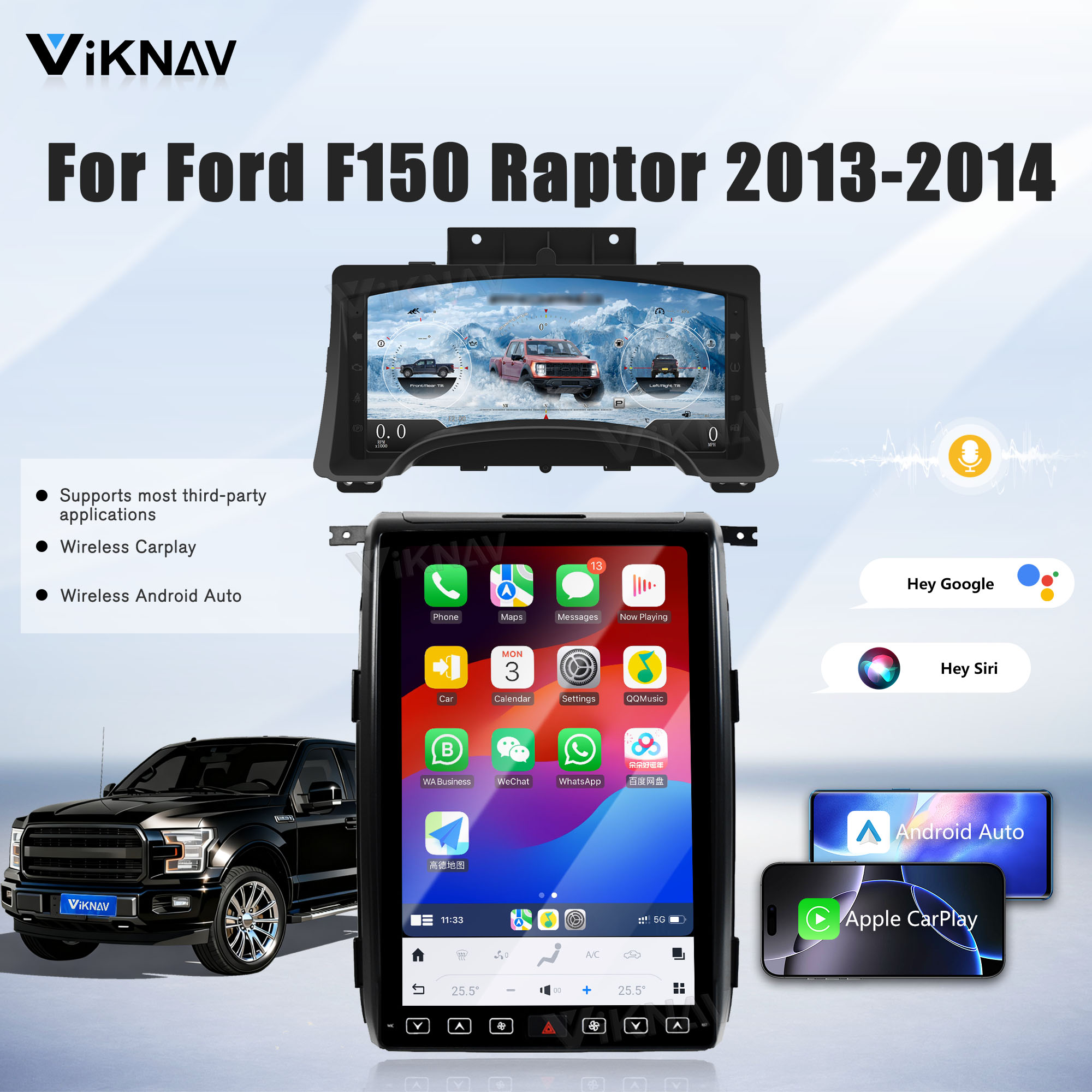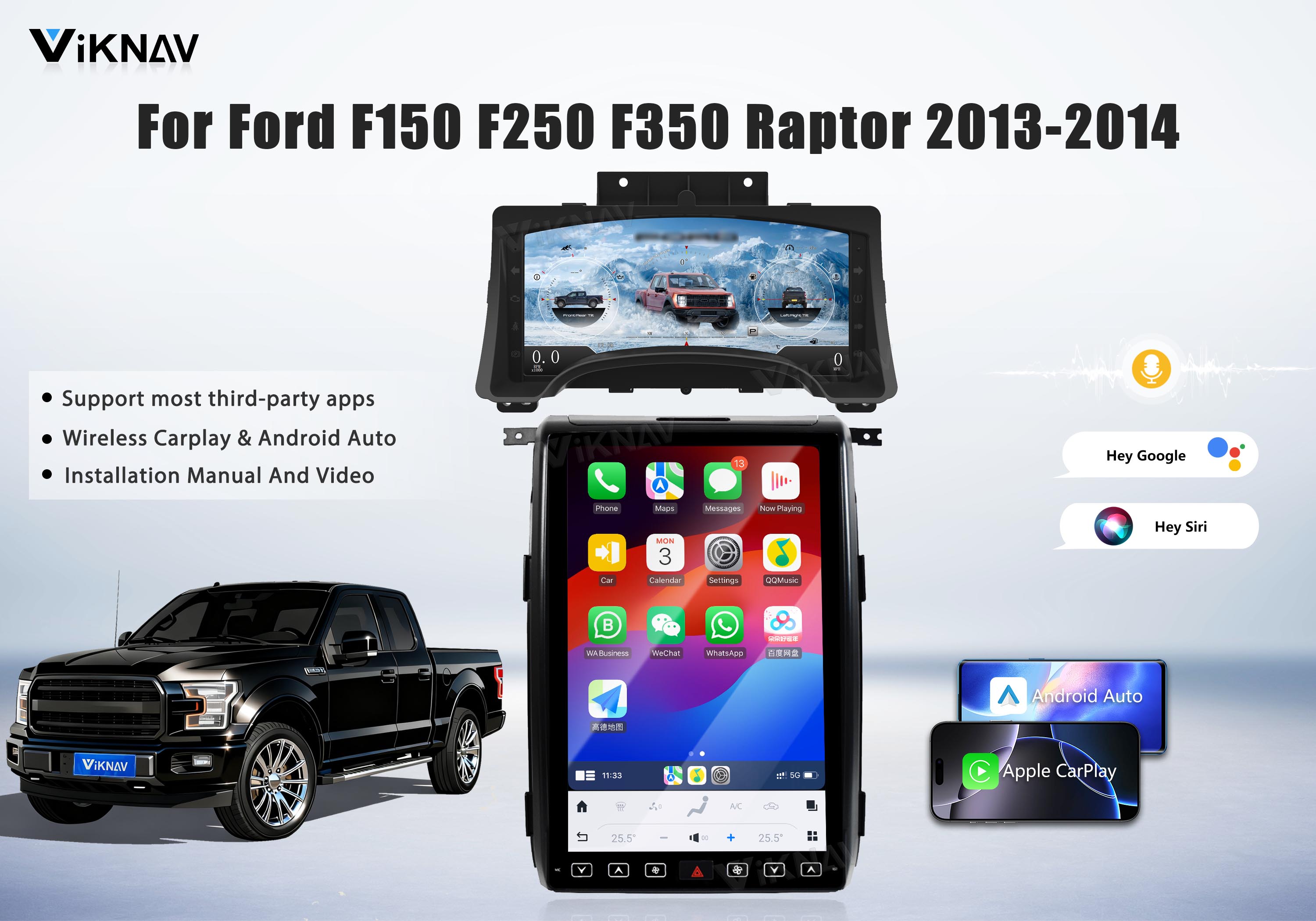 🚗14.4-inch Latest Android Tesla Car Radio + 13.1-inch Digital Cluster Vertical Screen For Ford F150 F250 F350 2013 2014