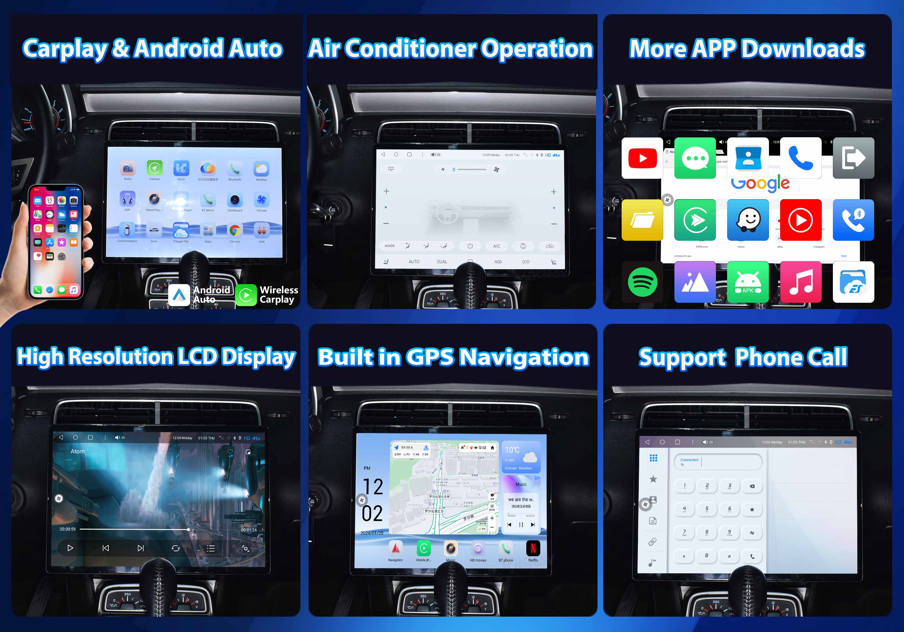 you are able to access high quality pictures, online gps navigation, messages, video player and music together in the your car.