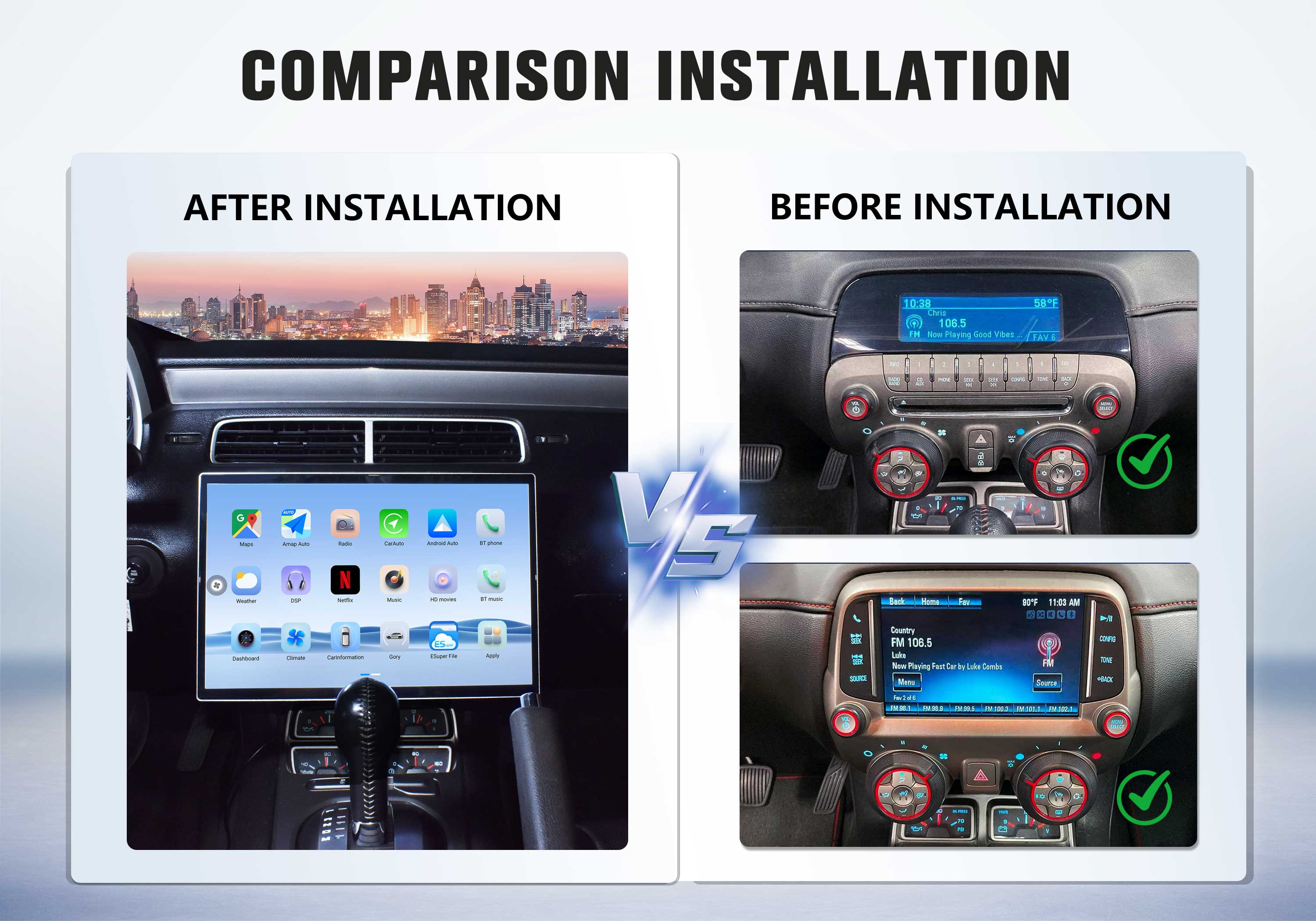 Precisely designed for Chevrolet Camaro models 2010-2015. Direct plug-and-play installation, perfectly matching the original dashboard style.