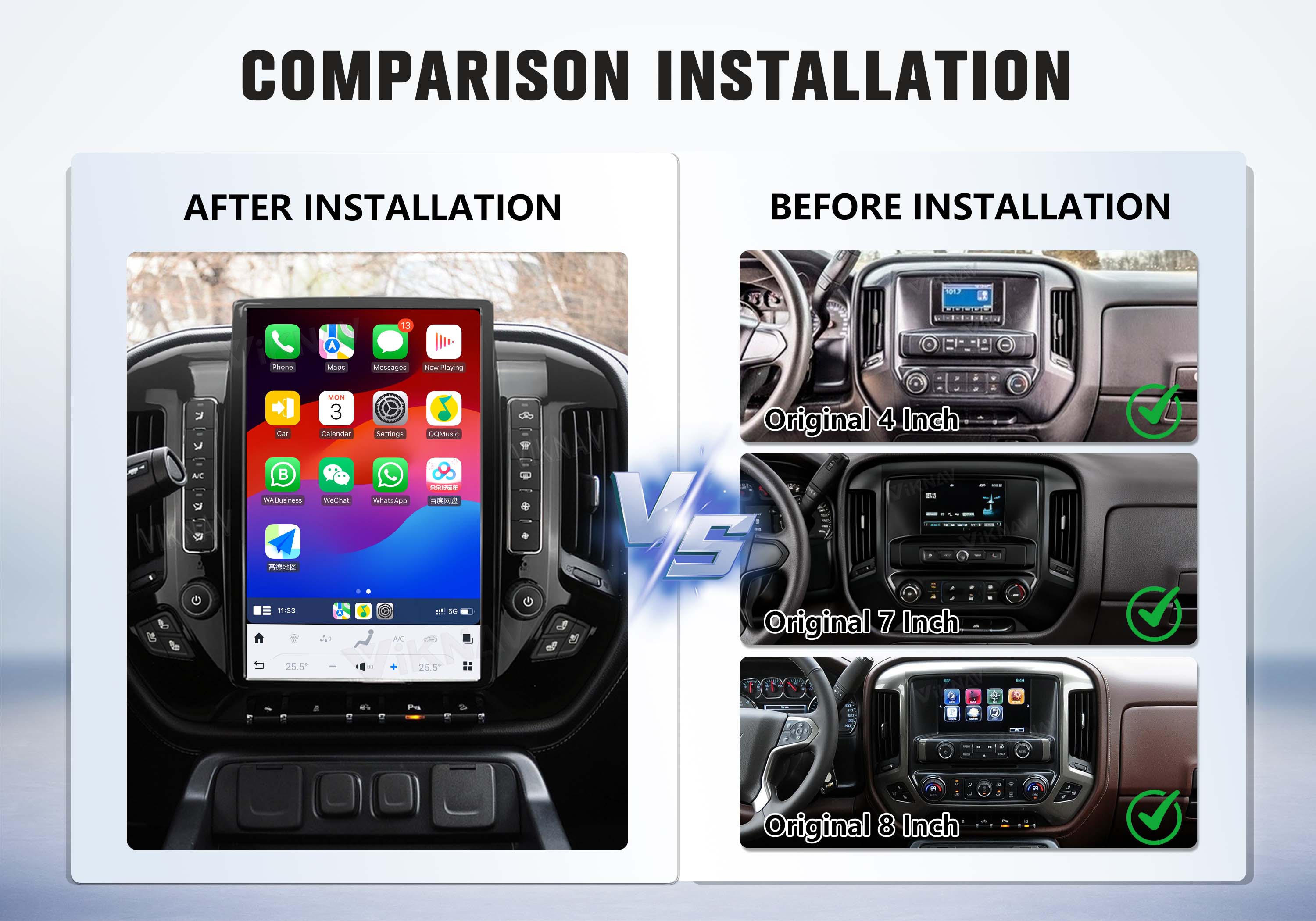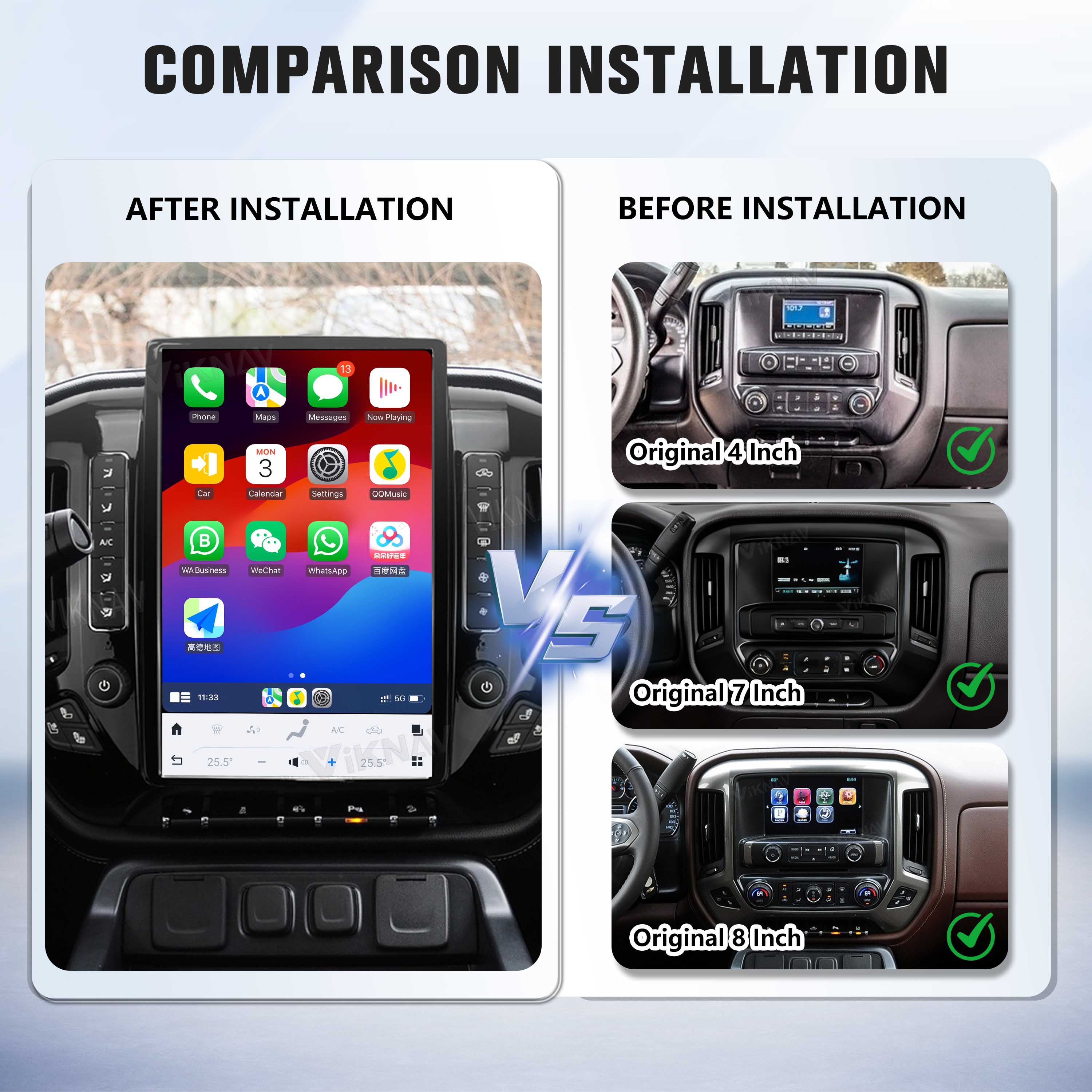 🚗Dual System Operation: After Install our this radio for Chevrolet Silverado to retain the original car system, all the original car functions can be used normally. The original car BOSE system and B&O system can be supported. The original car camera can be used.and it will also can use android system.
