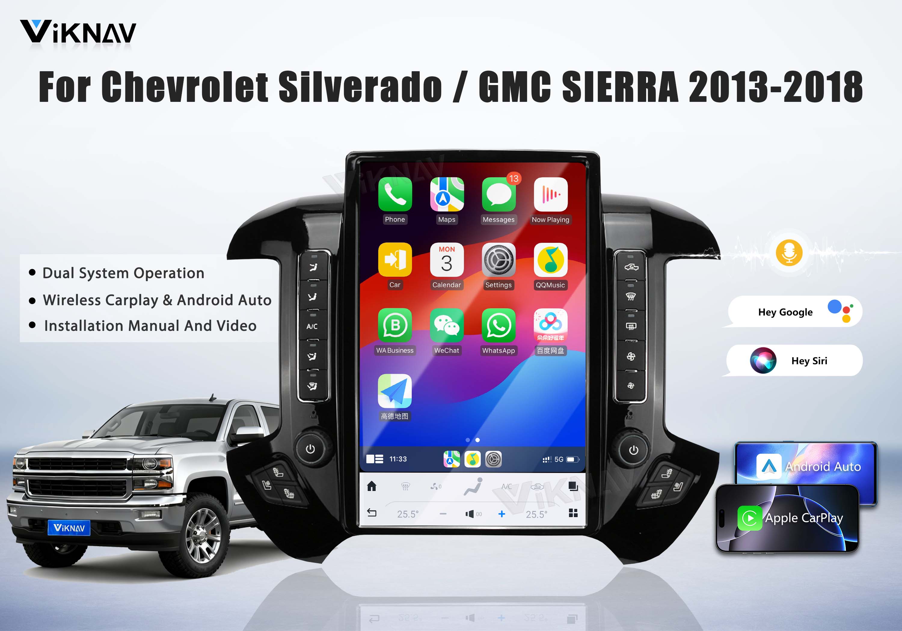 15.6 inch Latest Android Tesla Car Radio Vertical Screen GPS For GMC Sierra Chevrolet Silverado 2014 2015 2016 2017 2018