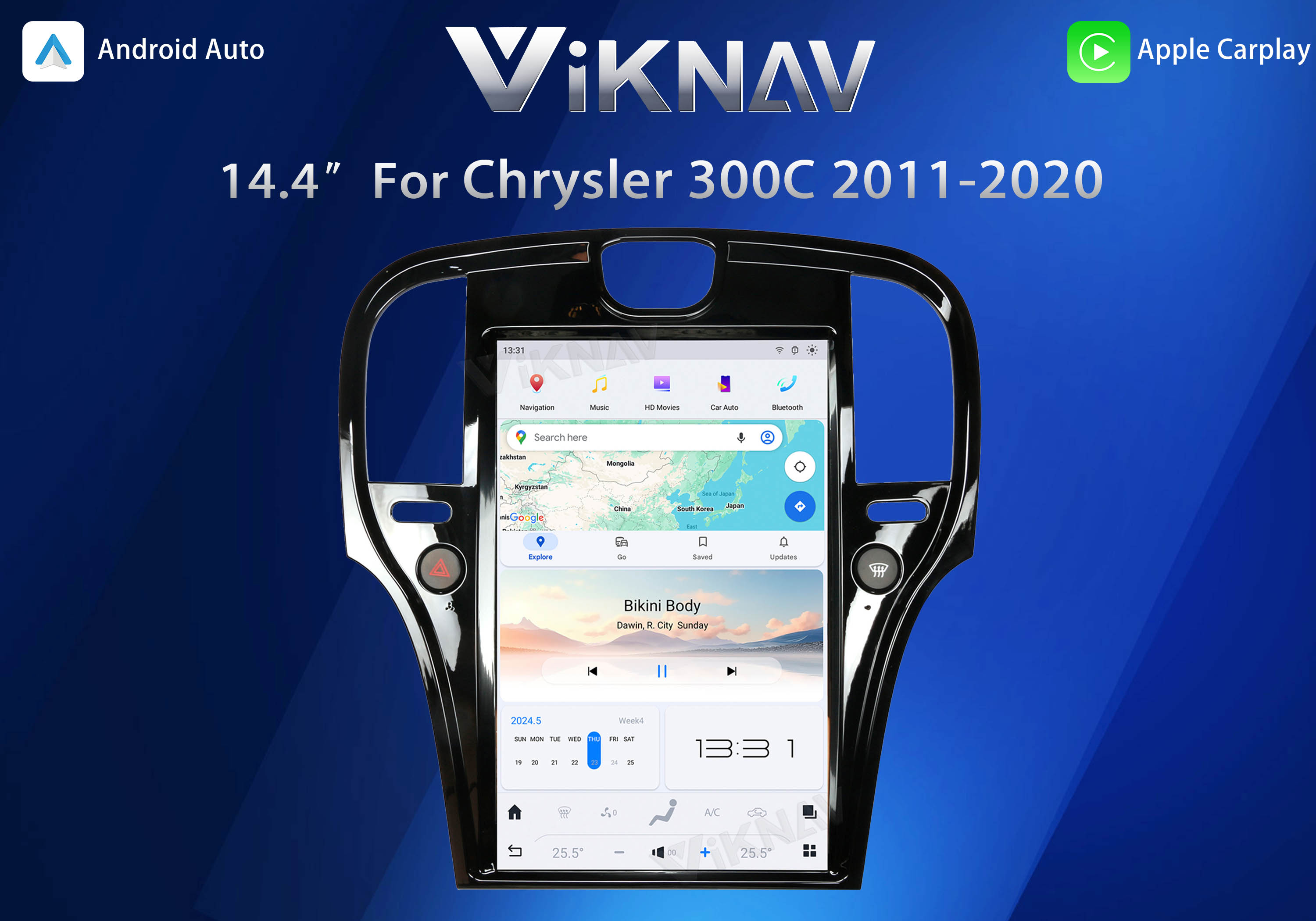 14.4 inch Latest Android Tesla Car Radio Vertical Screen GPS Navigation For Chrysler 300C 2011 2012 2013 2014 2015 2016 2017 2018 2019 2020