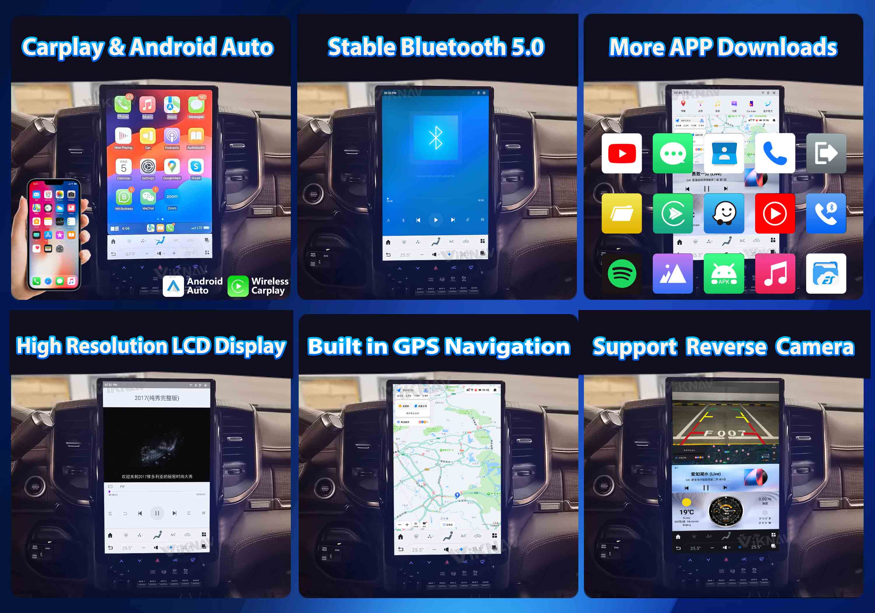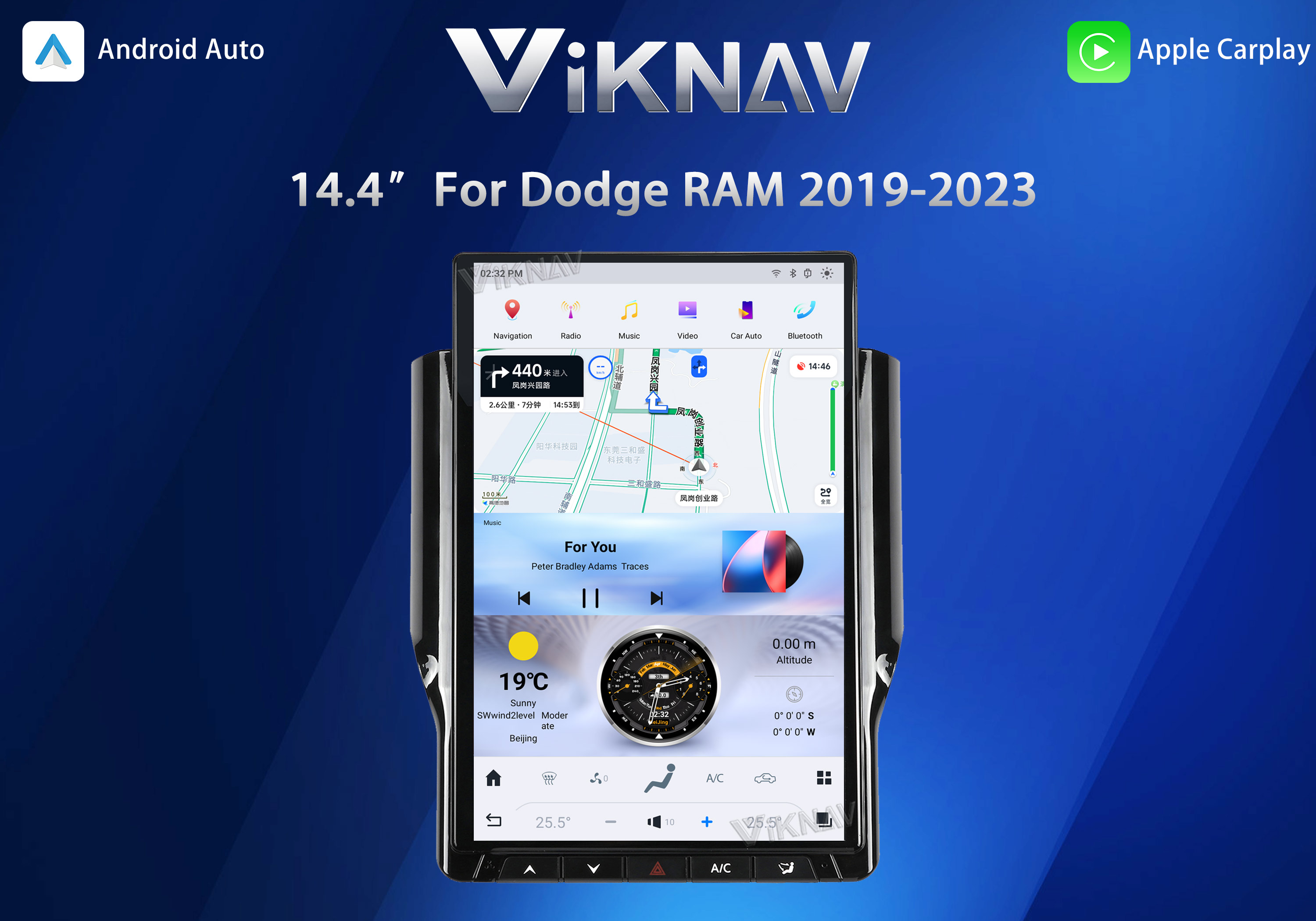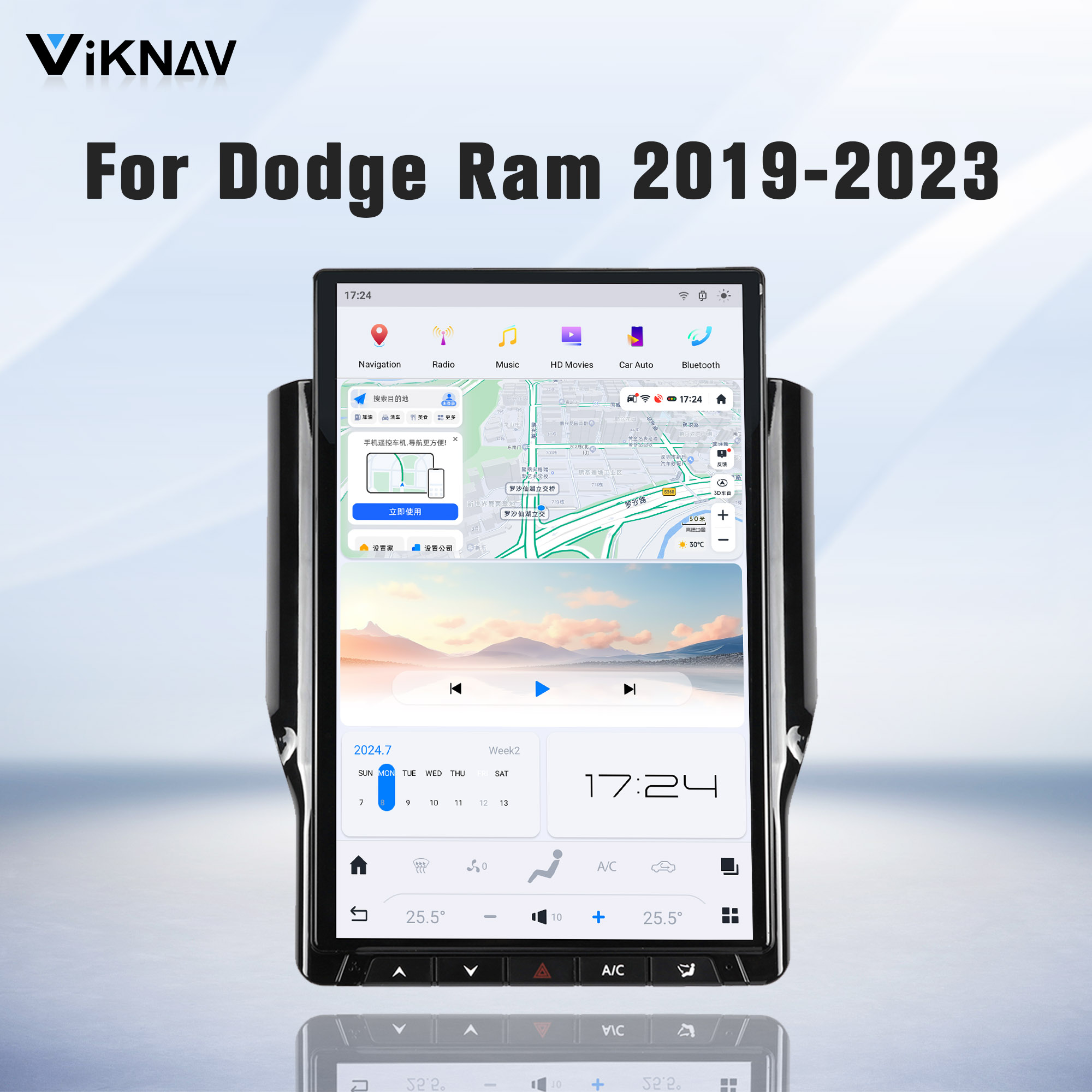14.4 inch Latest Android Tesla Car Radio Vertical Screen GPS Navigation For Dodge Ram 2019 2020 2021 2022 2023