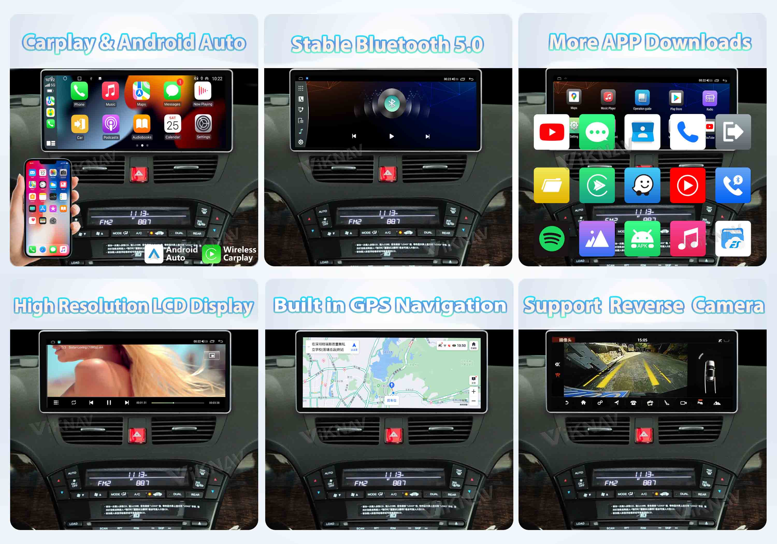 Viknav Car Stereo For Honda Acura MDX 2007-2013 Car Radio Wireless Carplay Android Auto GPS Navigation Multimedia Player
