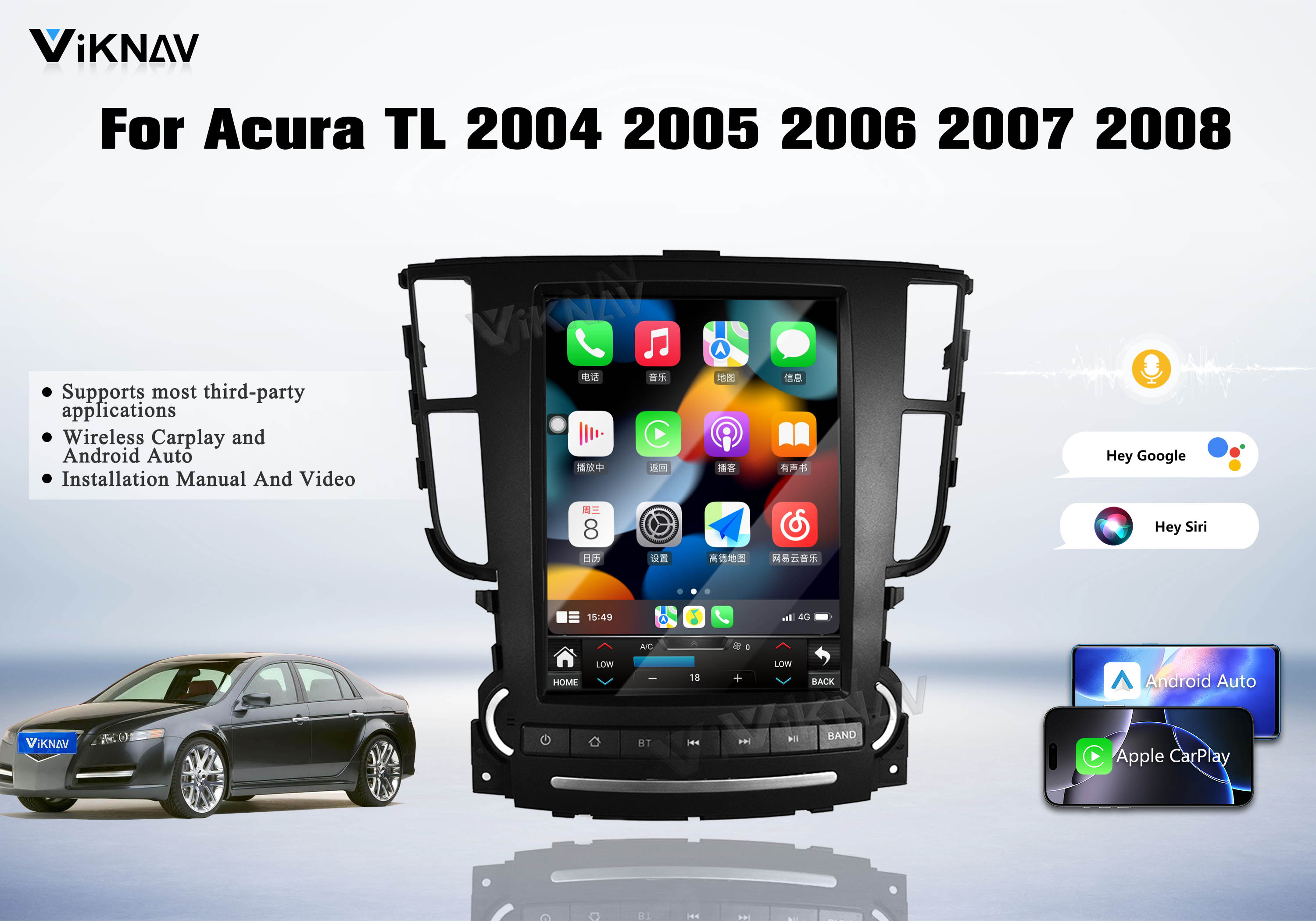 Viknav Android Car Stereo For Honda Acura TL 2004-2008 Car Radio Wireless Carplay Android Auto GPS Navigation Multimedia Player Head Unit 128GB