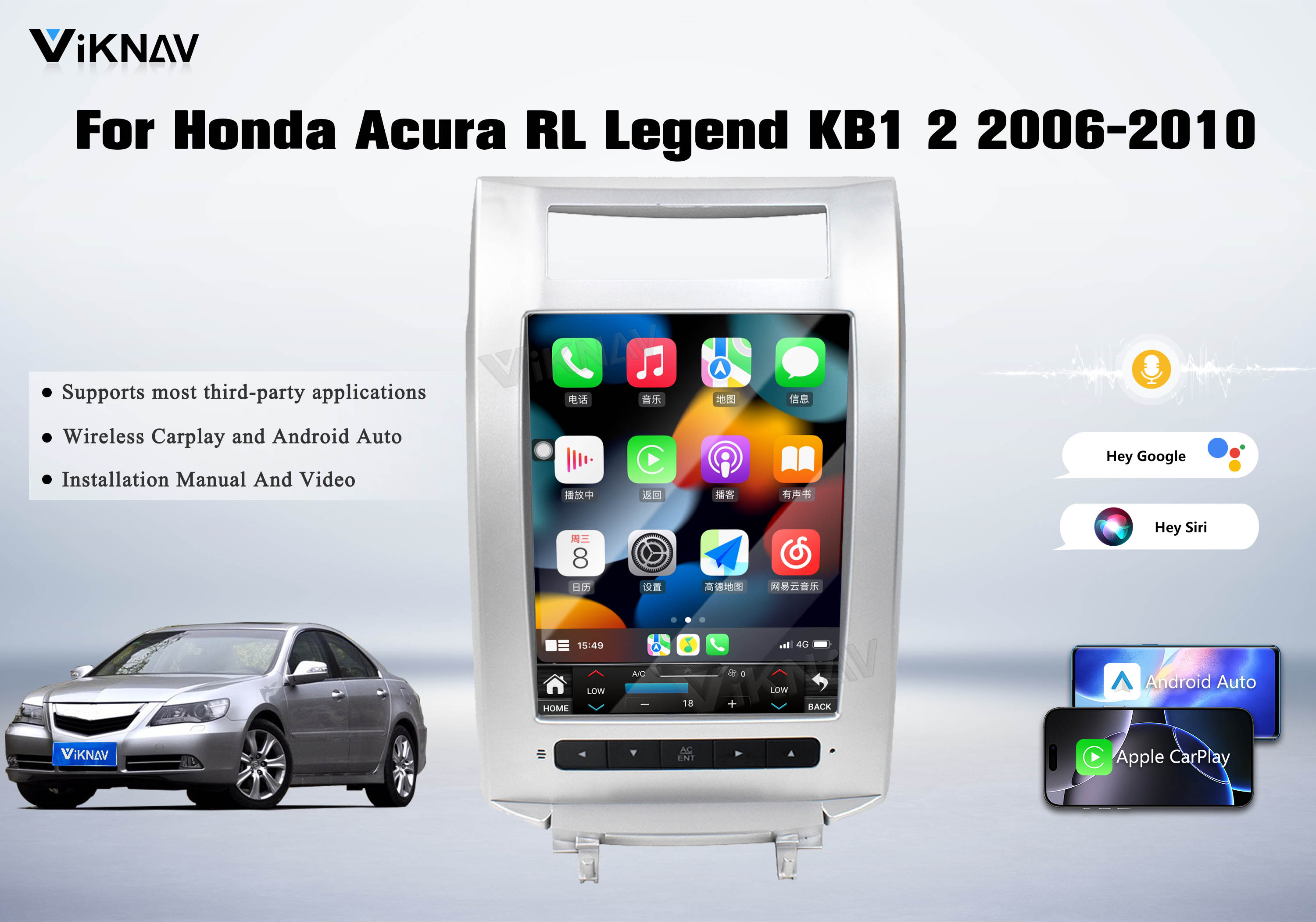 Viknav Android Car Stereo For Honda Acura RL Legend KB1 2 2006-2010 Car Radio Wireless Carplay Android Auto GPS Navigation Multimedia Player Head Unit 128GB