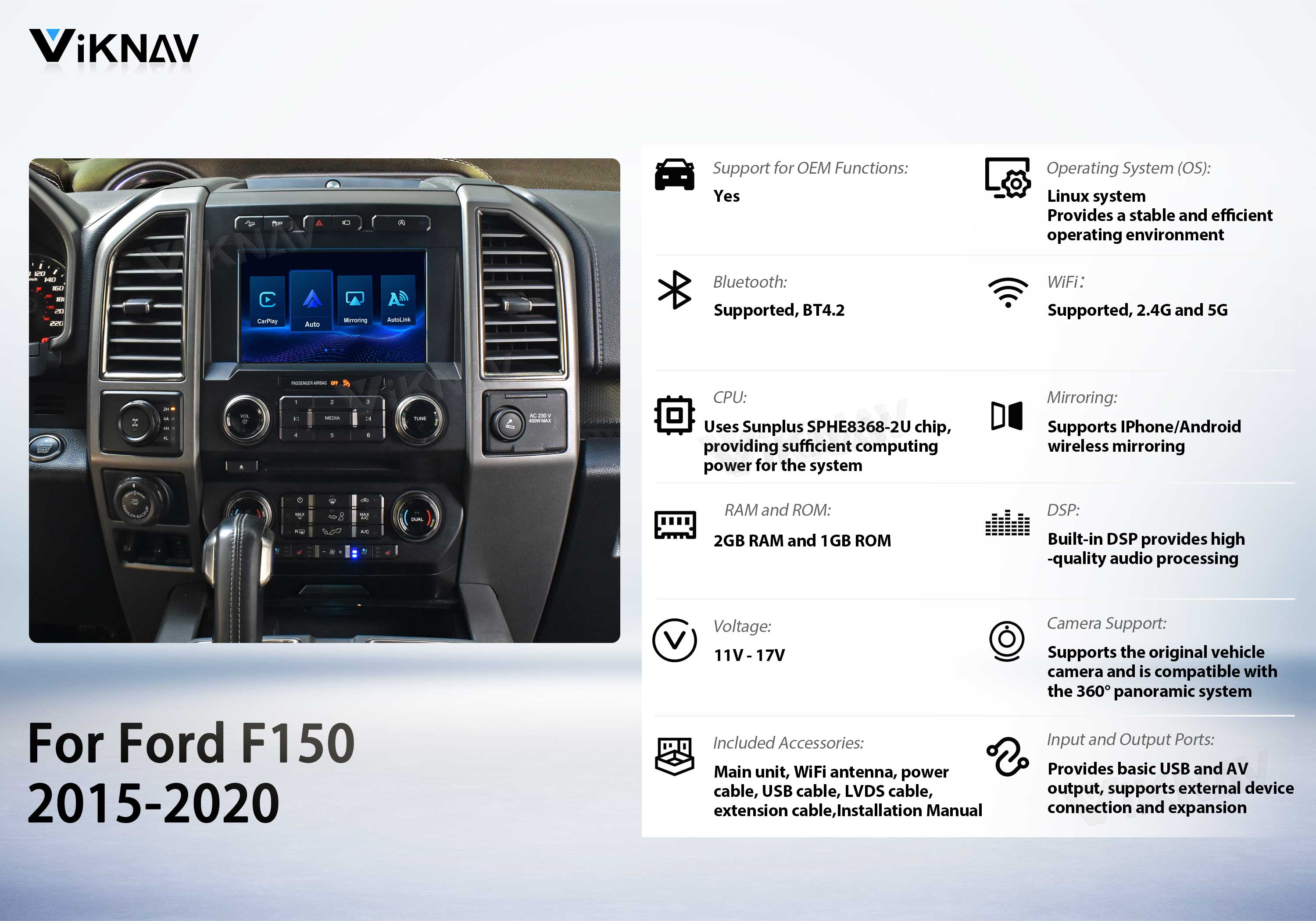 ✅Car Model:Fit for Ford F150 Raptor 2015 2016 2017 2018 2019 2020 original 8 inch screen