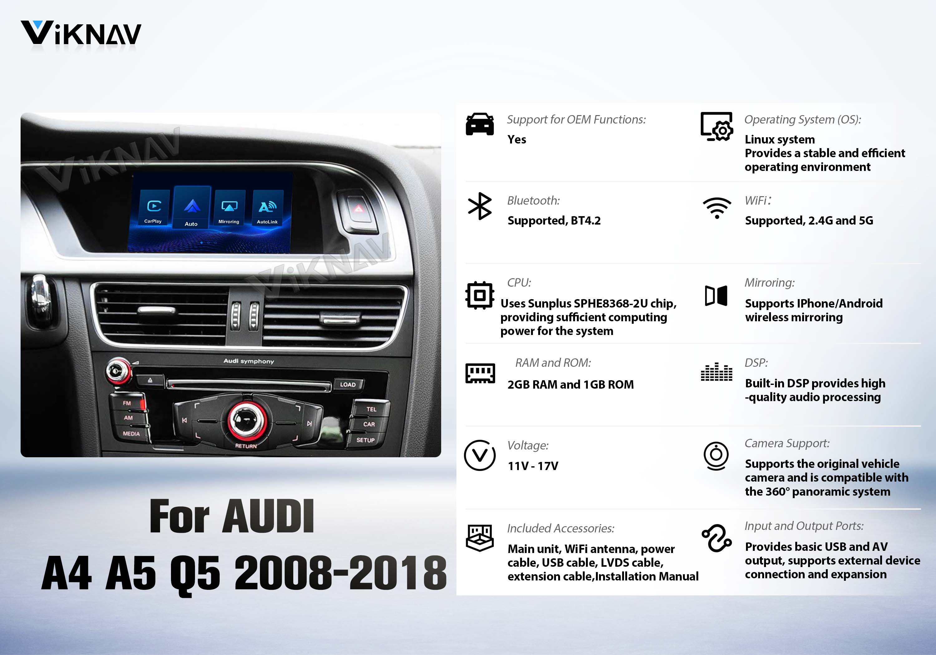Viknav Linux Interface Box for AUDI A4 A5 Q5 2008-2018 Wireless CarPlay Decoder Android Auto GPS Navigatipn Original Car Radio Screen