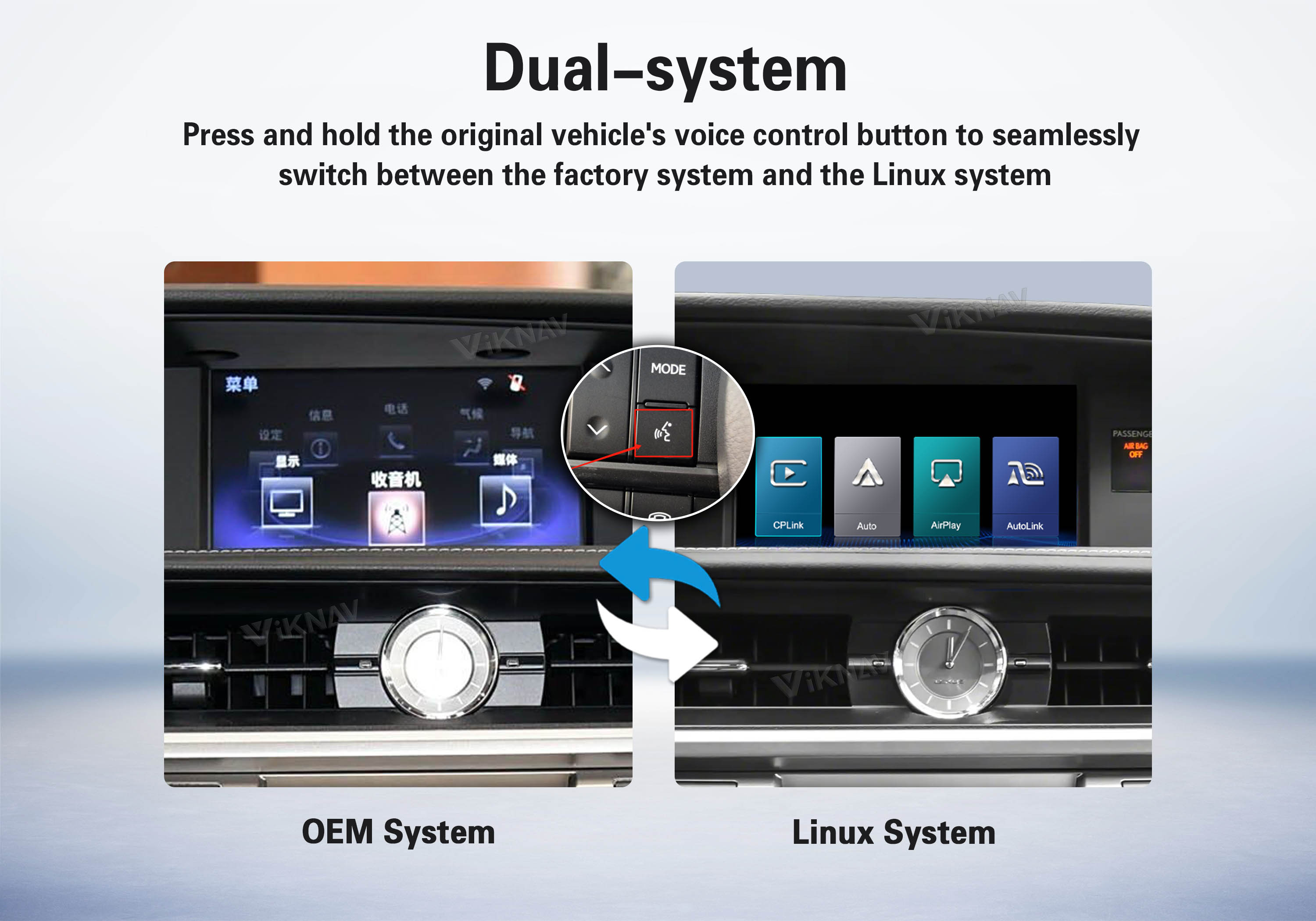 The VIKNAV Interface brings CarPlay and Android Auto to your car’s display