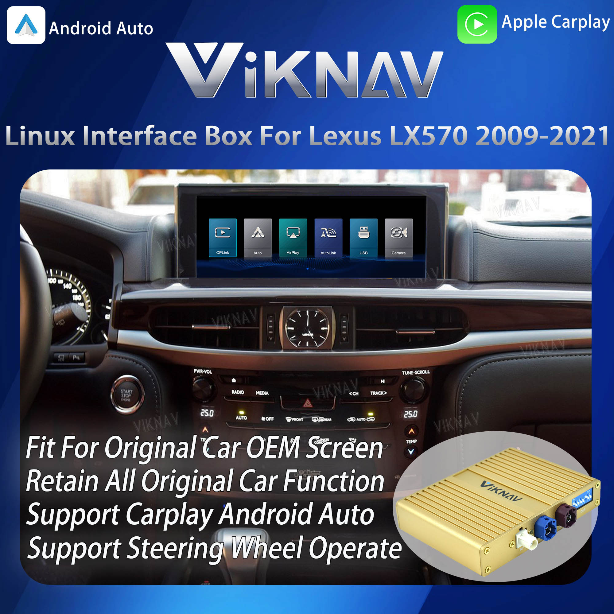 Viknav Linux Interface Box for Lexus LX570 2009 -2021 Wireless CarPlay Android Auto GPS Navigatipn Original Car Radio Screen