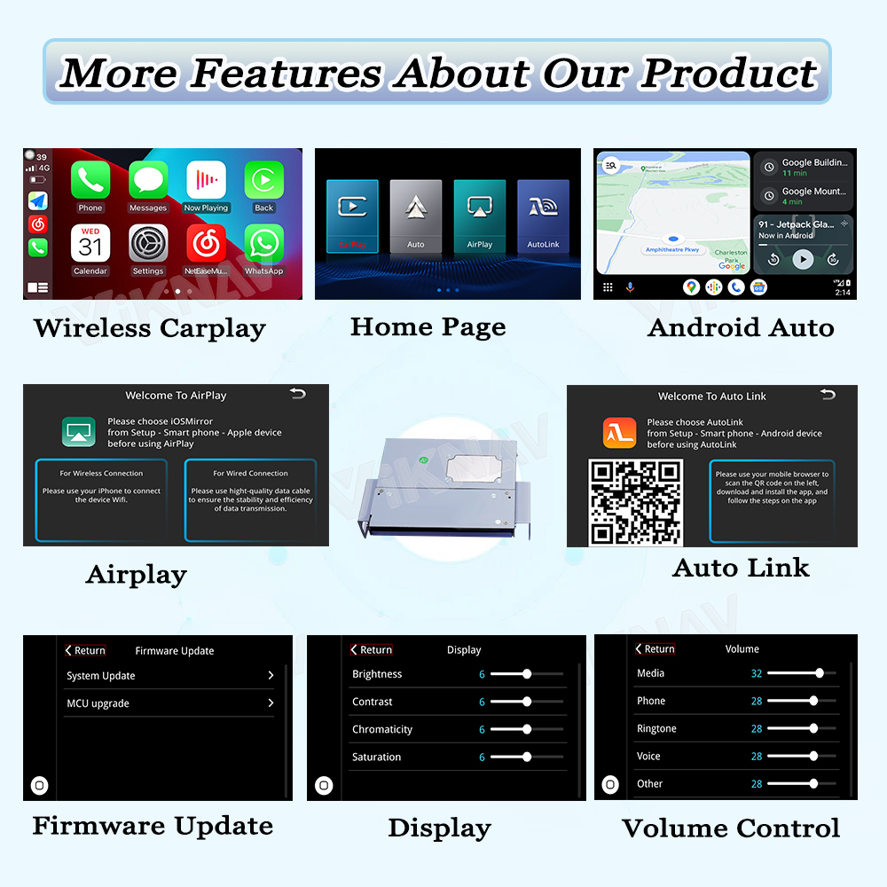 Viknav Linux Interface Box for Toyota Highlander 2015-2018 Wireless CarPlay Android Auto GPS Navigatipn Original Car Radio Screen