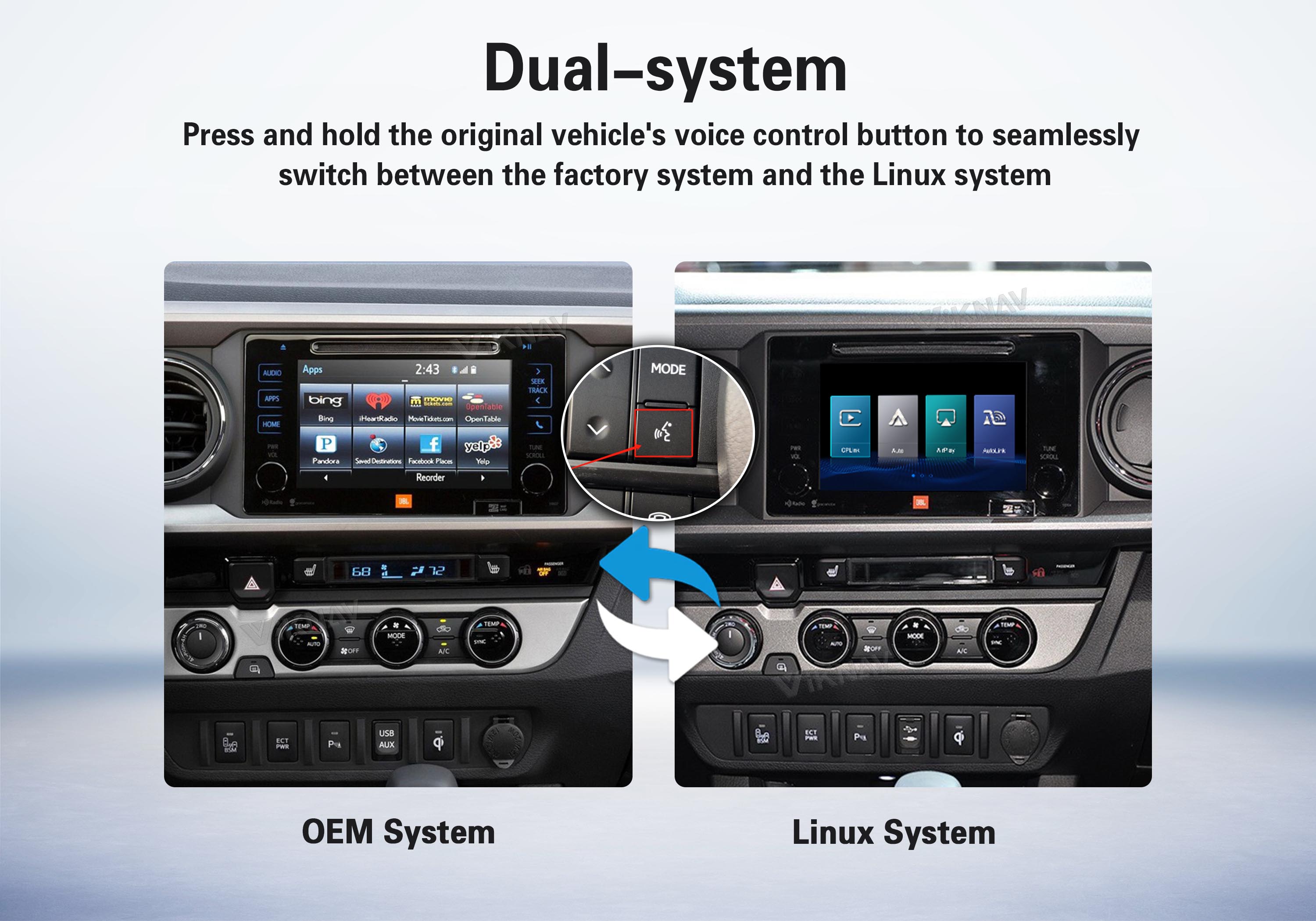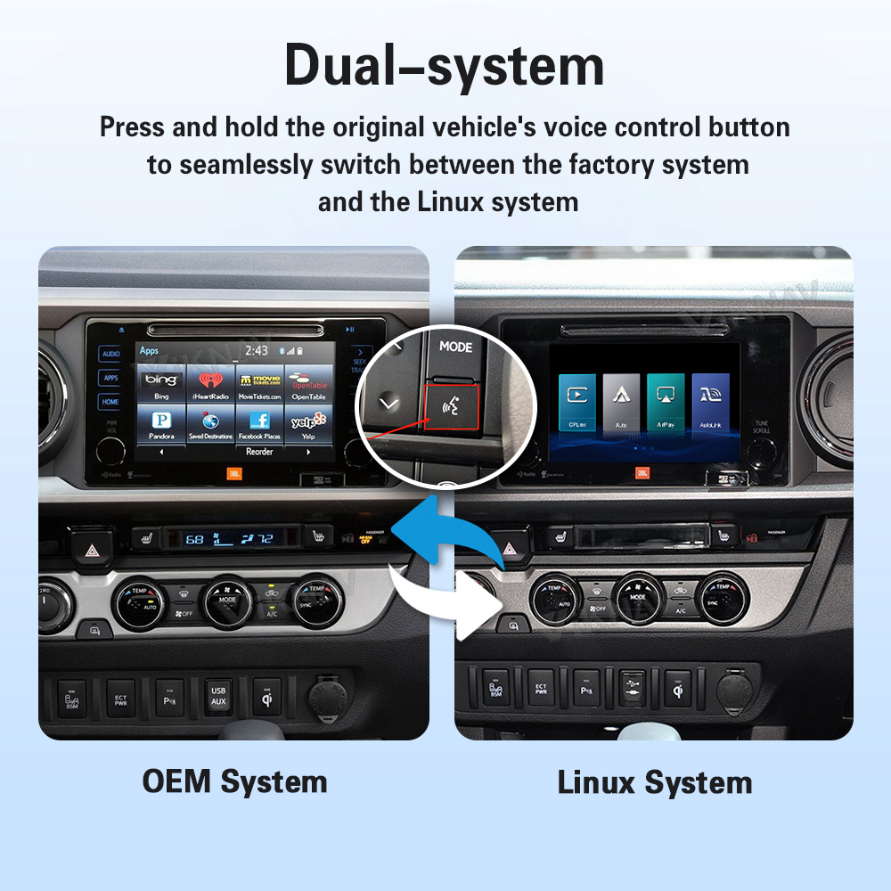 ✅Switch between OEM and Linux with a long press — enjoy CarPlay, Android Auto, and all original features seamlessly.