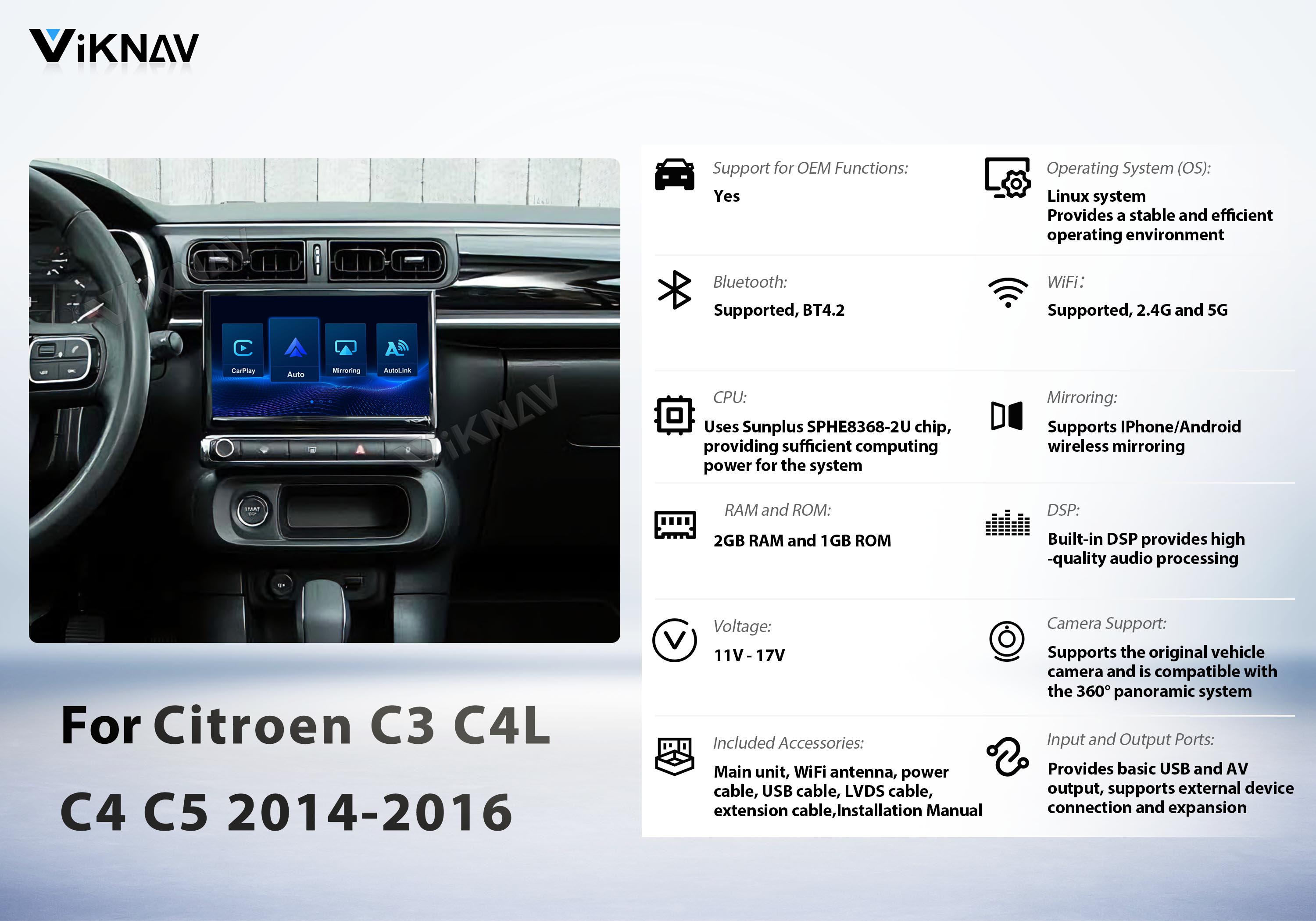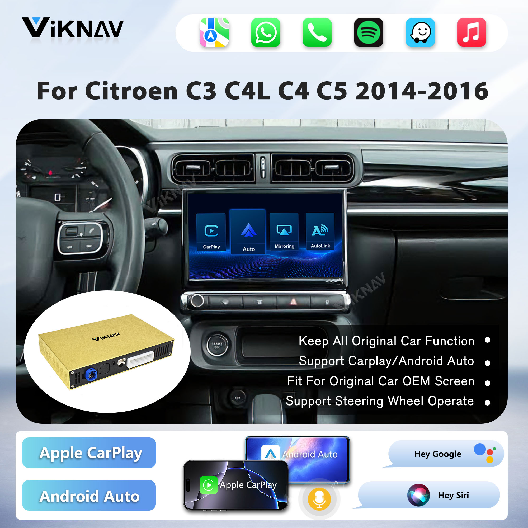 Viknav Linux System Decoder Box for Citroen Wireless CarPlay Android Auto Upgrade Interface Retain OEM CUE Screen & Functions