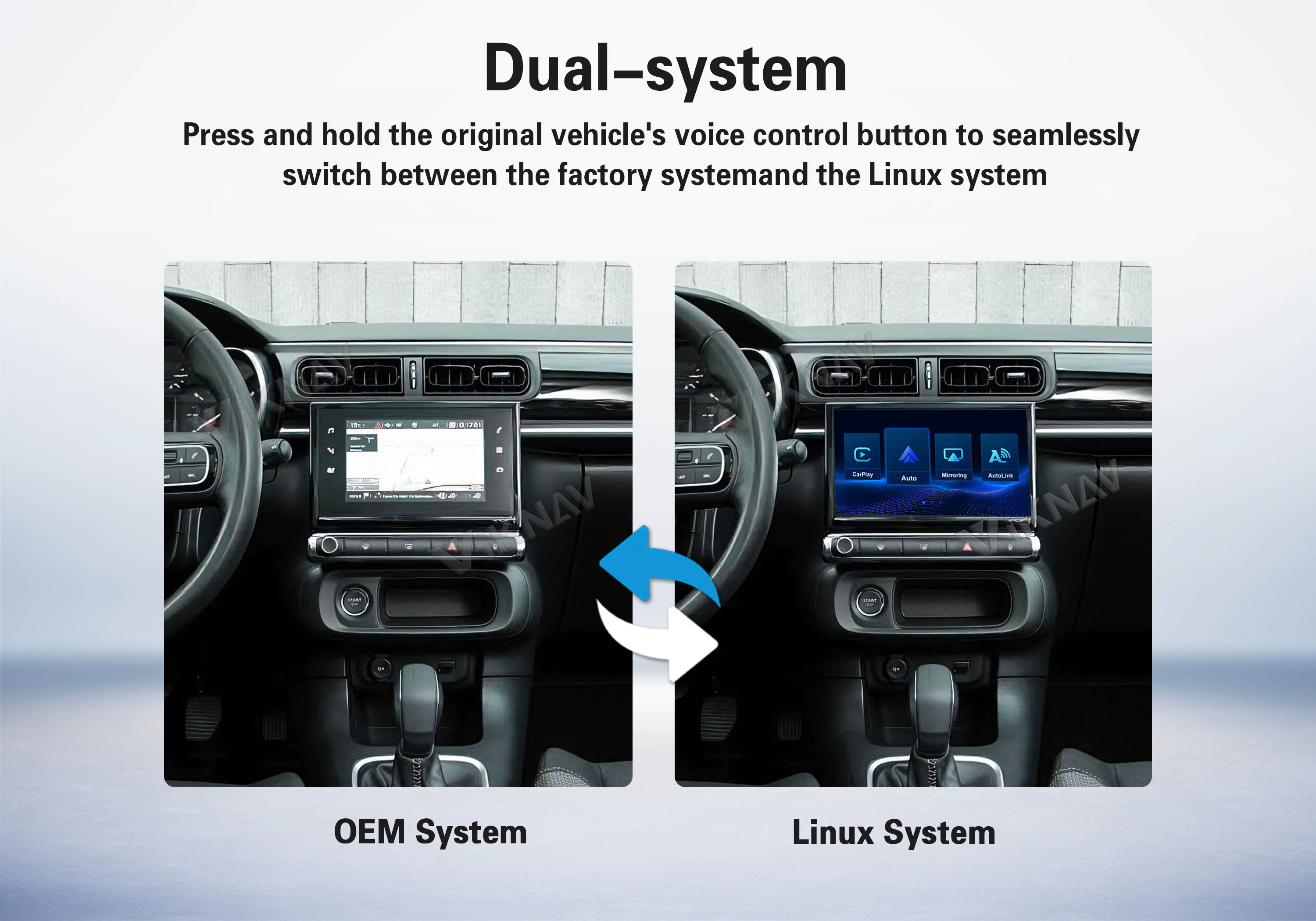 ✅How to swicth Linux System to OEM System:Press and hold the "HOME" or "MENU"button to switch to the original car system