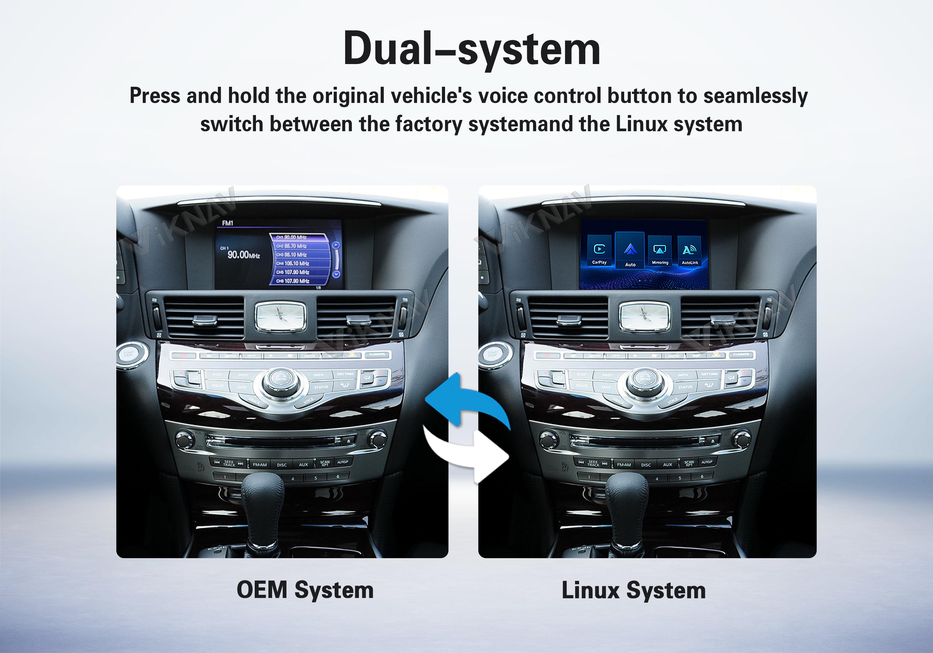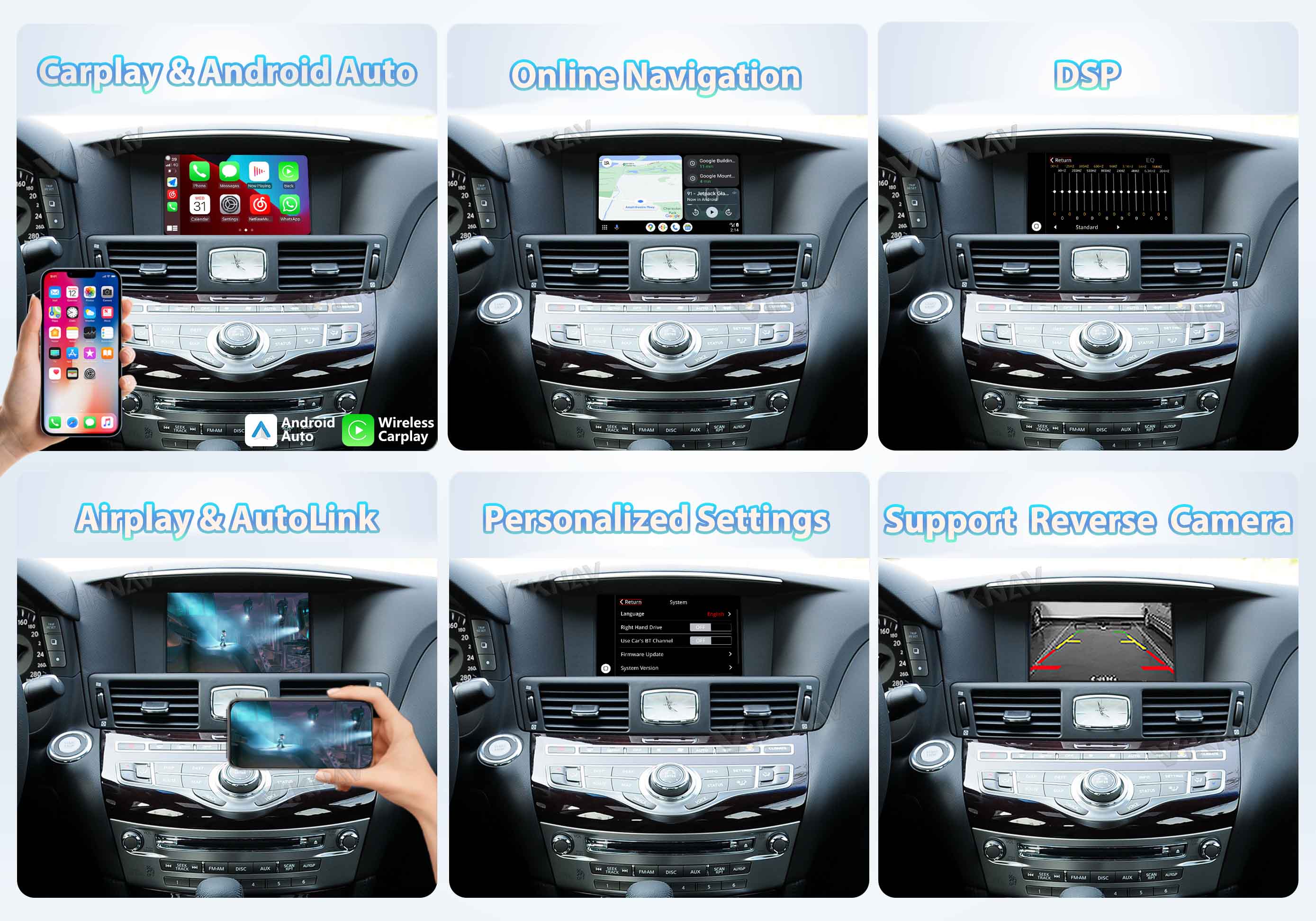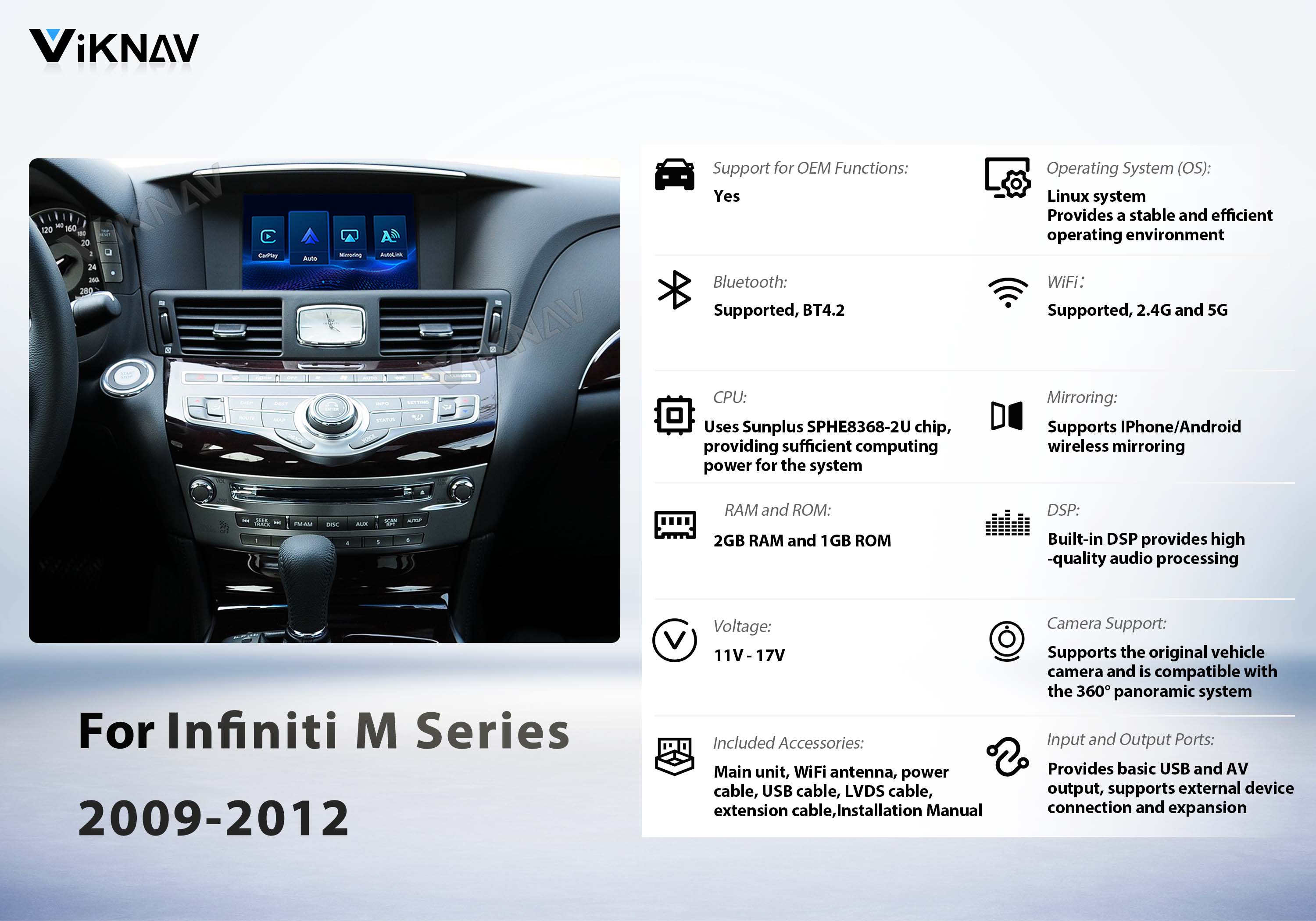 Viknav Linux System Decoder Box for Infiniti M Series Wireless CarPlay Android Auto Upgrade Interface Retain OEM CUE Screen & Functions