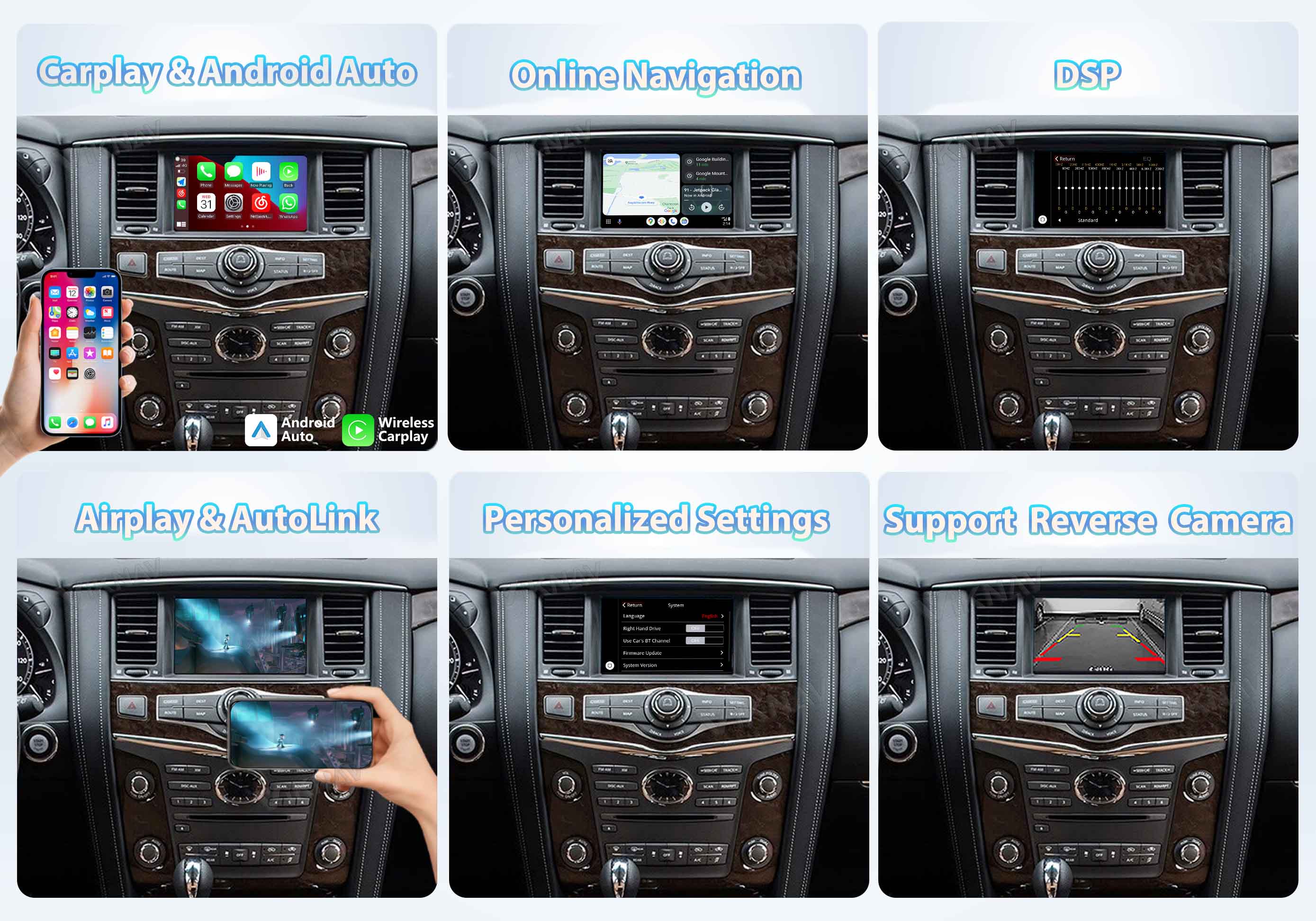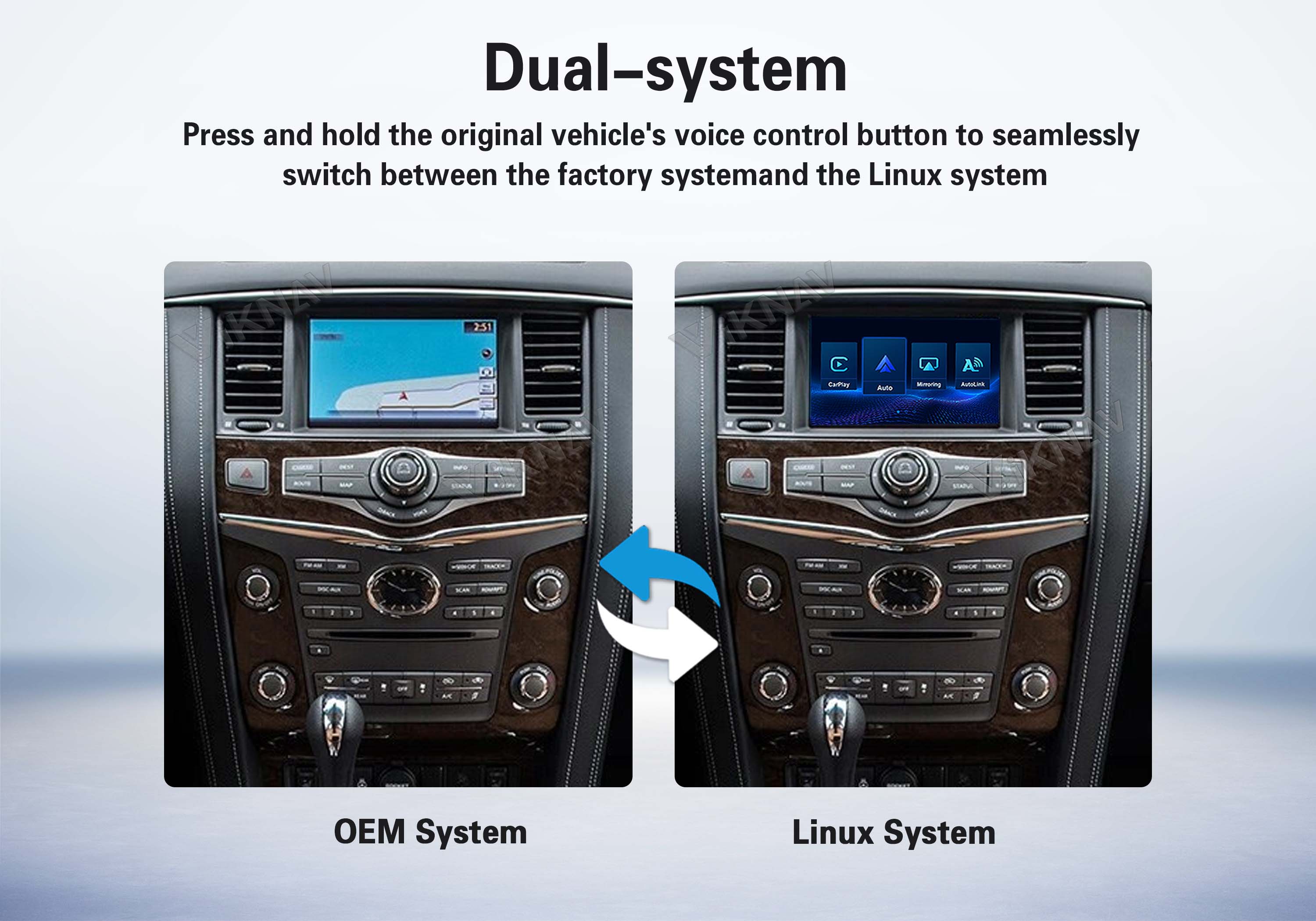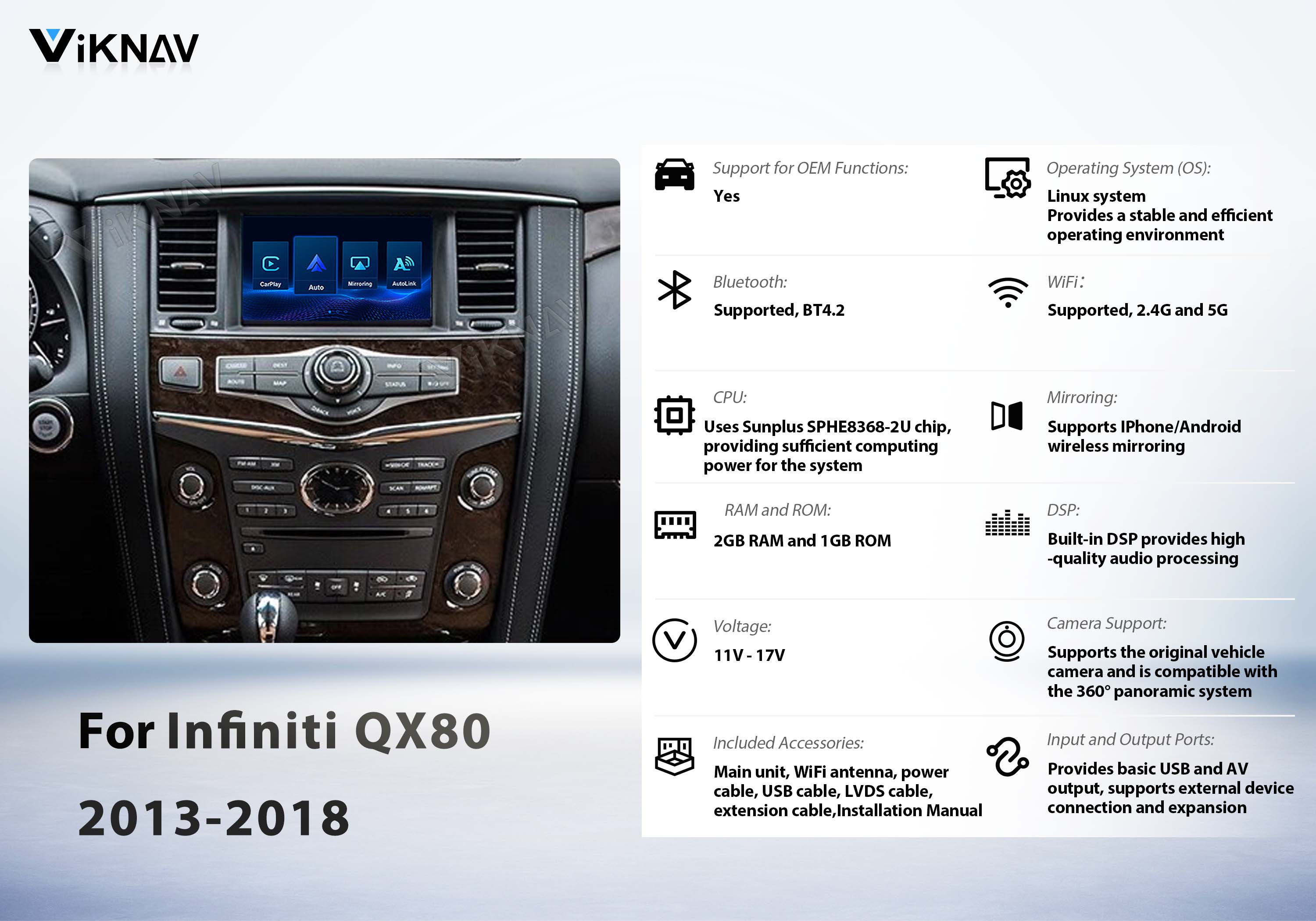 Viknav Linux System Decoder Box for Infiniti QX80 Wireless CarPlay Android Auto Upgrade Interface Retain OEM CUE Screen & Functions