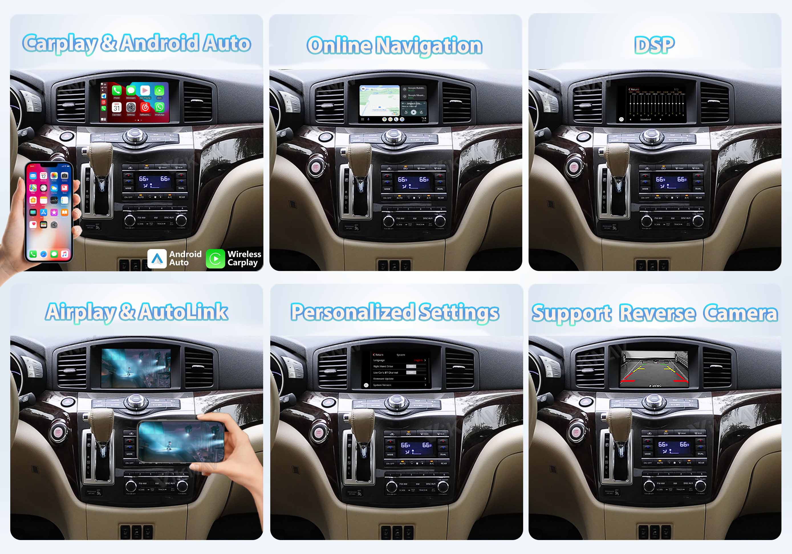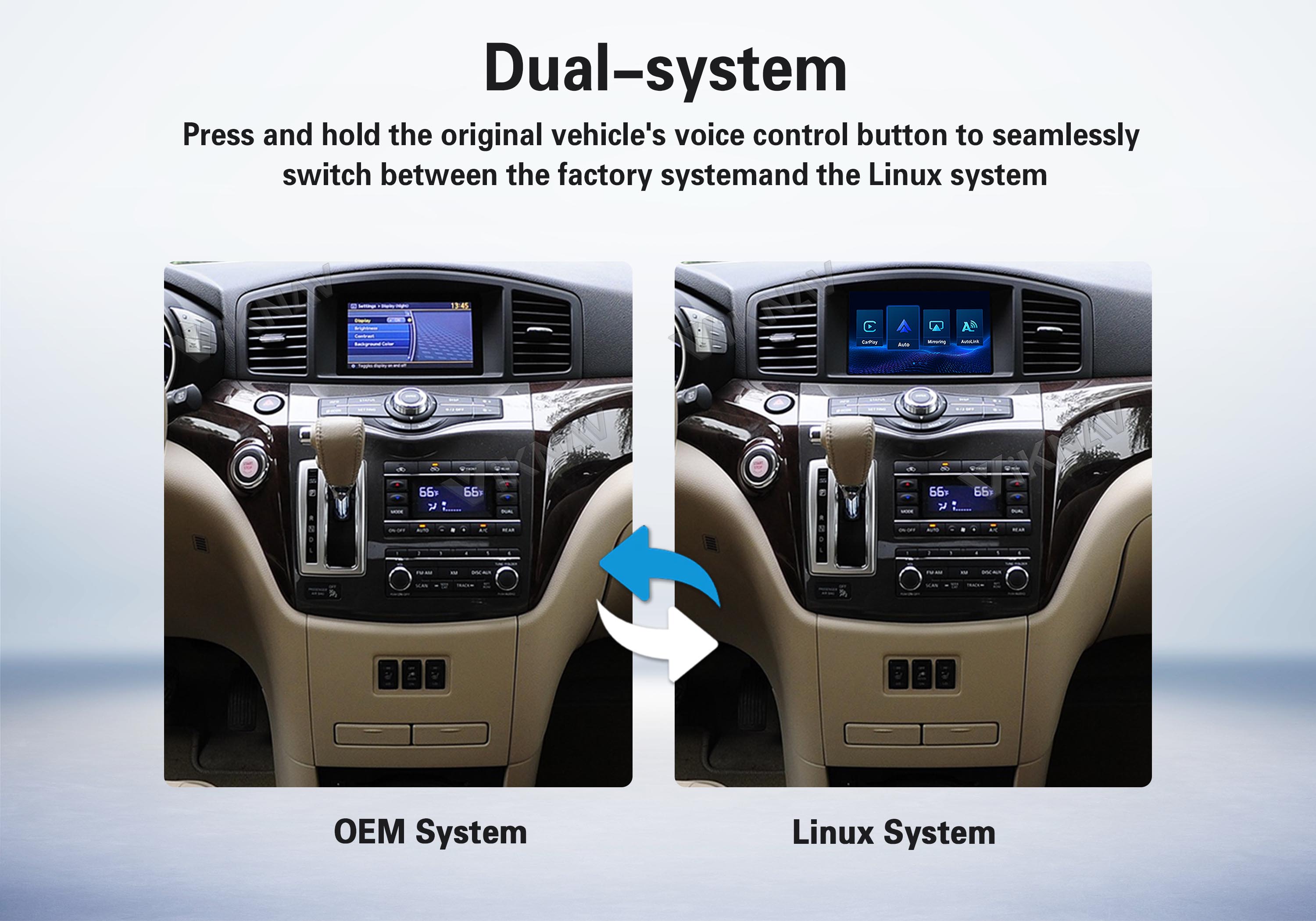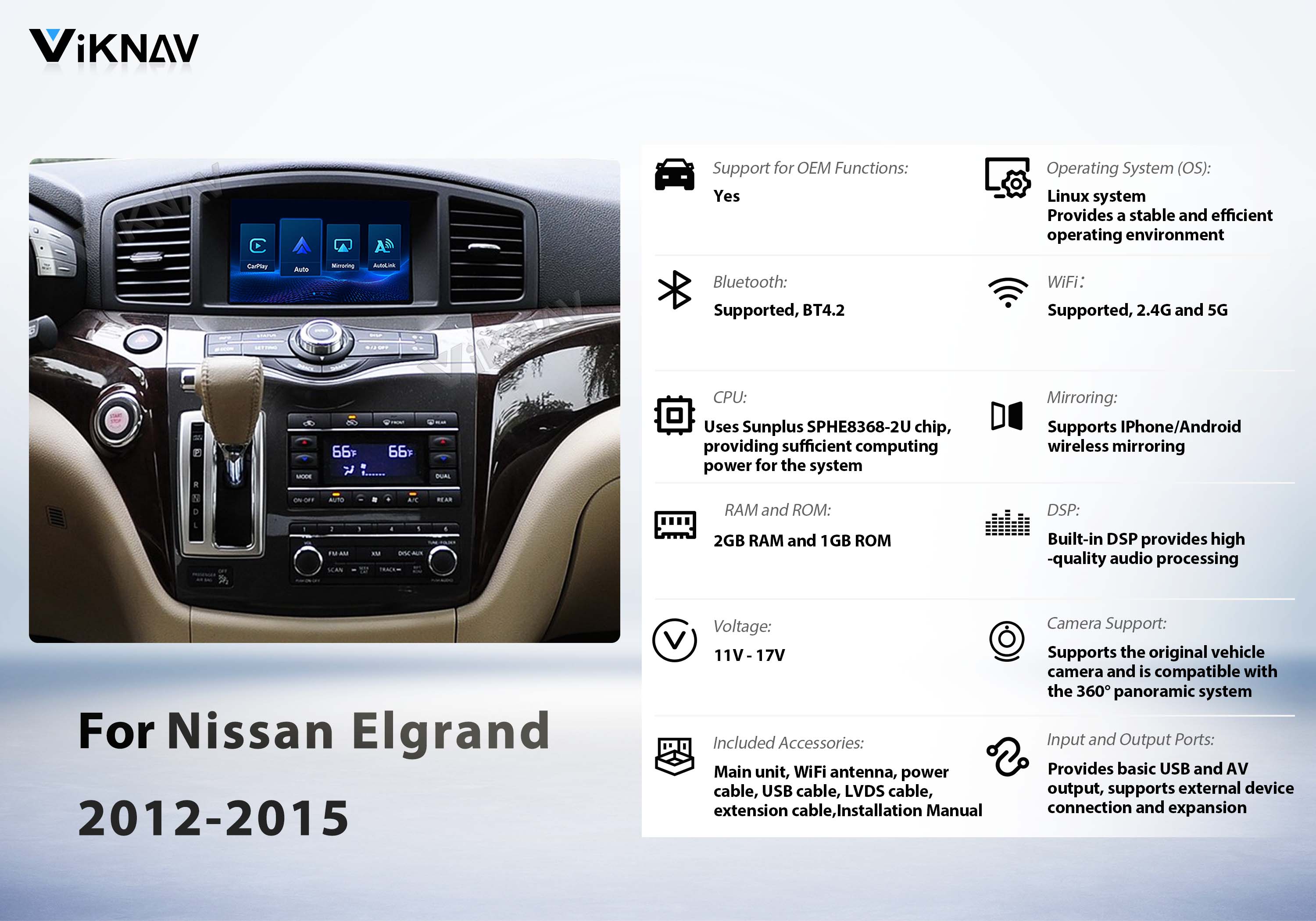 Viknav Linux System Decoder Box for Nissan Elgrand Wireless CarPlay Android Auto Upgrade Interface Retain OEM CUE Screen & Functions