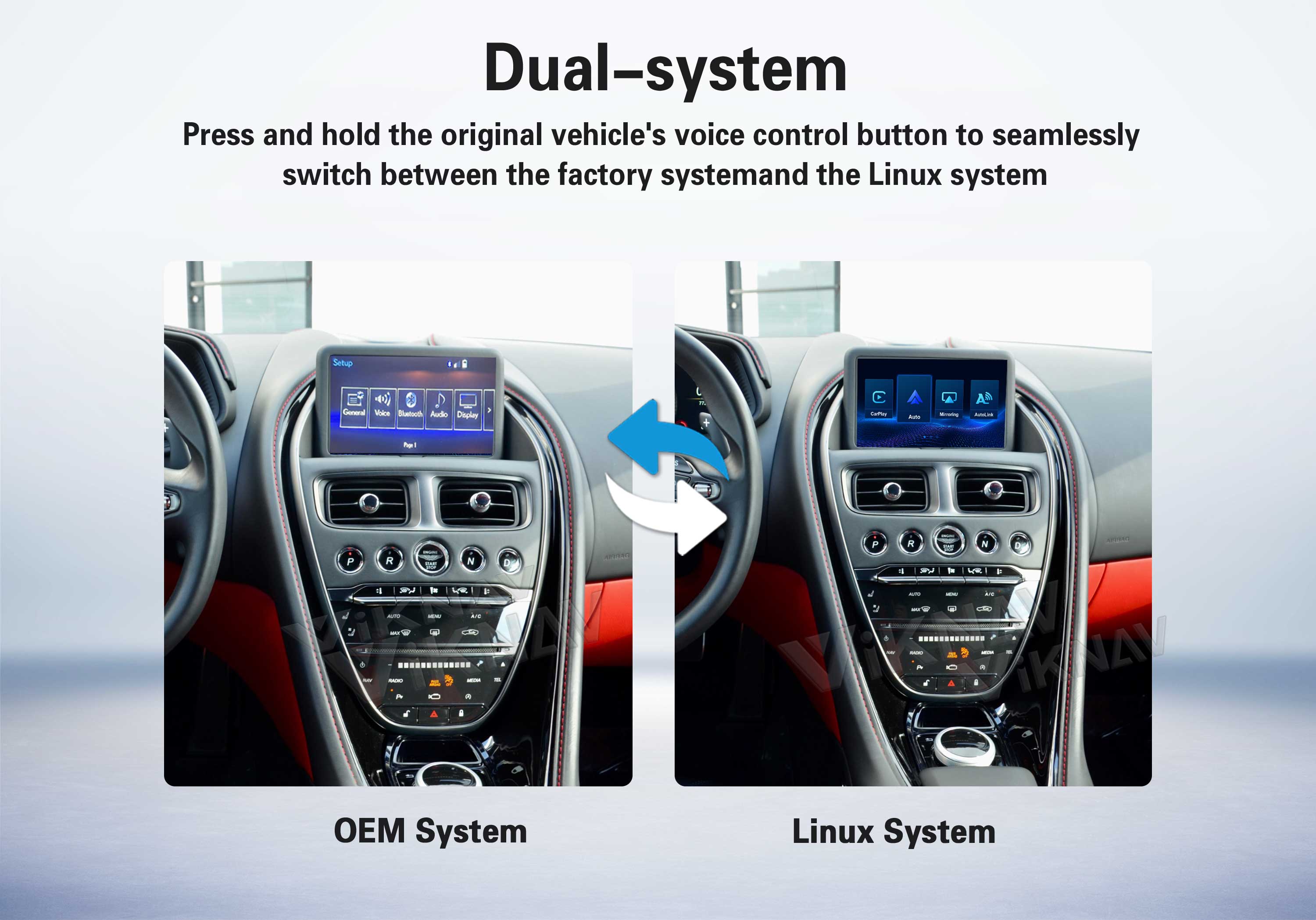 Simple System Switching: Easily switch between the original car system and the new Viknav interface by long-pressing the voice control button on your steering wheel.