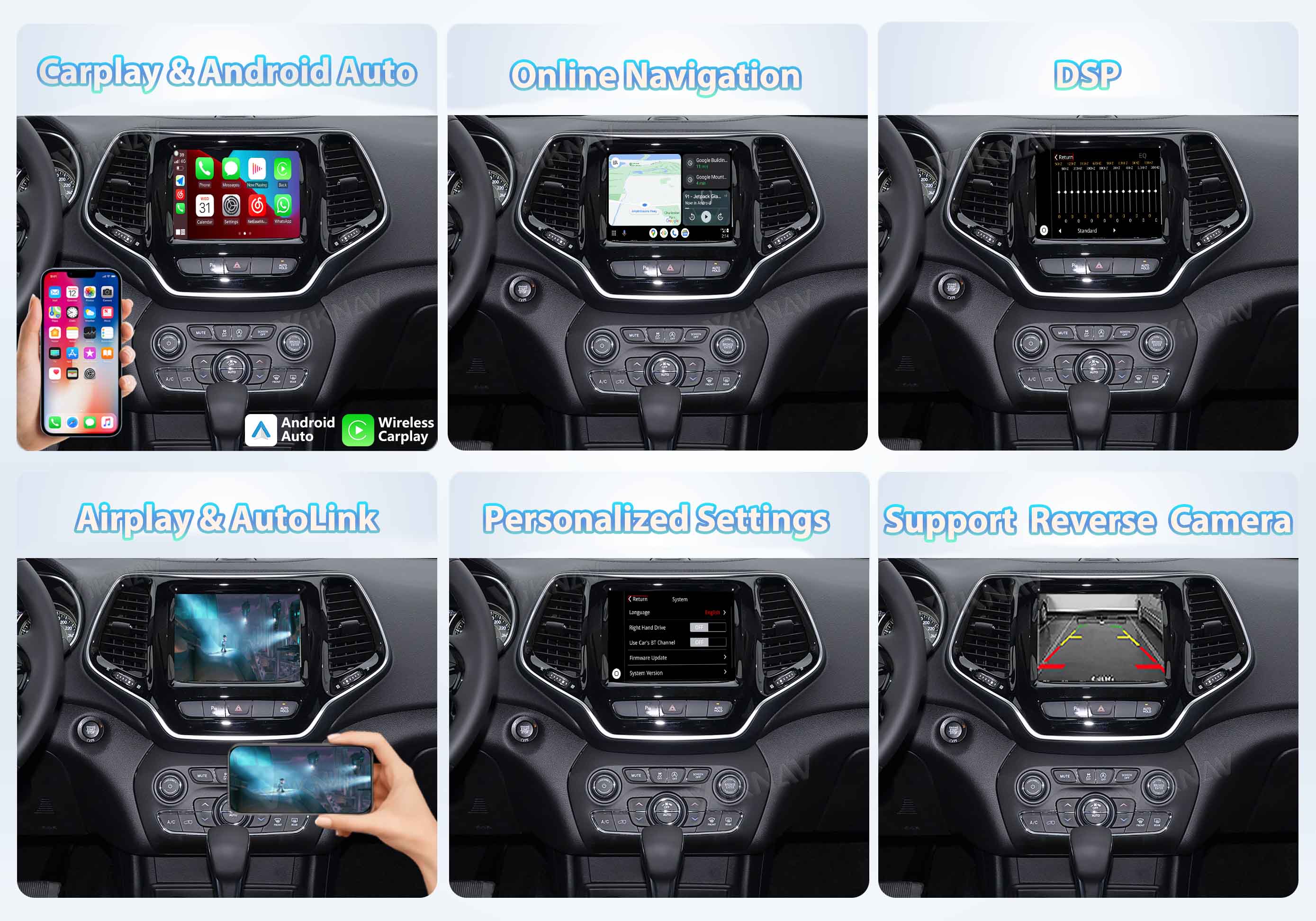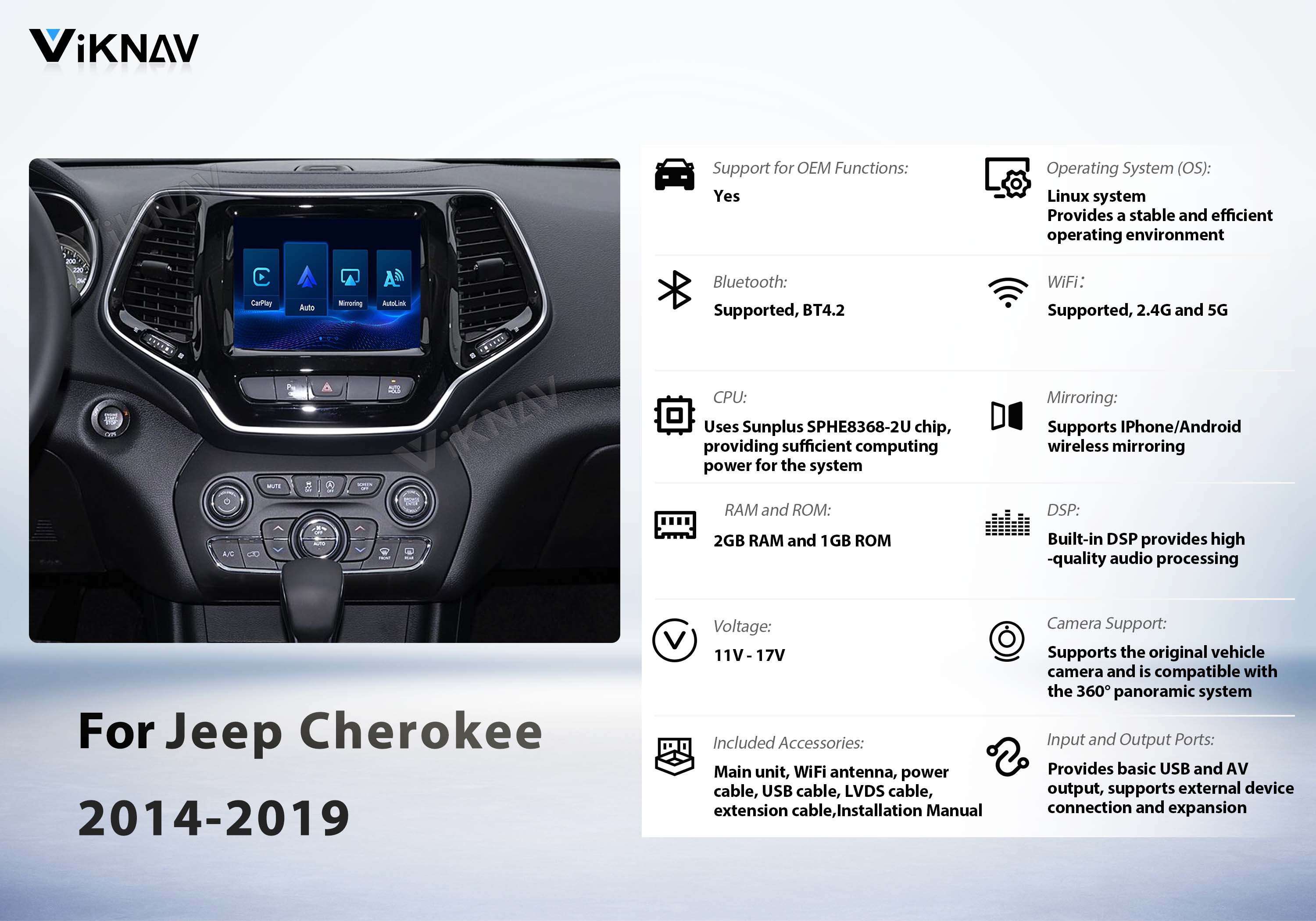 Viknav Linux System Wireless Carplay Android Auto Decoder Box For Jeep Cherokee 2014-2019 Navigation Original Car Radio Screen
