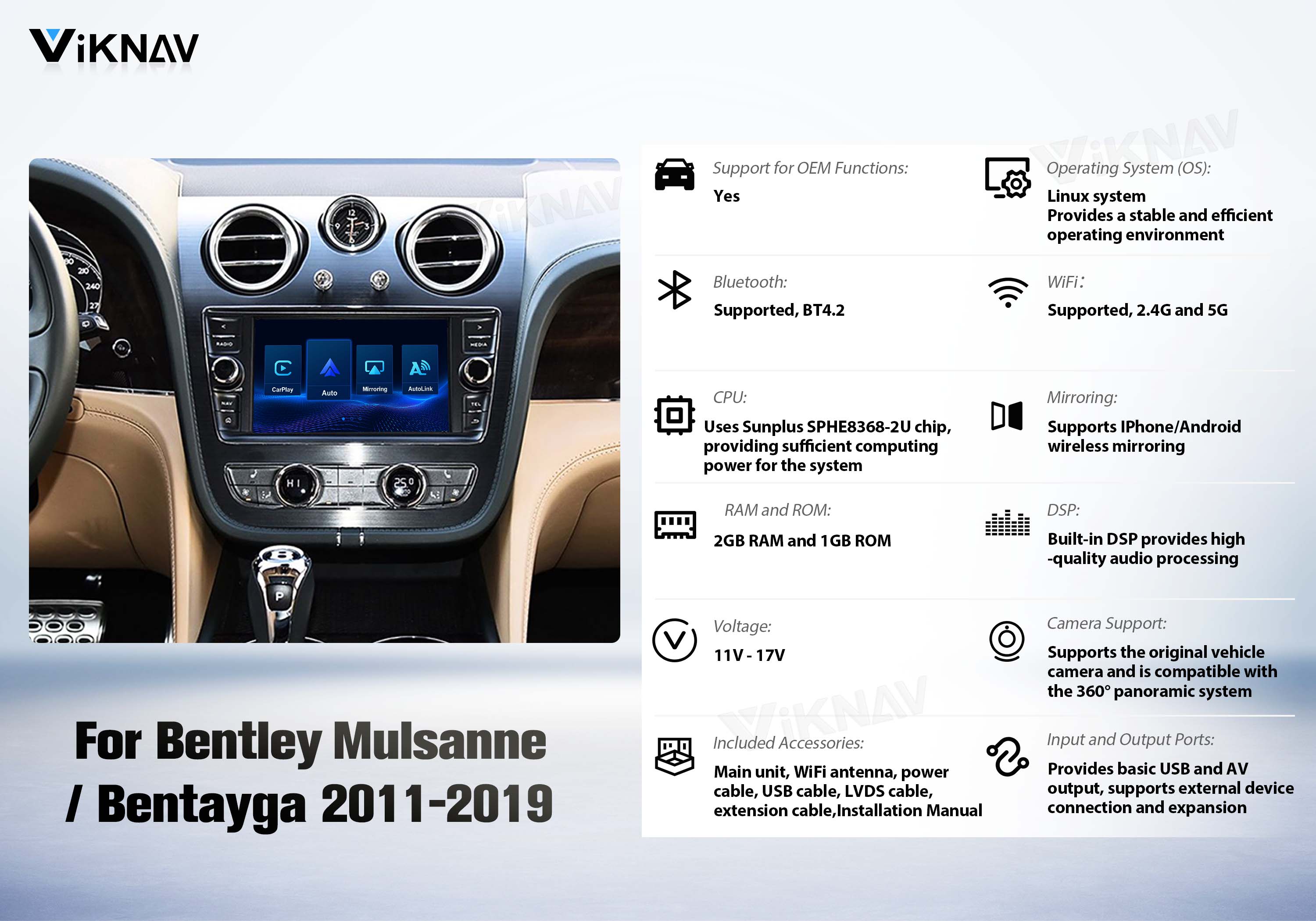 Viknav Linux System Wireless Carplay Android Auto Decorder Box For Bentley Mulsanne Bentayga 2011-2019 GPS Navigatipn Original Car Radio Screen