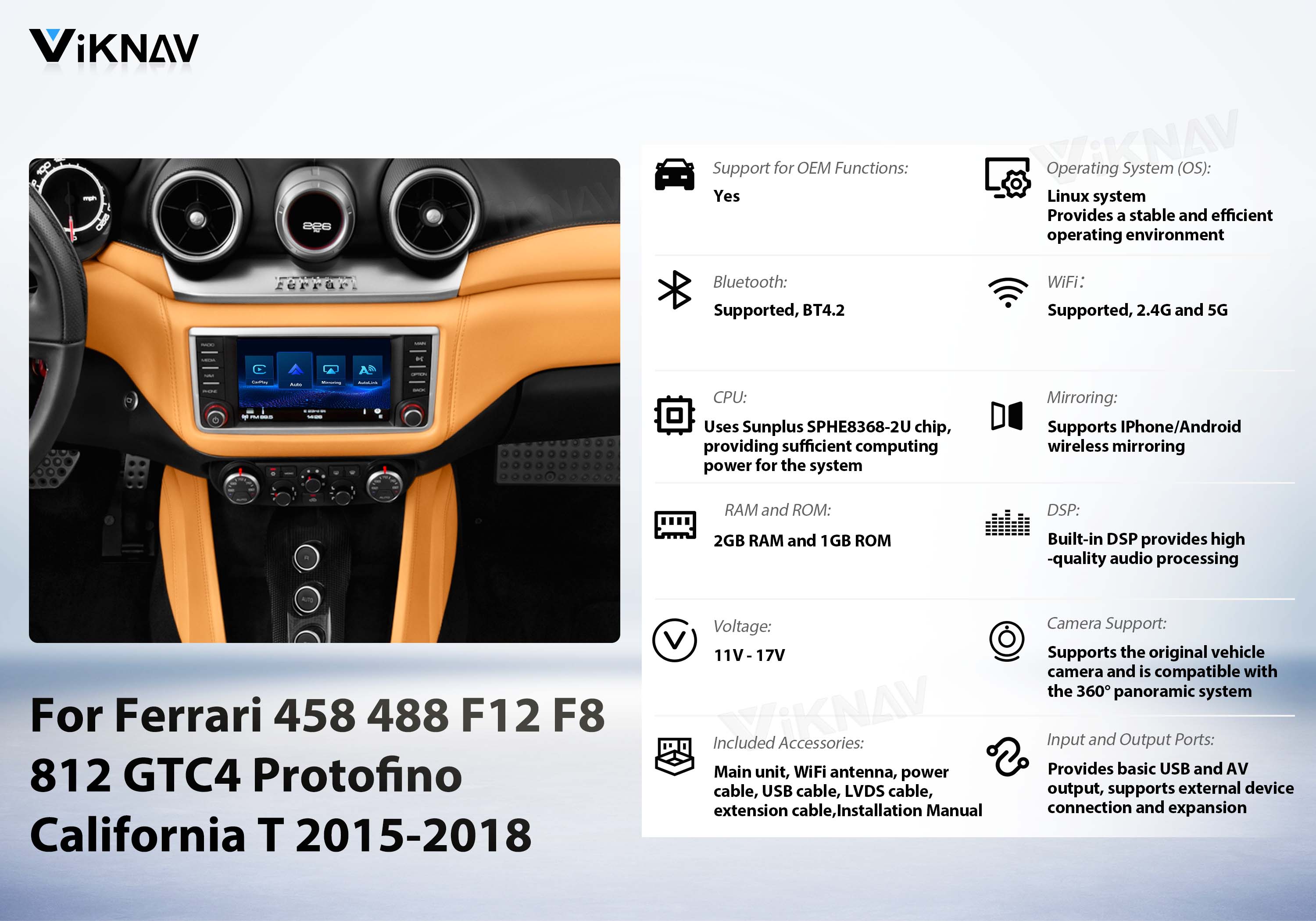 Viknav Linux System Decorder Box For Ferrari Support Bluetooth Wireless Android Auto Mirror Link