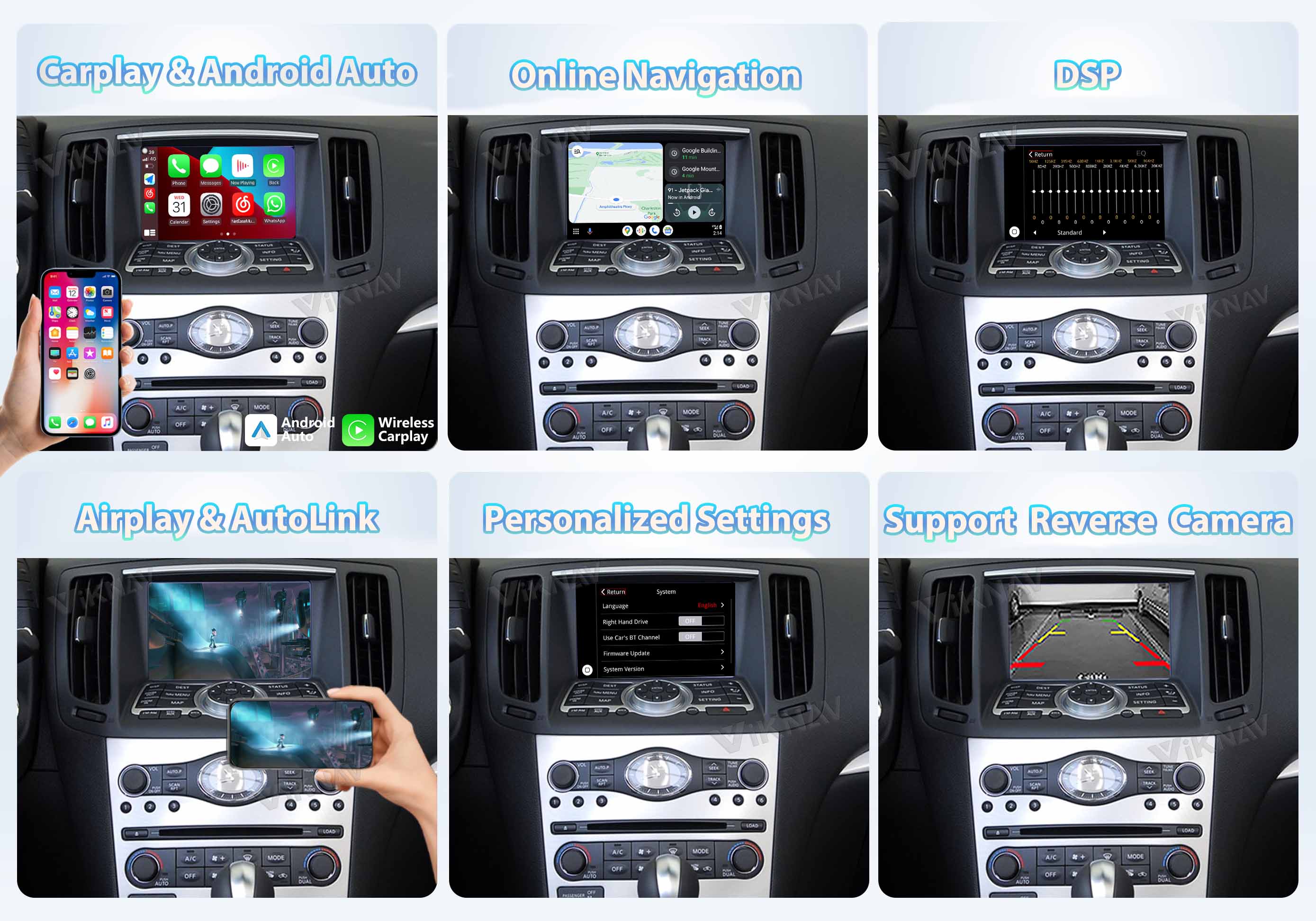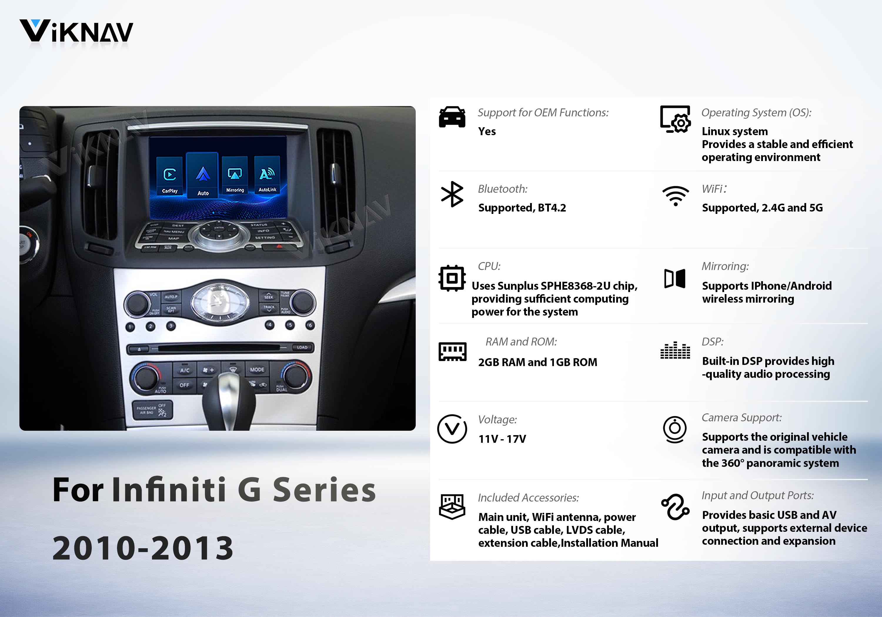 Viknav Linux System Wireless Carplay Android Auto Decorder Box For Infiniti G Series 2010-2013 GPS Navigatipn Original Car Radio Screen