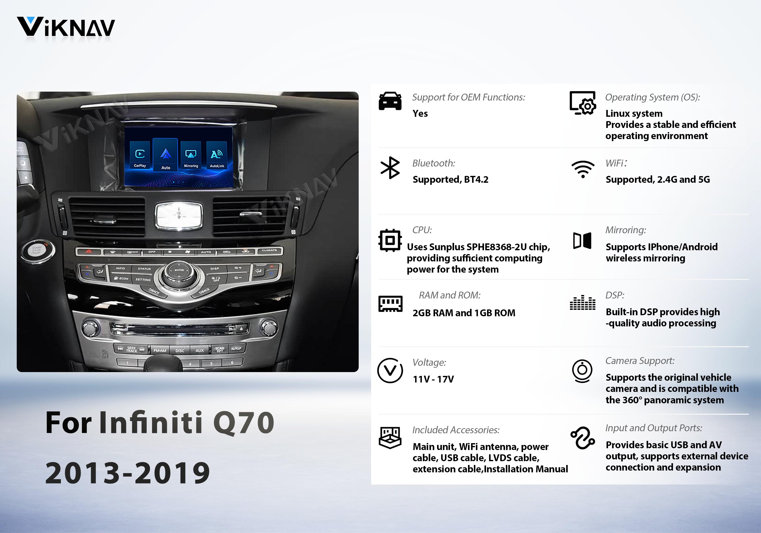 Viknav Linux System Wireless Carplay Android Auto Decorder Box For Infiniti Q70 2013-2019 GPS Navigatipn Original Car Radio Screen