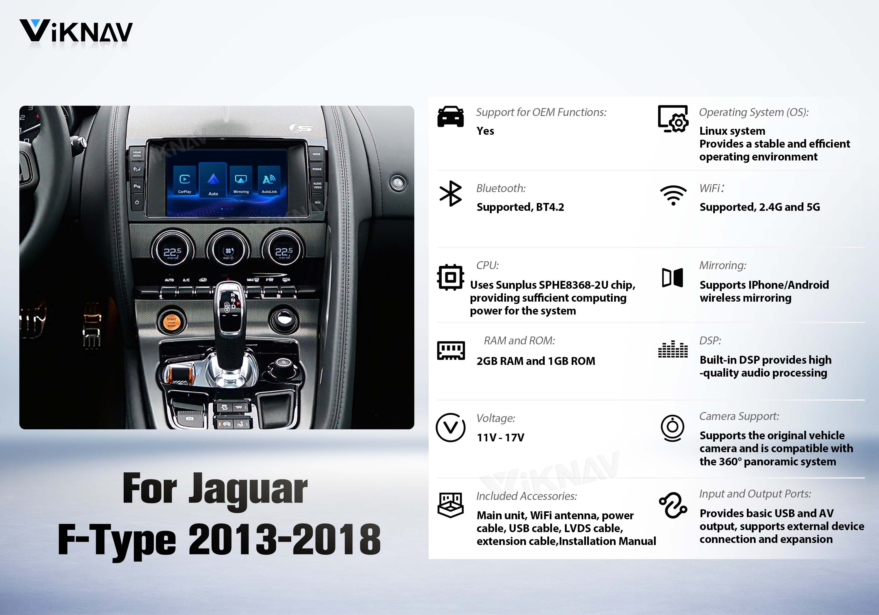 Viknav Linux System Wireless Carplay Android Auto Decorder Box For Jaguar F-Type 2013-2018 GPS Navigatipn Original Car Radio Screen