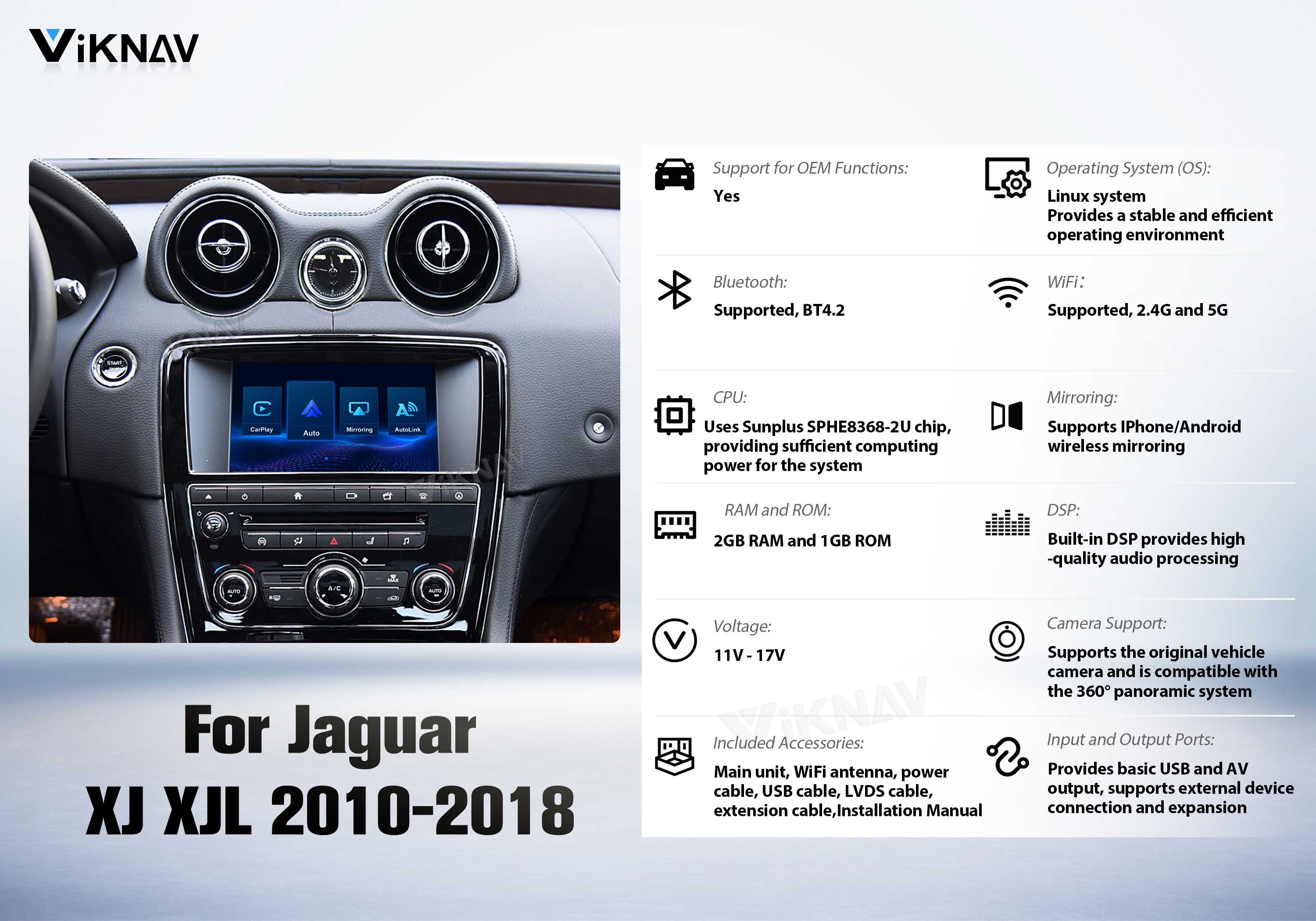 Viknav Linux System Wireless Carplay Android Auto Decorder Box For Jaguar XJ XJL 2010-2018 GPS Navigatipn Original Car Radio Screen