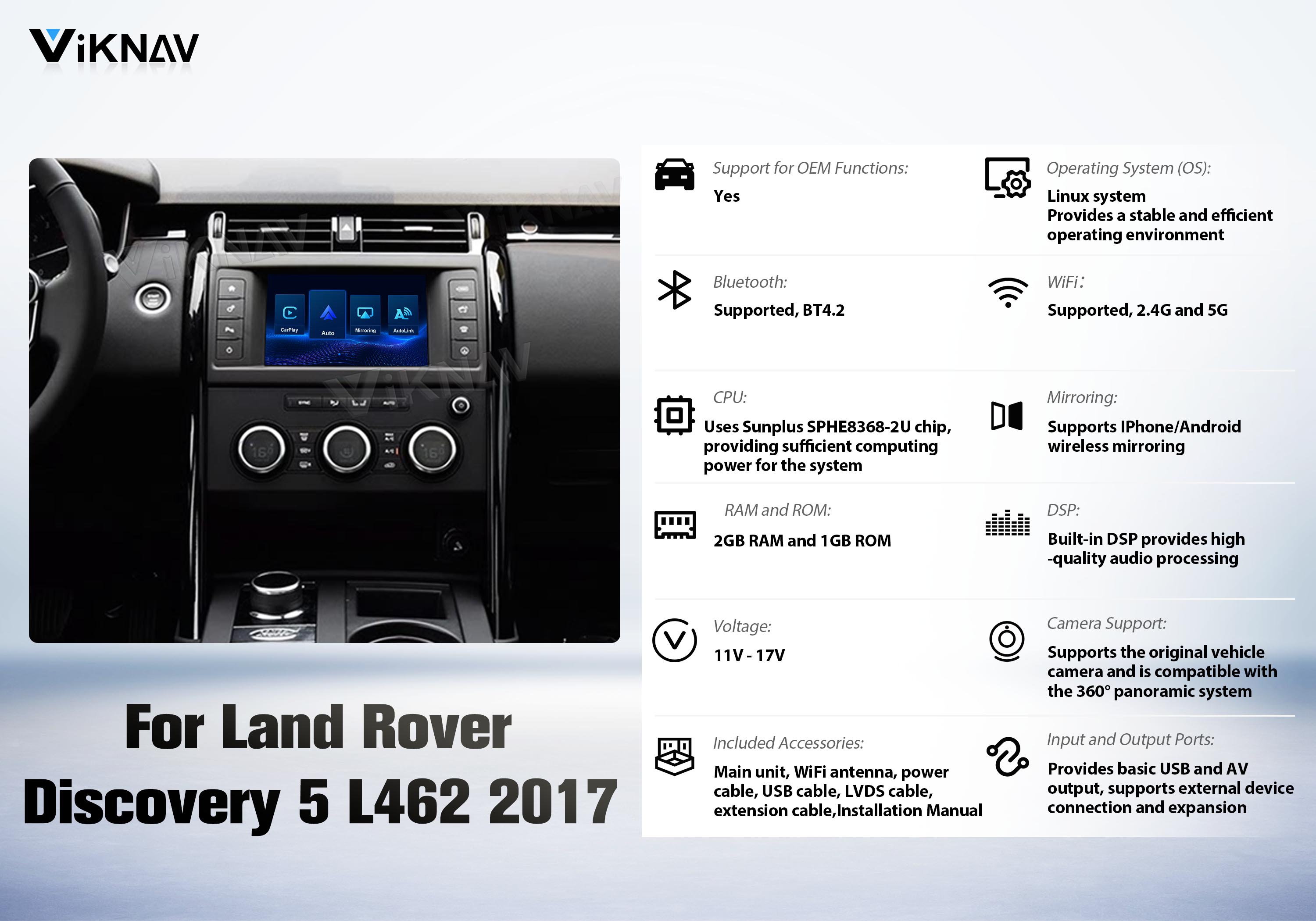 Viknav Linux System Wireless Carplay Android Auto Decorder Box For Land Rover Discovery 5 L462 2017 GPS