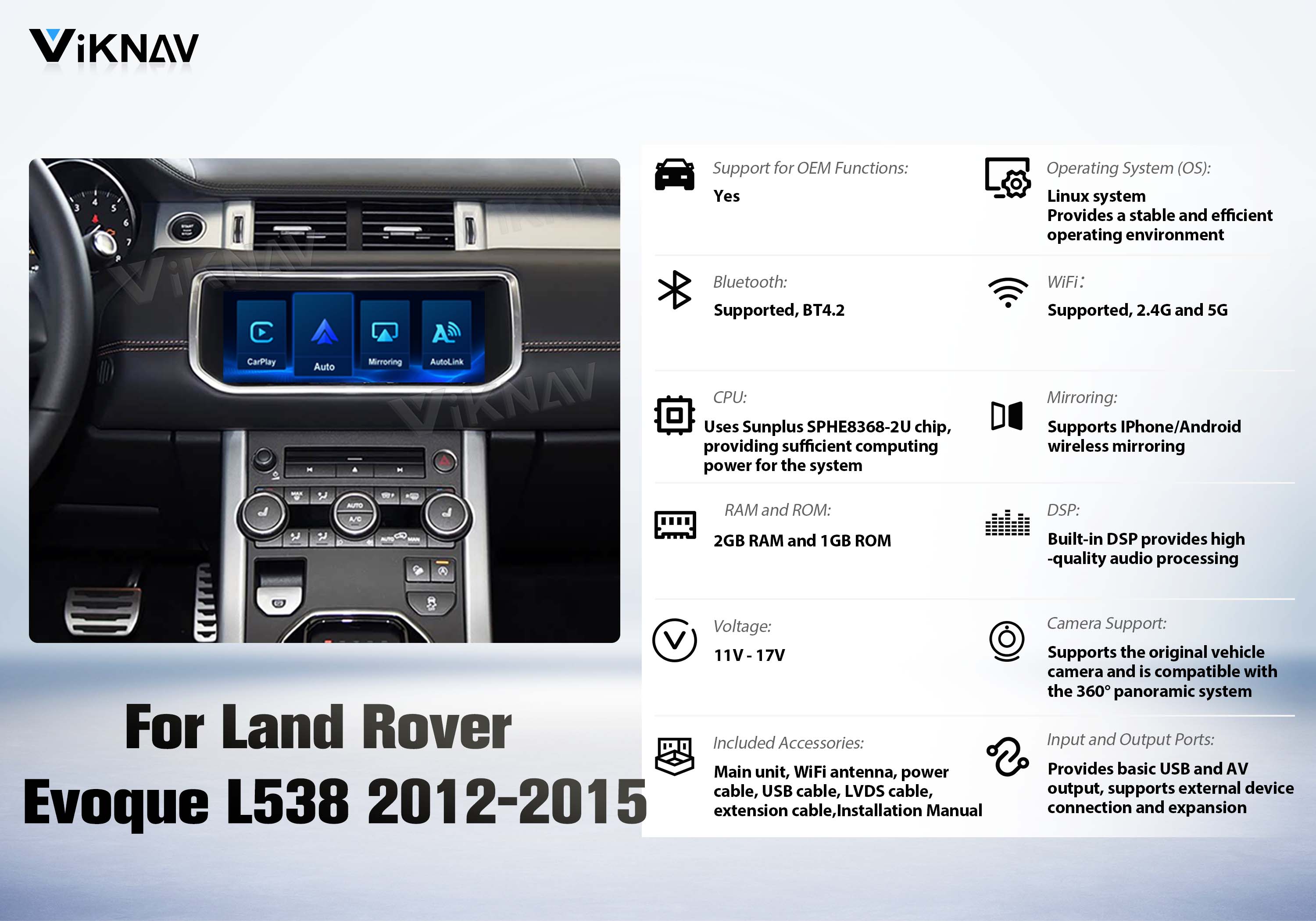 Viknav Linux System Wireless Carplay Android Auto Decorder Box For Land Rover Evoque L538 2017-2018 GPS Navigatipn Original Car Radio Screen