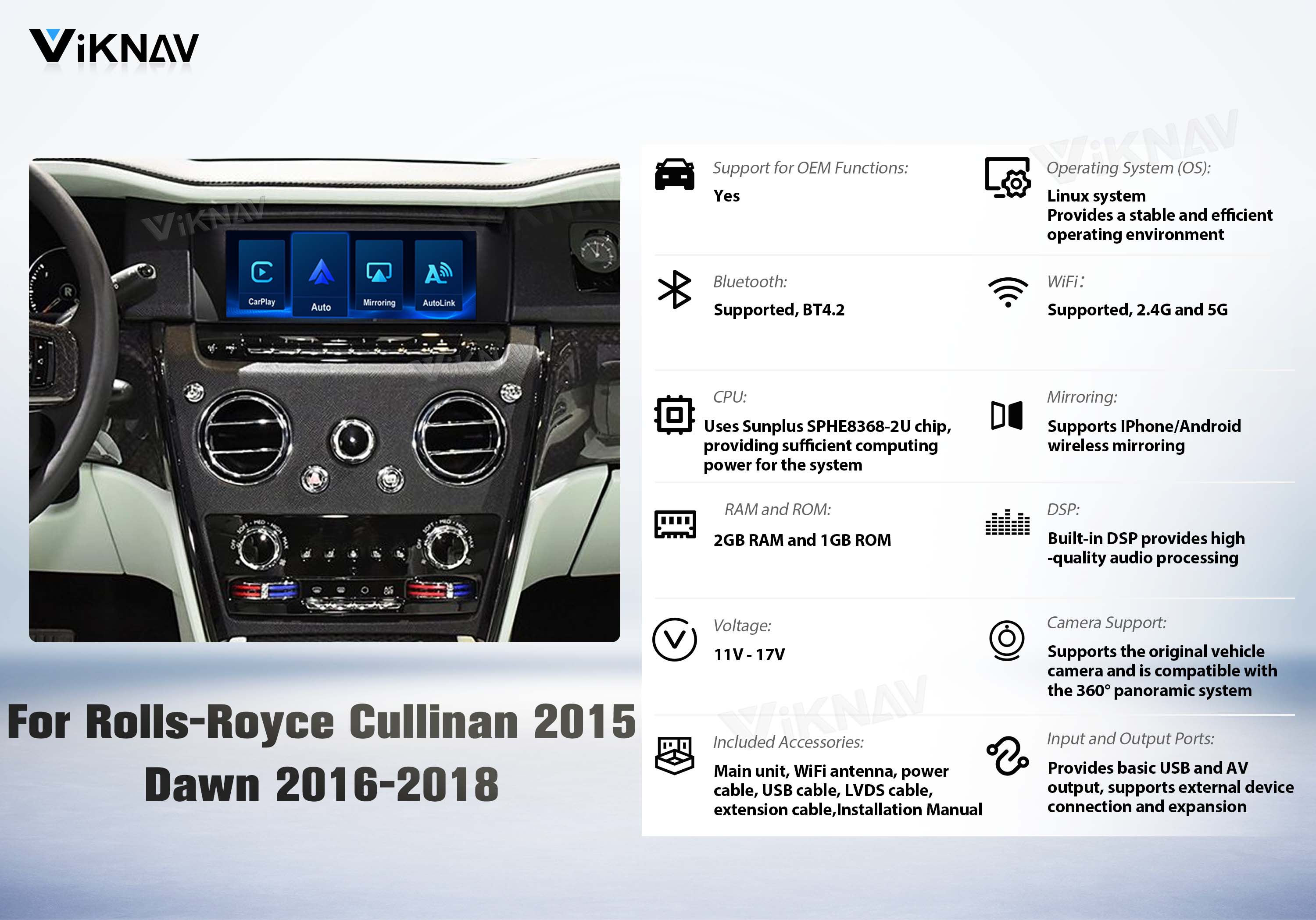 Viknav Linux System Wireless Carplay Android Auto Decorder Box For Rolls-Royce Cullinan 2015 Dawn