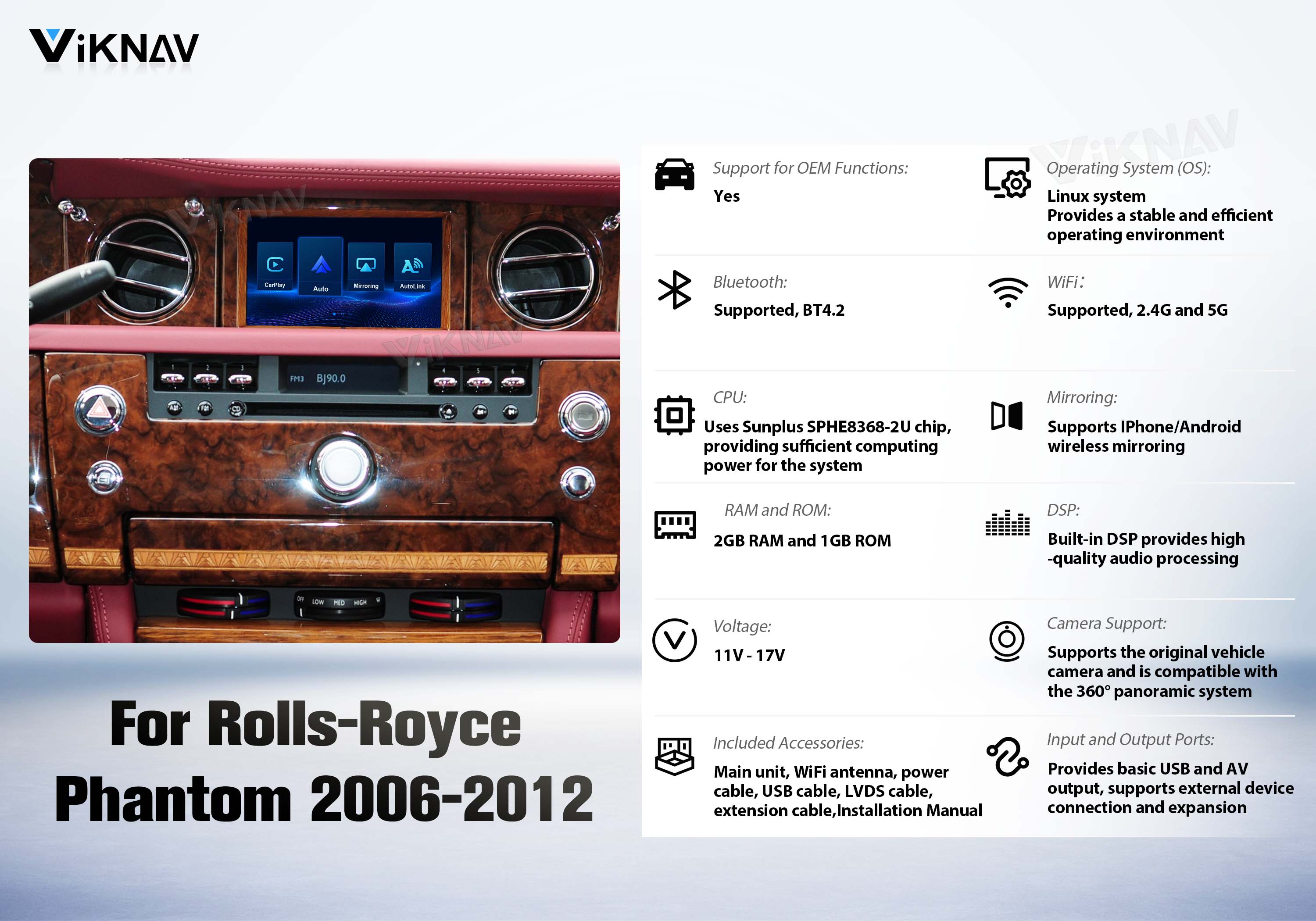 Viknav Linux System Wireless Carplay Android Auto Decorder Box For Rolls-Royce Phantom 2006-2012 GPS Navigatipn Original Car Radio Screen