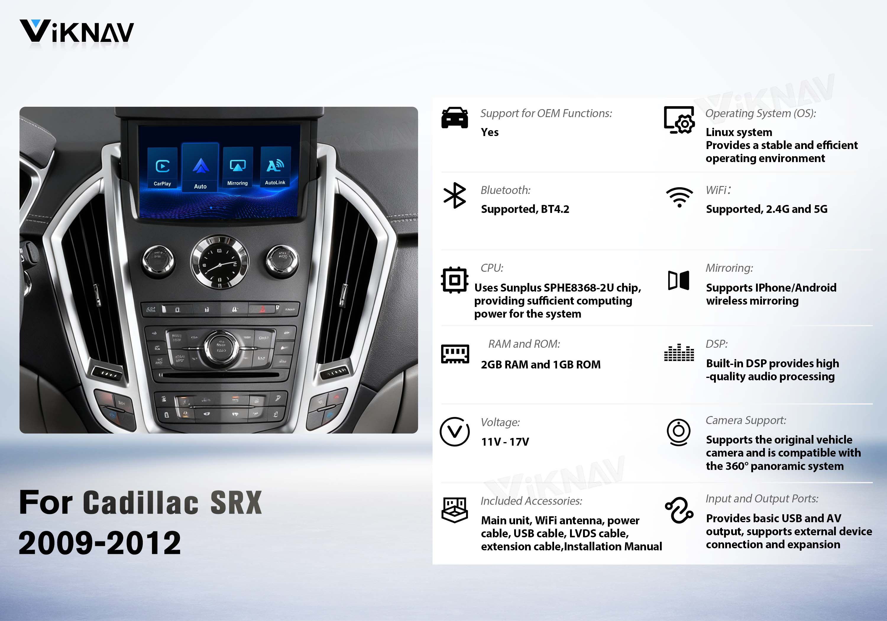 Viknav Linux System Wireless Carplay Android Auto Decoder Box for Cadillac SRX 2009-2012 Upgrade Interface Retain Original Screen